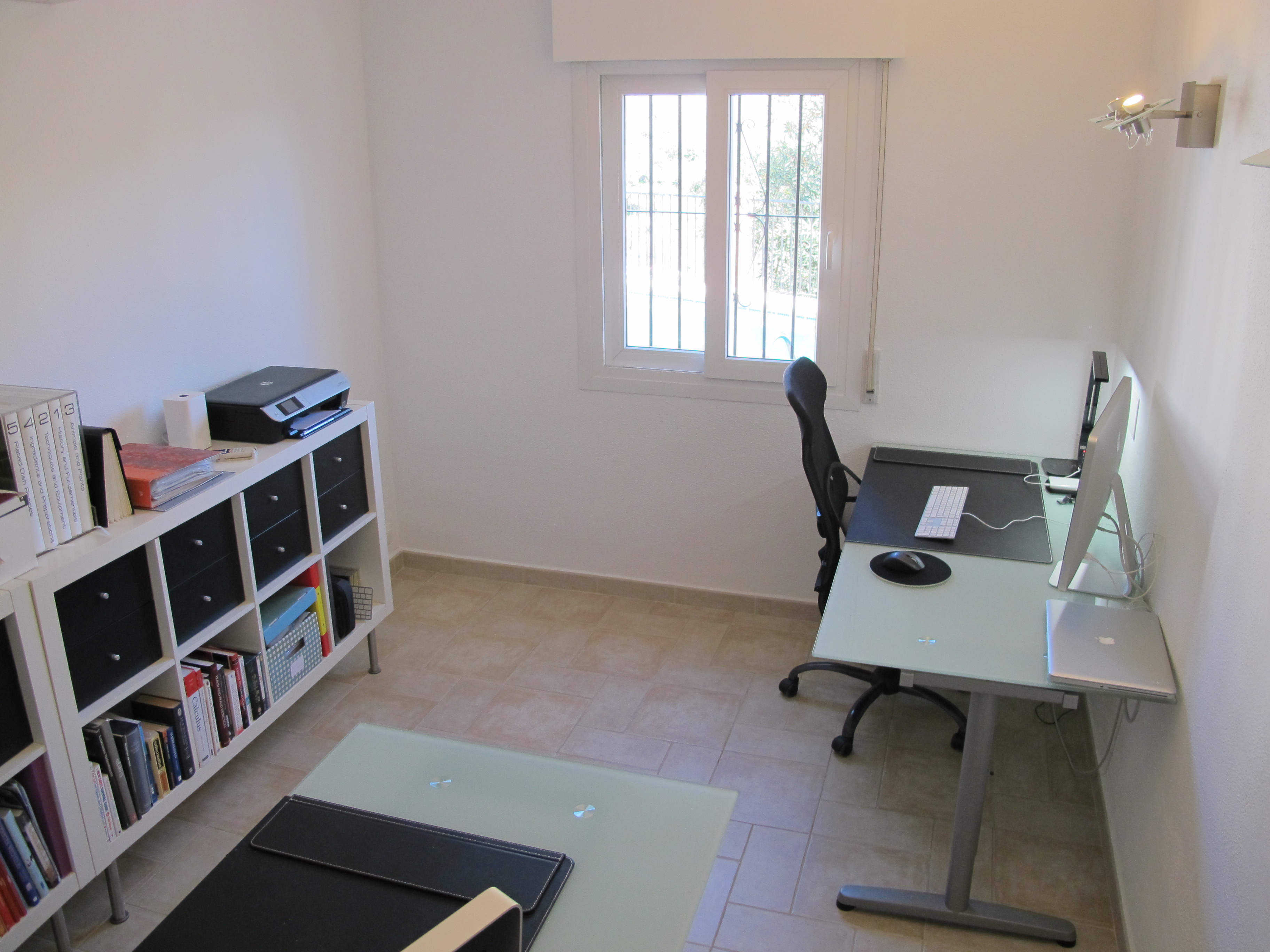 • Bedroom 2 (3.7m x 2.8m) with air conditioning presently used as an office