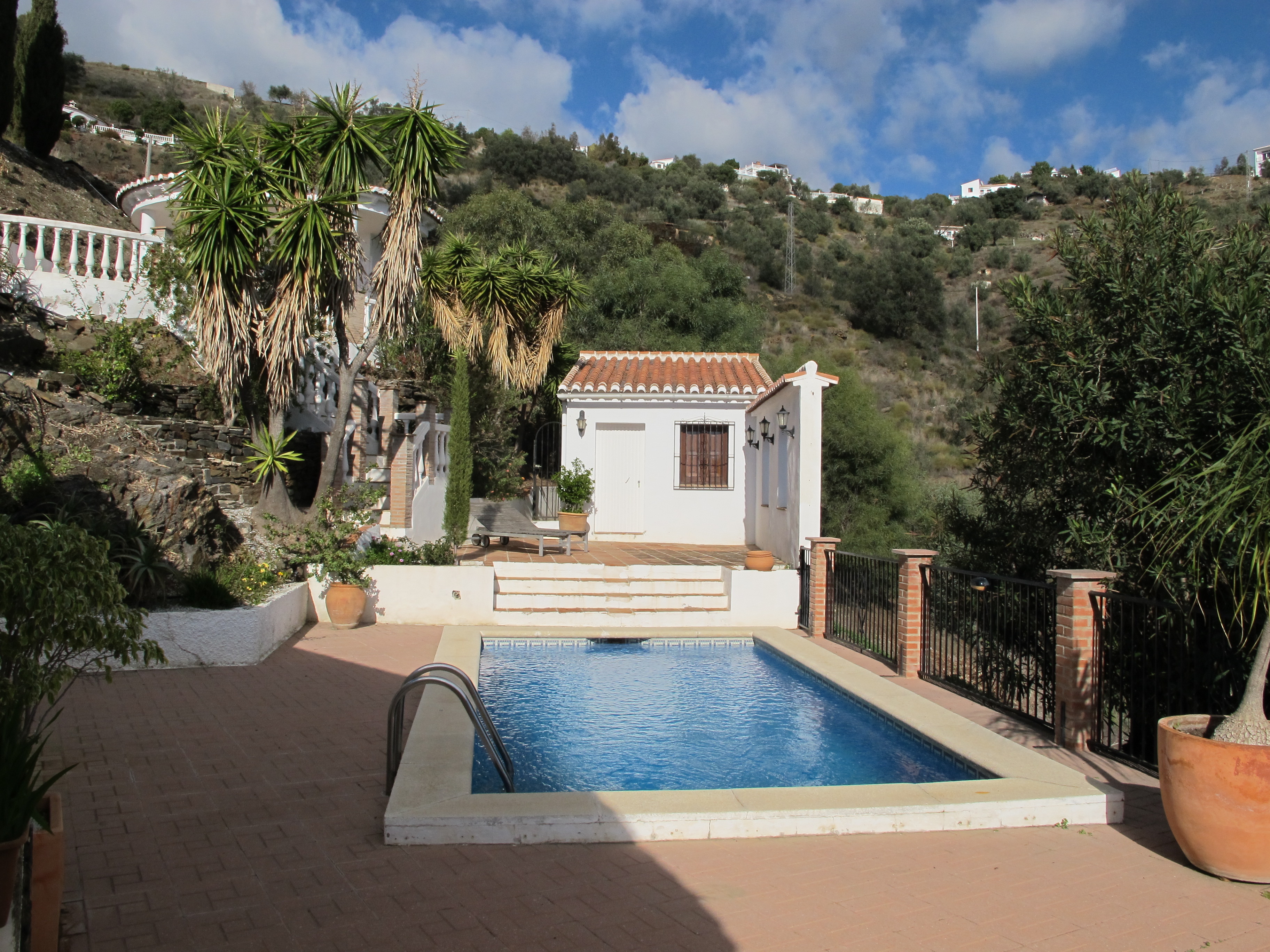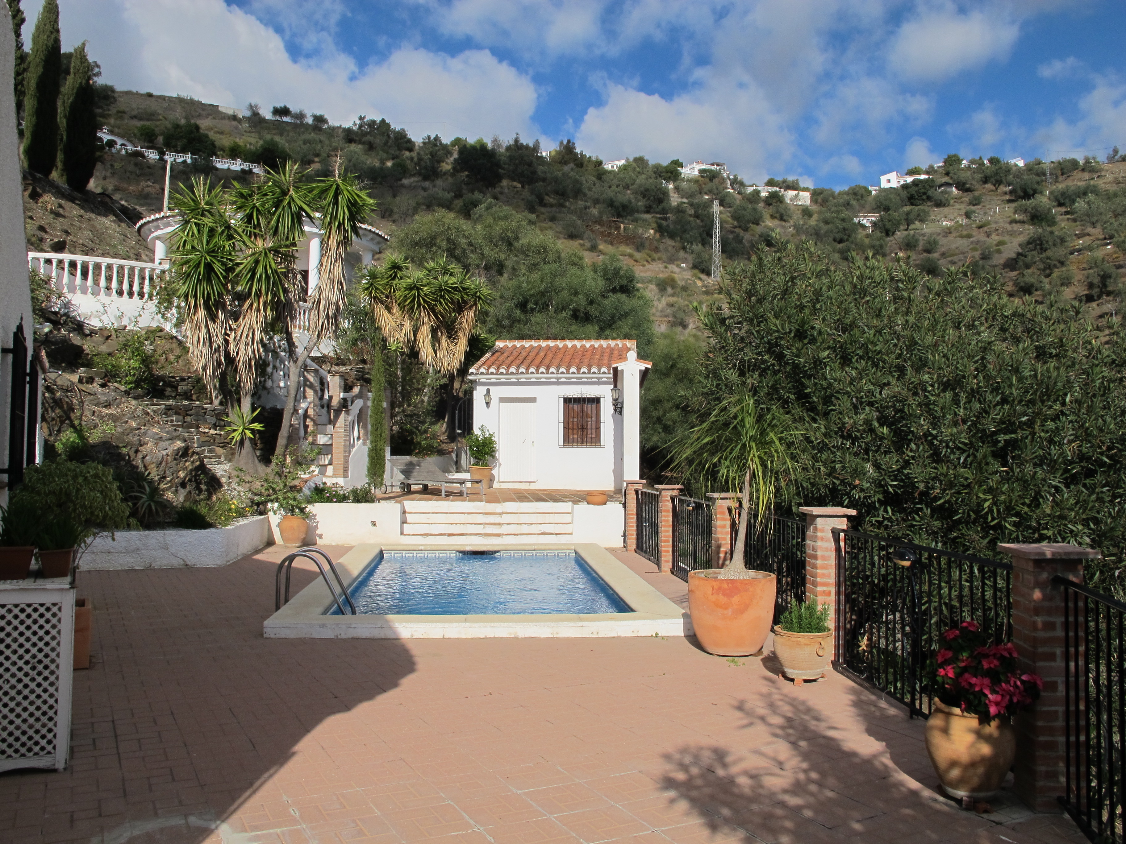 Located in an elevated position the property is accessed via a concrete road. Set within the countryside yet only a 10 minute drive from the whitewashed village of Sayalonga.