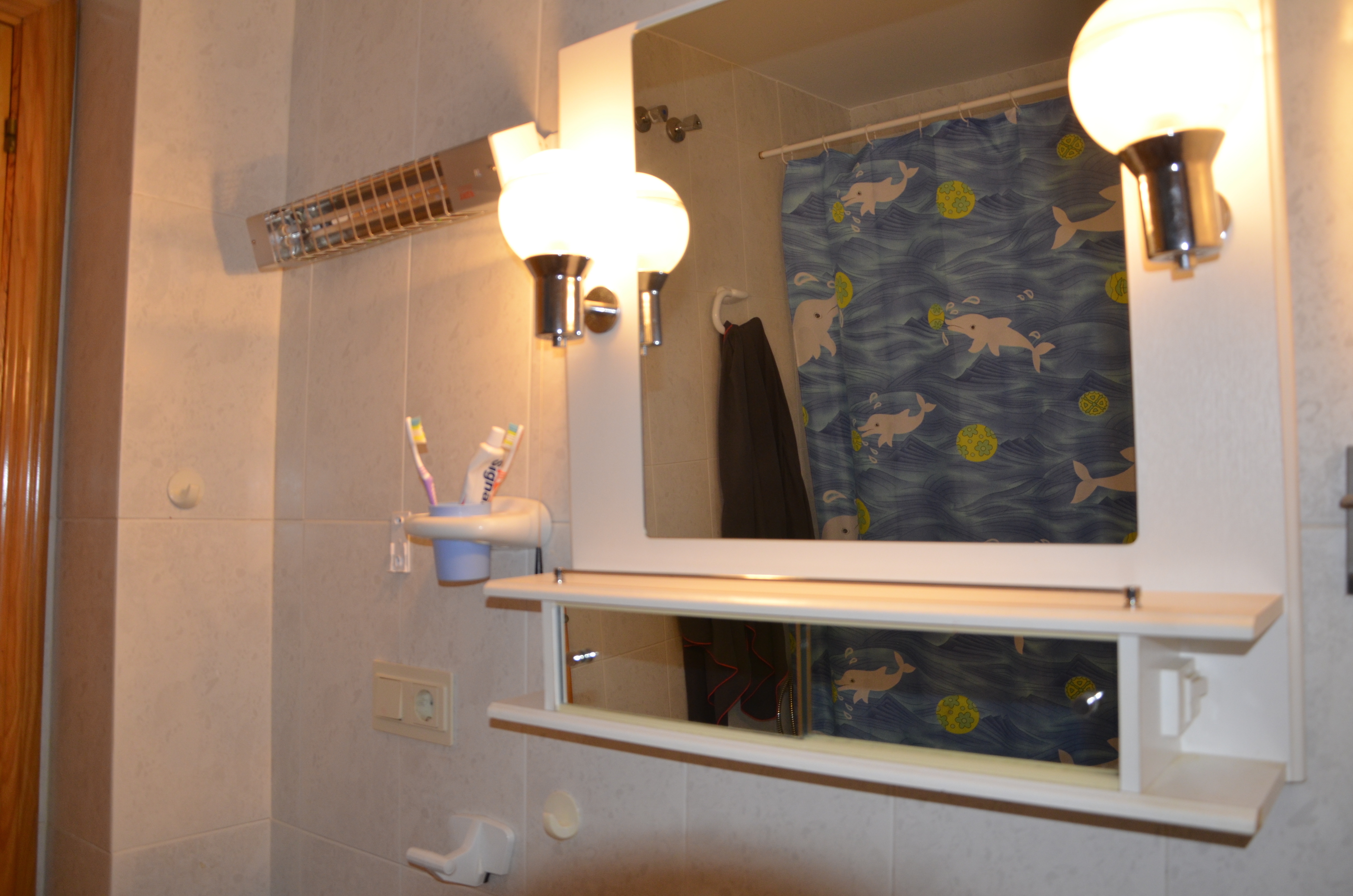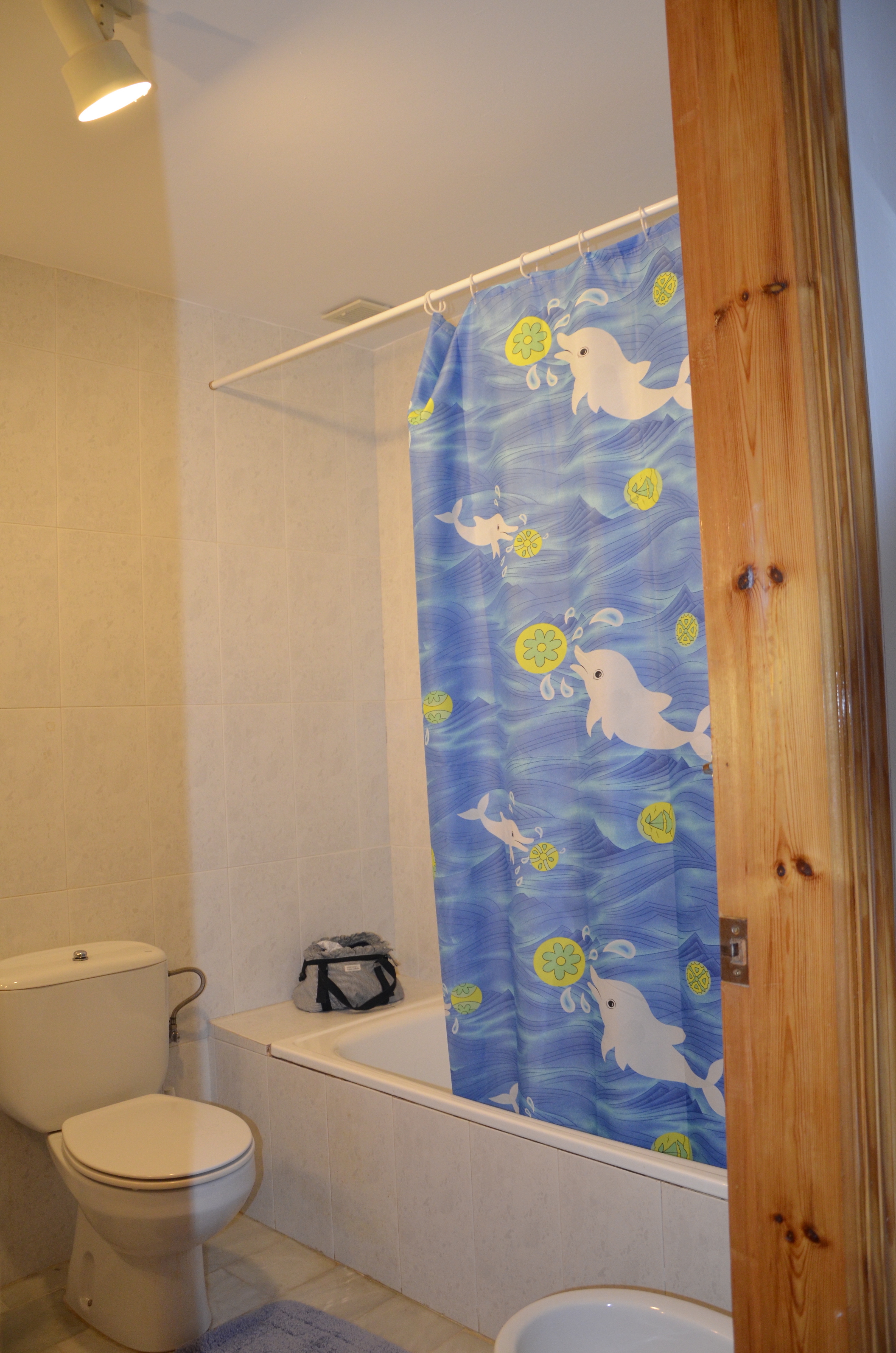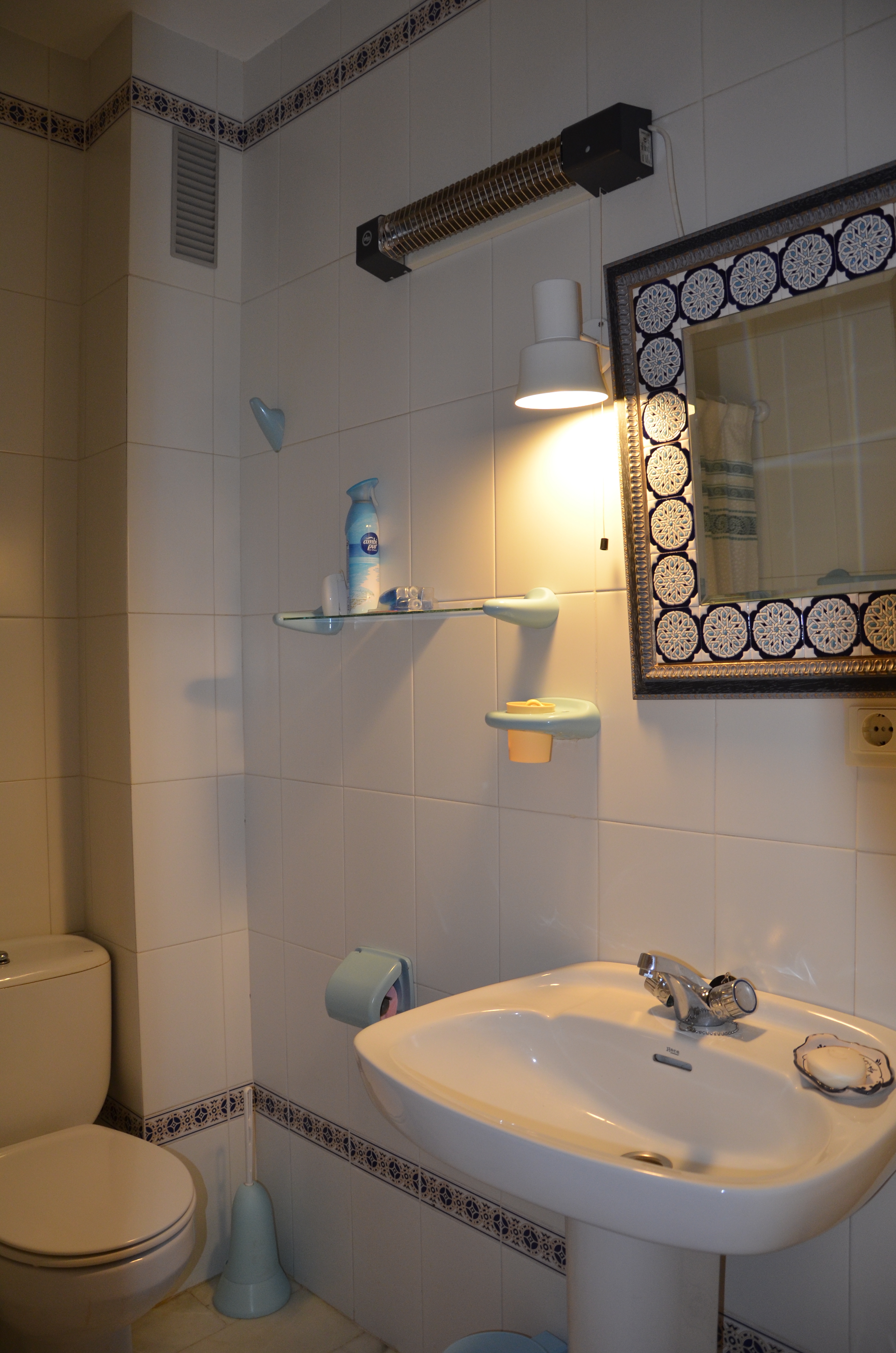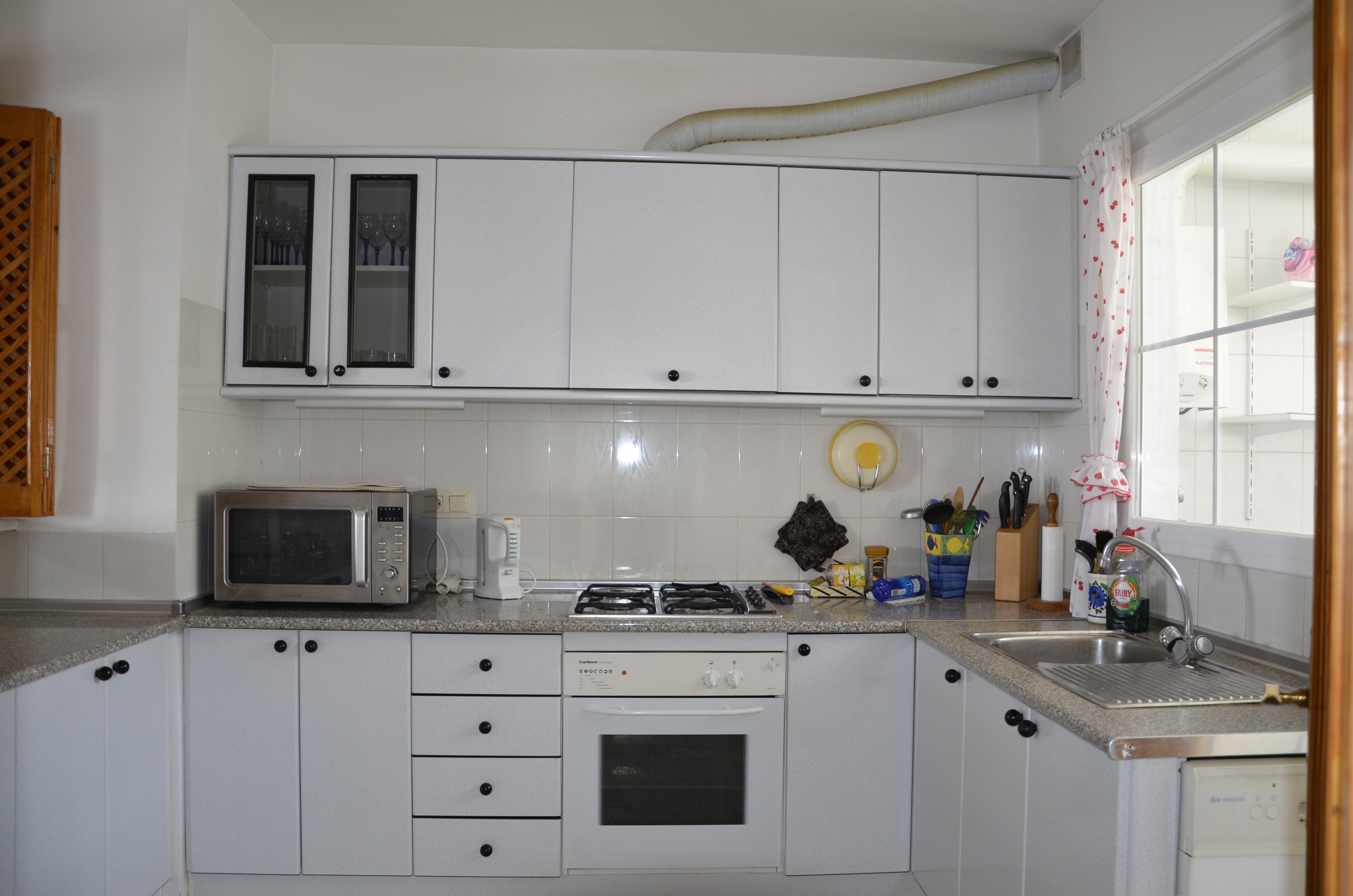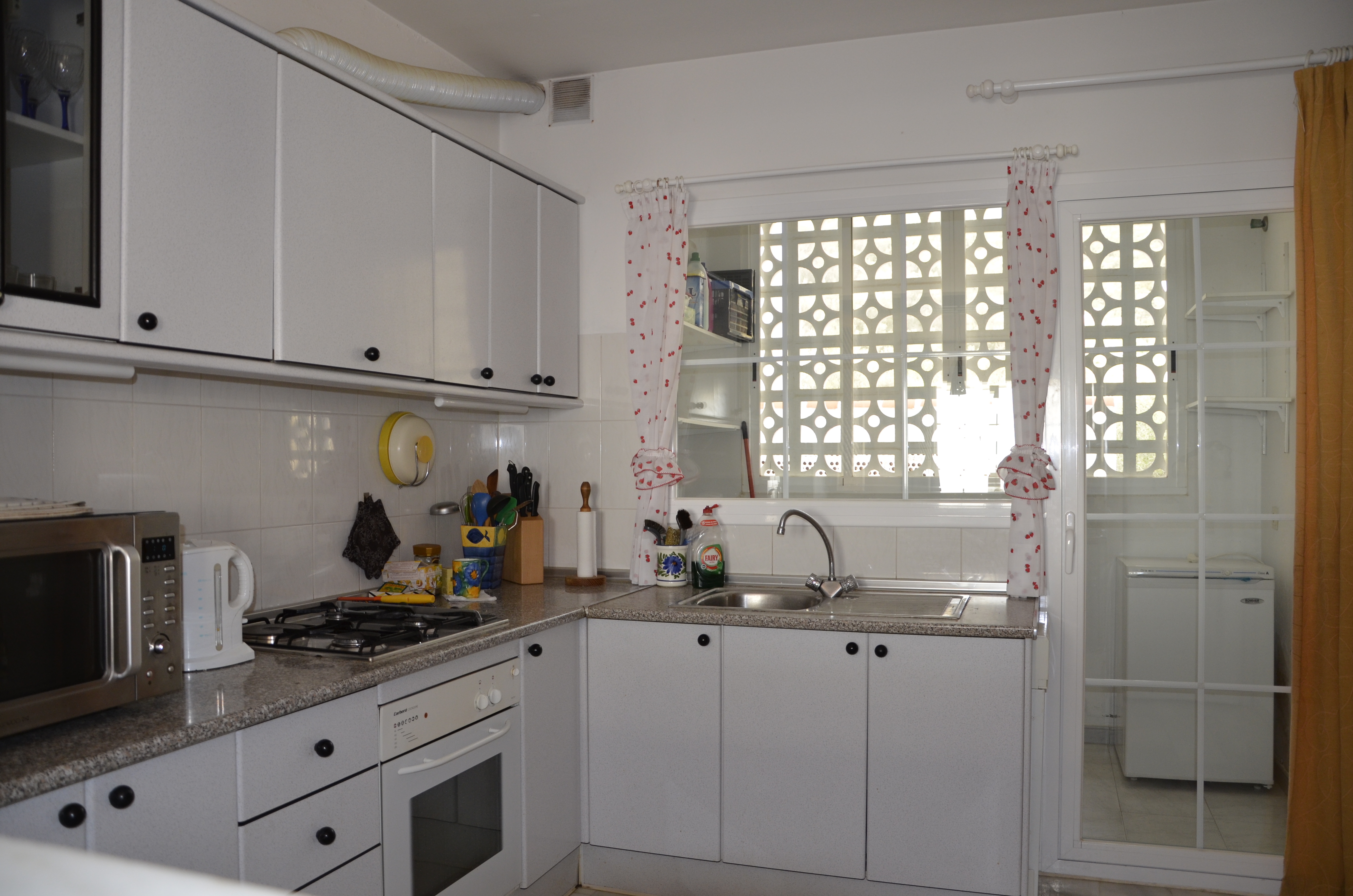 From the kitchen there is an opening onto the living room and the living room consist of a dining area and a place for sitting area with TV (with the possibility of Satellite connection), 3 seats couch, 2 armchairs. Modern fireplace, and heat pumps and air conditioning, including a dining table for 6 persons. From the living room there is access to a nice terrace with the most fabulous view to the Sea. From the hall a staircase leads down to a hall and an extra storage room, which easily could be converted into an extra bathroom. The 2 bedrooms has fitted wardrobes and the third bedroom also have access to the second terrace and the private garden, all bedrooms share a huge bathroom.