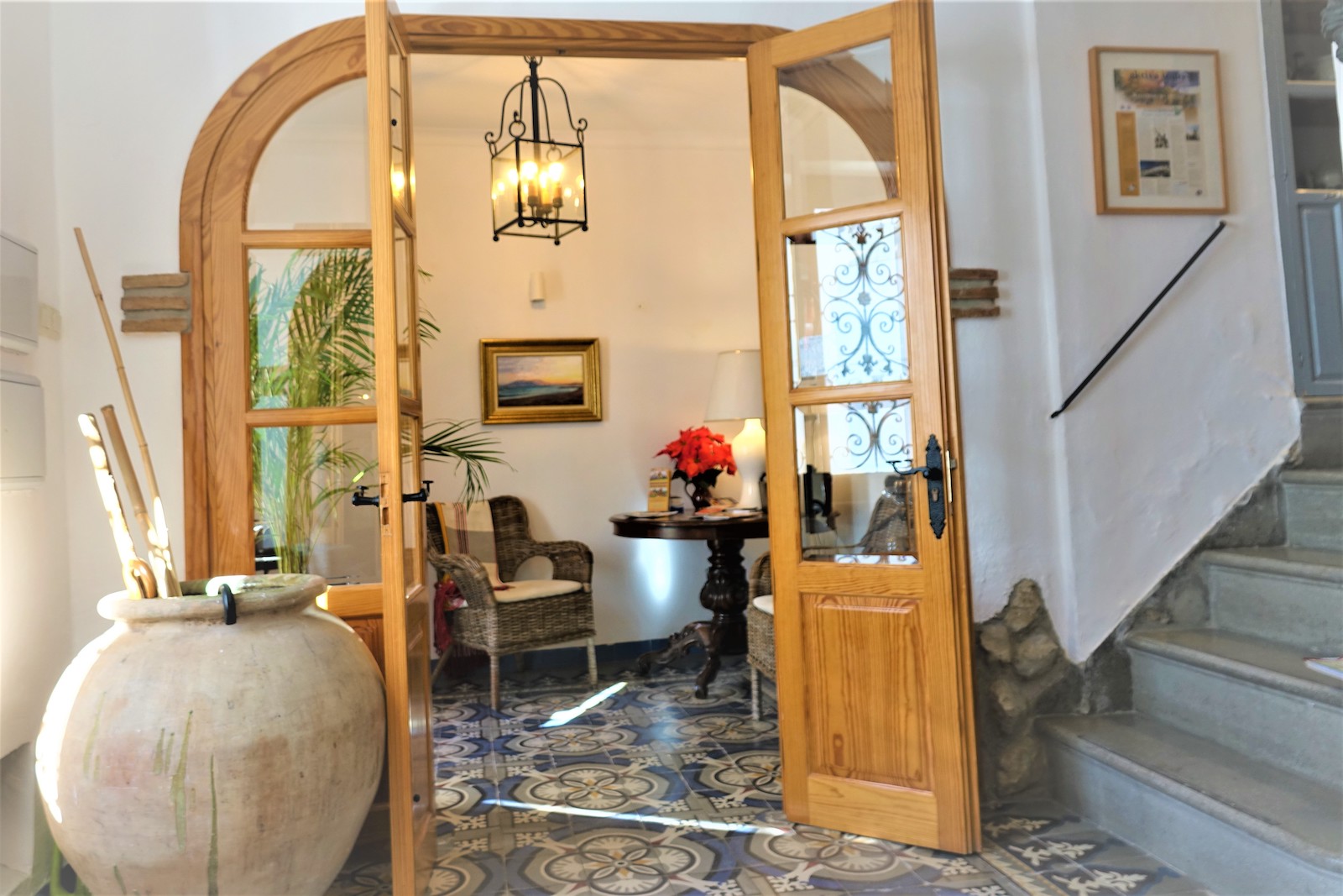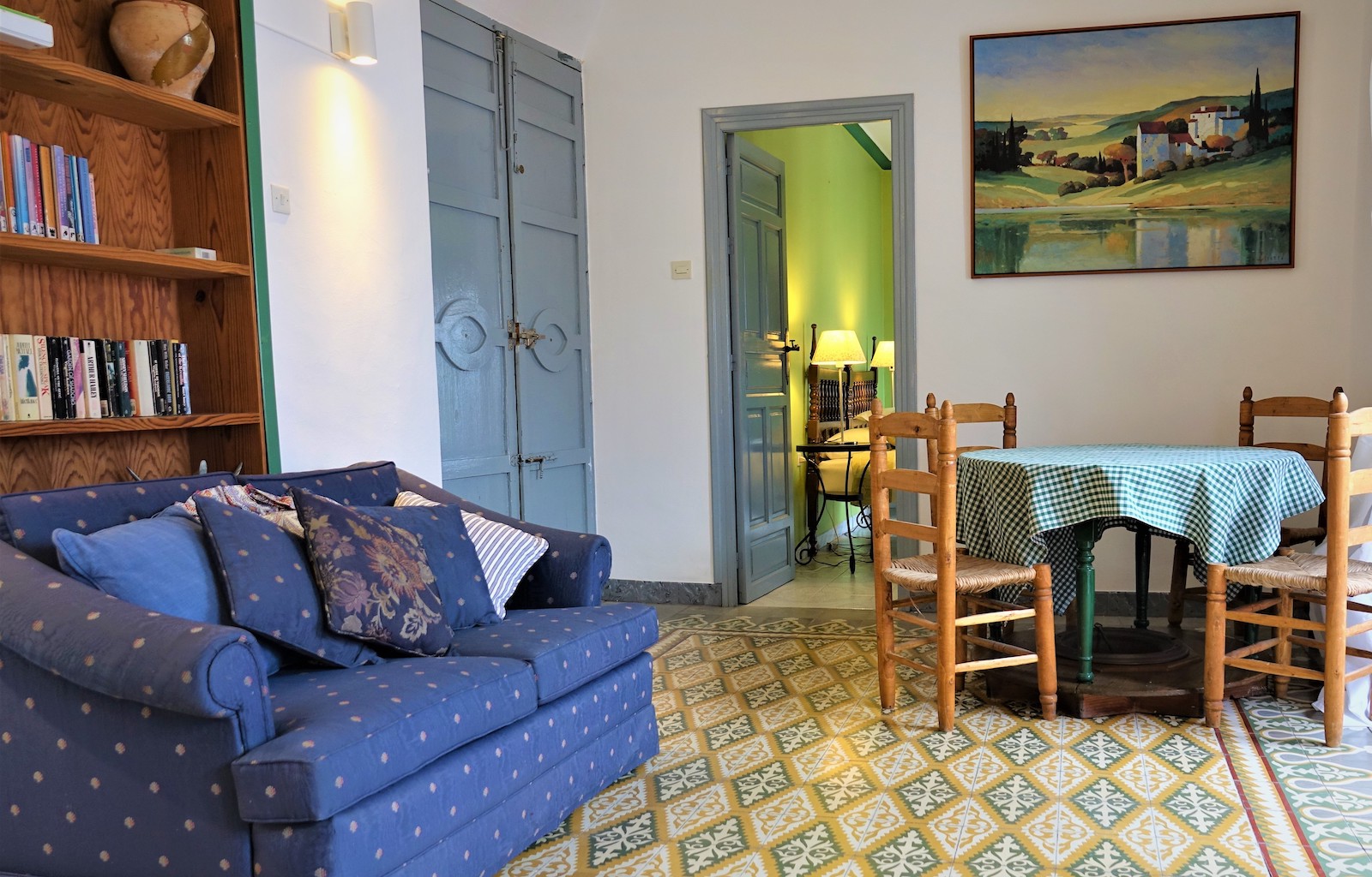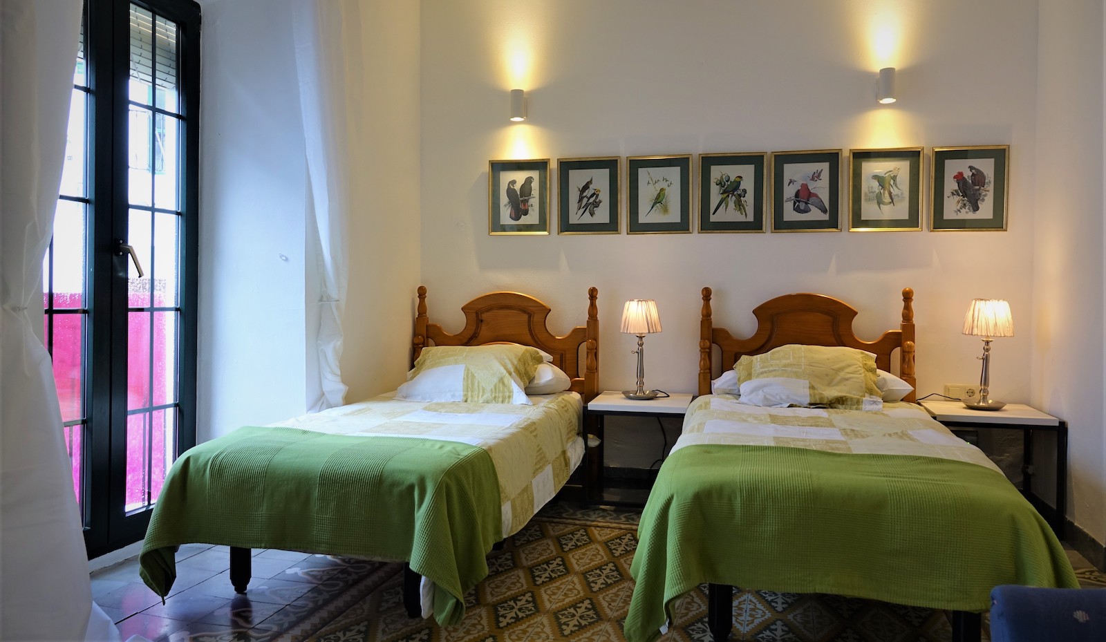Large double doors from the main street lead into a bright entrance hall (7.31 m2) with precious, original hand painted floor tiles from the1920’s. From the main hall doors to the left you’ll find a small snug/reception/office (6.62 m2) space, to the right doors lead into the spacious guest’s lounge (27.29 m2) with fireplace, 3 set of double French thermopane glazed doors opening to the street and casual dining area as well as the entrance to the cozy ‘Bodega’ style double guest room (16,99 m2) with private bathroom. The traditional terracotta floor tiles and wooden beams make this a warm and inviting space for the guests to relax. From the entrance hall, you can also access the internal courtyard (45.0 m2) with seating capacity for ‘al fresco’ breakfast and dining in the summer and covered space with washing and drying machine.