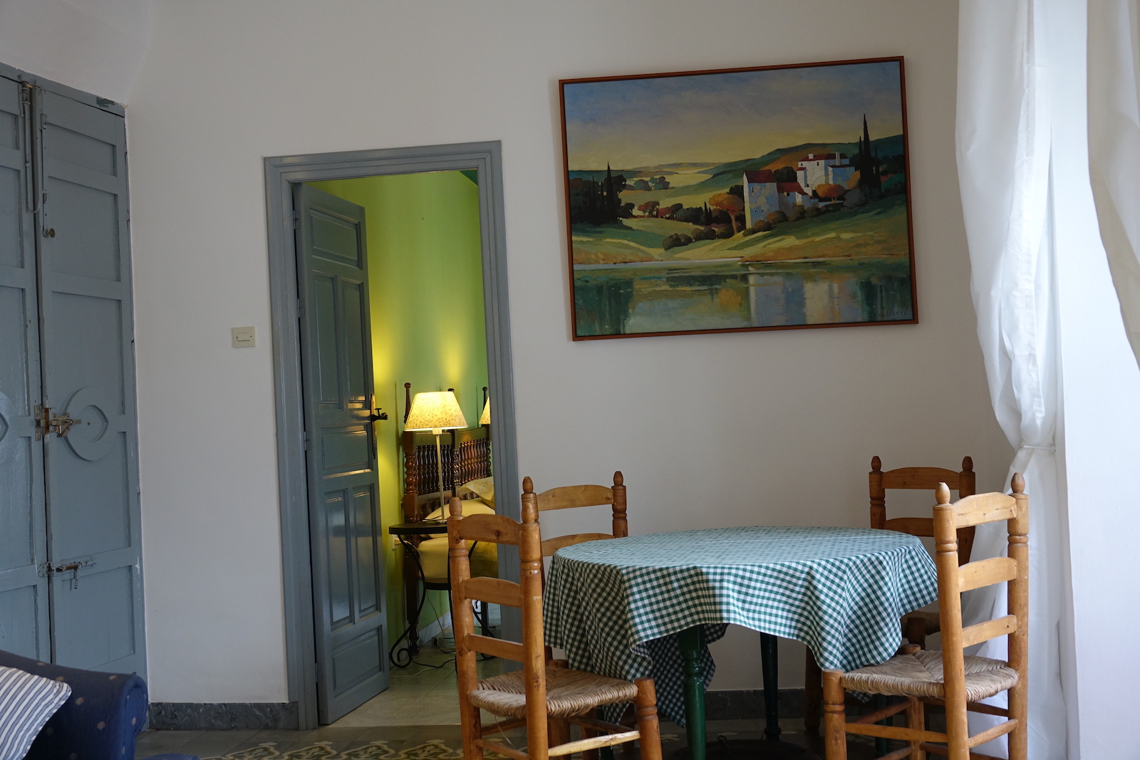 The staircase then takes you further up to the ‘Loft’ style owner’s accommodation with cozy snug/lounge with fireplace (11.5 m2), rustic kitchen/diner (14.3 m2) and separate double bedroom (13.65 m2) with Moorish style en-suite bathroom (6.3 m2) with toilet/shower, all with original terracotta floor tiles and wooden beams. The double thermopane glazed French doors with Juliette balcony at the front offers views over the village out to the sea in the distance. Off the bedroom you will find a balcony (3.58 m2) overlooking the internal courtyard with space for table and chairs to enjoy your morning coffee.