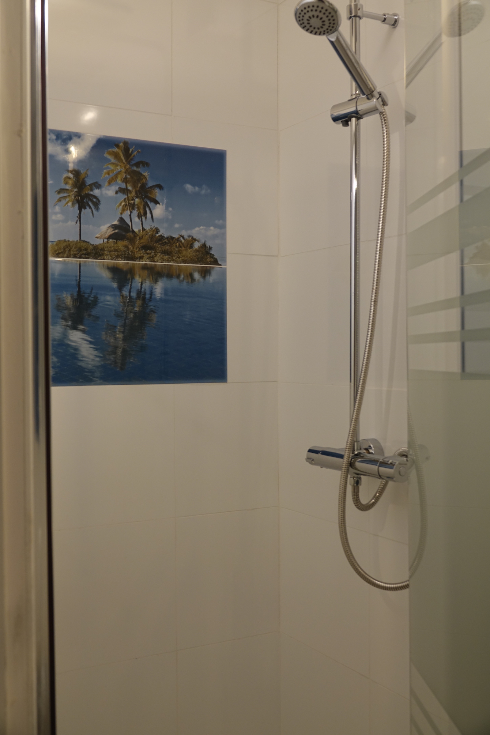 From the hall, steps lead to the first floor with the large ‘Casa’ family room (19.68 m2) sleeping up to 4 persons with additional, separated bedroom (10.49 m2), private bathroom (5.41 m2) with toilet and shower. The original 1920’s floor tiles are simply unique. The double thermopane glazed French doors give this accommodation an airy and light feeling.