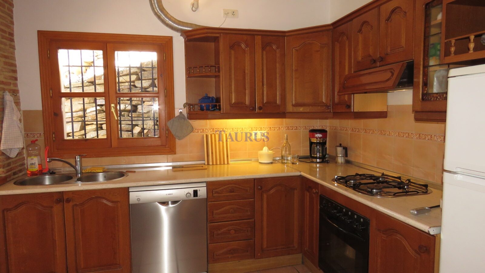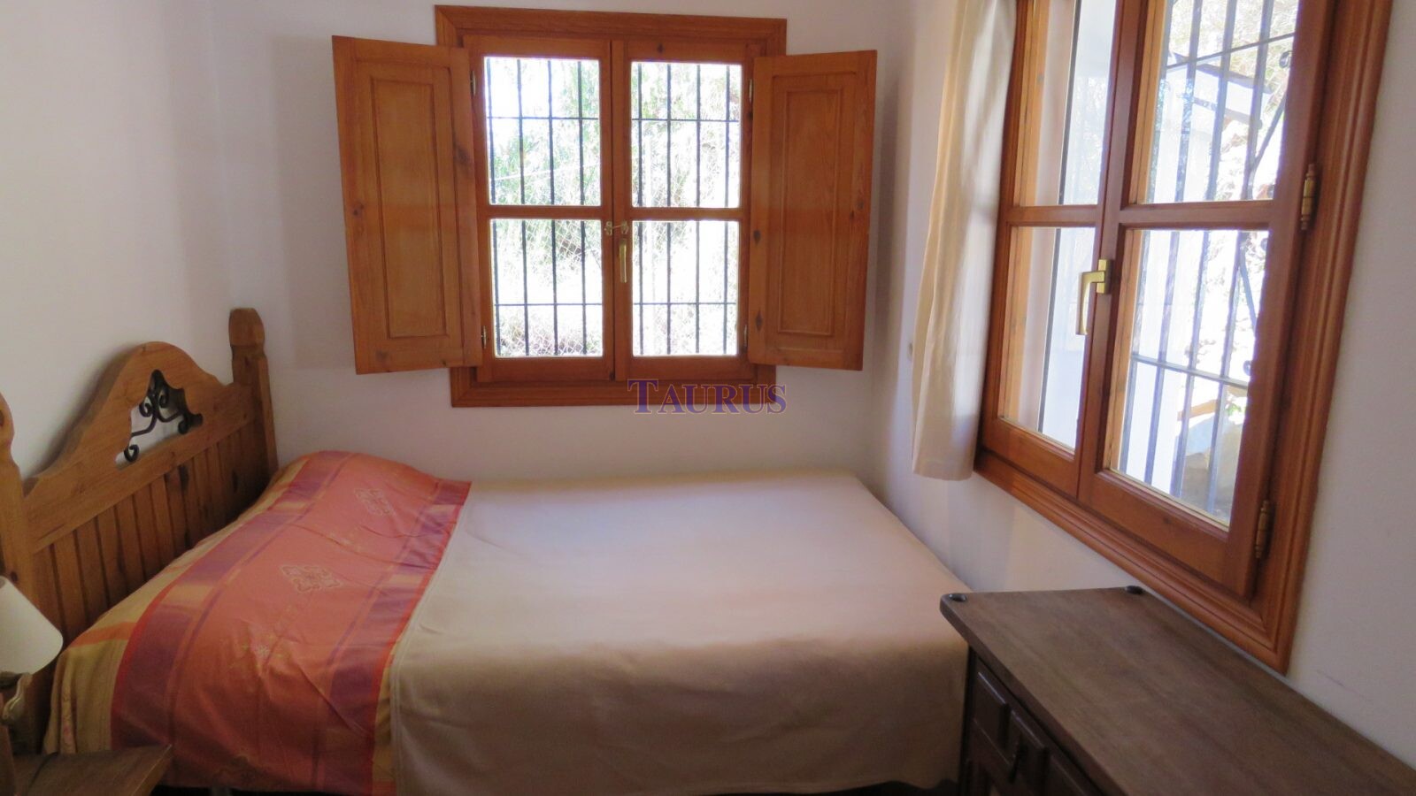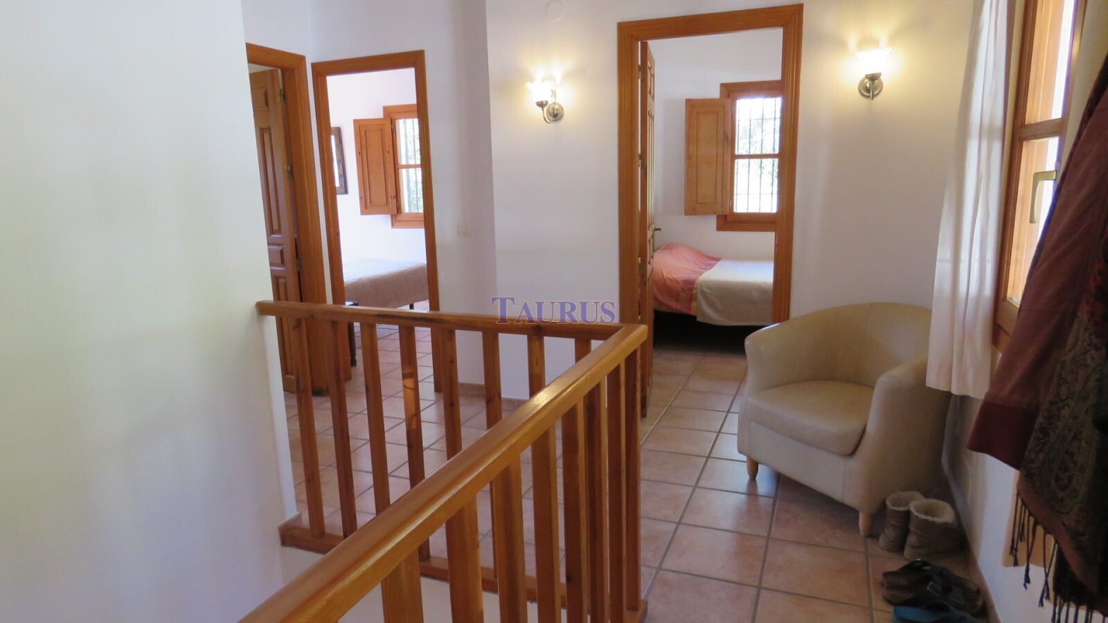 This rustic style property built in ‘99 has 172 m2 accommodation distributed over two floors, and includes an integrated garage. The top floor consists of an entrance area and landing leading to 3 bedrooms, two of which lead out onto a sunny balcony terrace, a guest bathroom and the garage. Stairs lead down to the living / dining area and kitchen, a fourth bedroom and second bathroom.