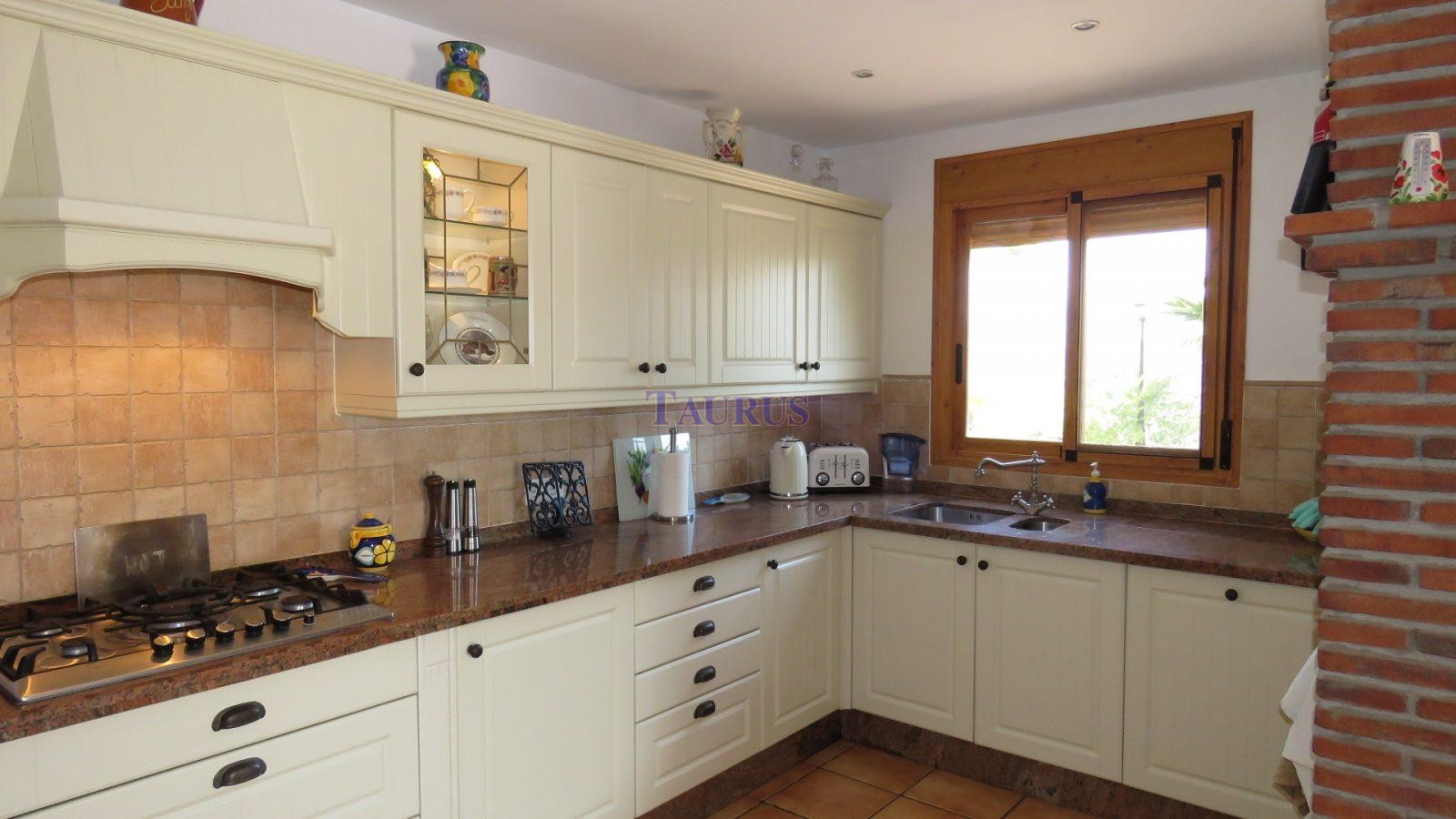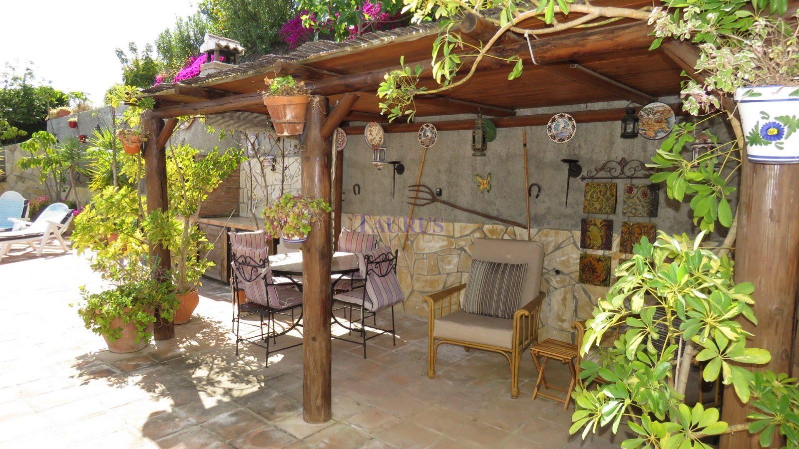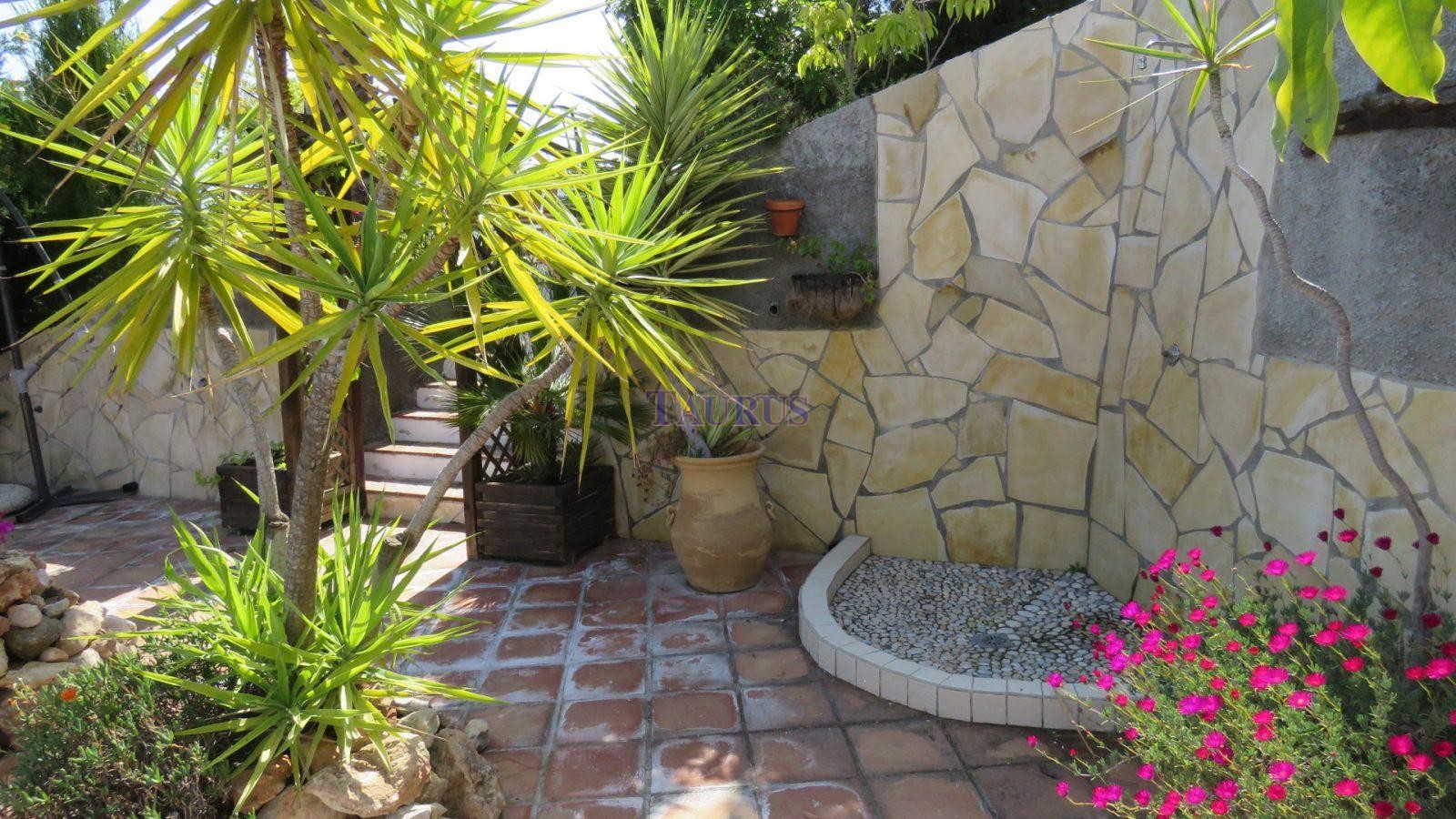 The plot is approx. 4,064 m2 and is landscaped with a variety of almond, olive, palm, pine and fruit trees. The entrance to the villa has electric gates, security lighting and a sweeping concrete driveway leading to a garage (17.52 m2), storage (11 m2) and terrace. On the large fully-tiled terrace surrounding the villa there is a good size swimming pool (approx. 44 m2), gazebo and brick BBQ / kitchen area. The lush tropical planting with an abundance of flowers and shrubs gives a feeling of peace and tranquility, and the mature trees provide natural shady spots for lounging and al fresco dining.
