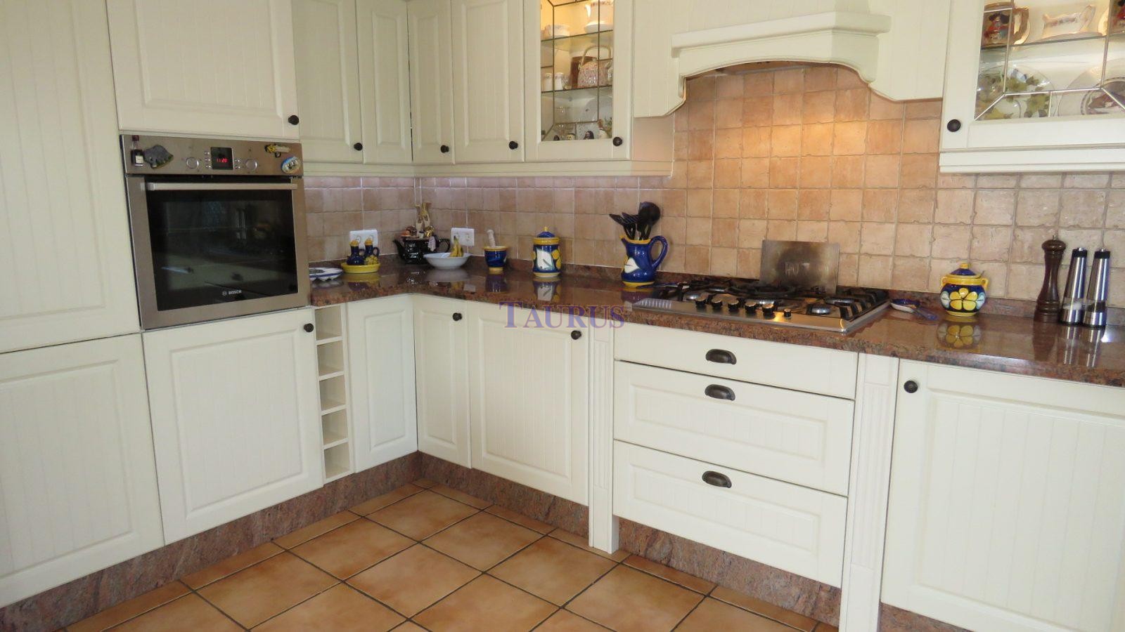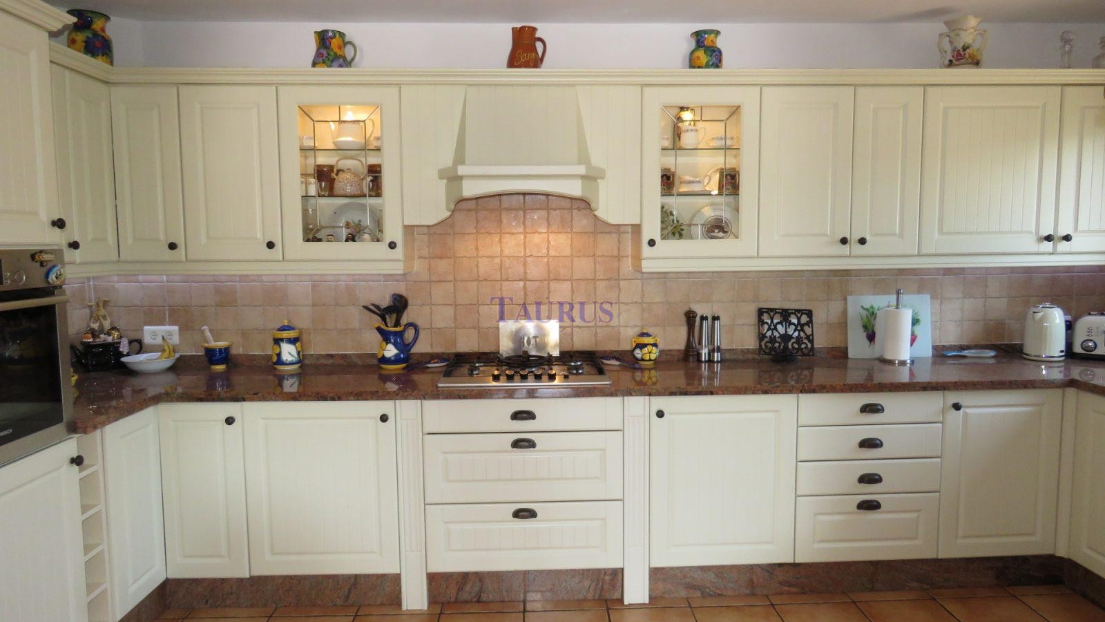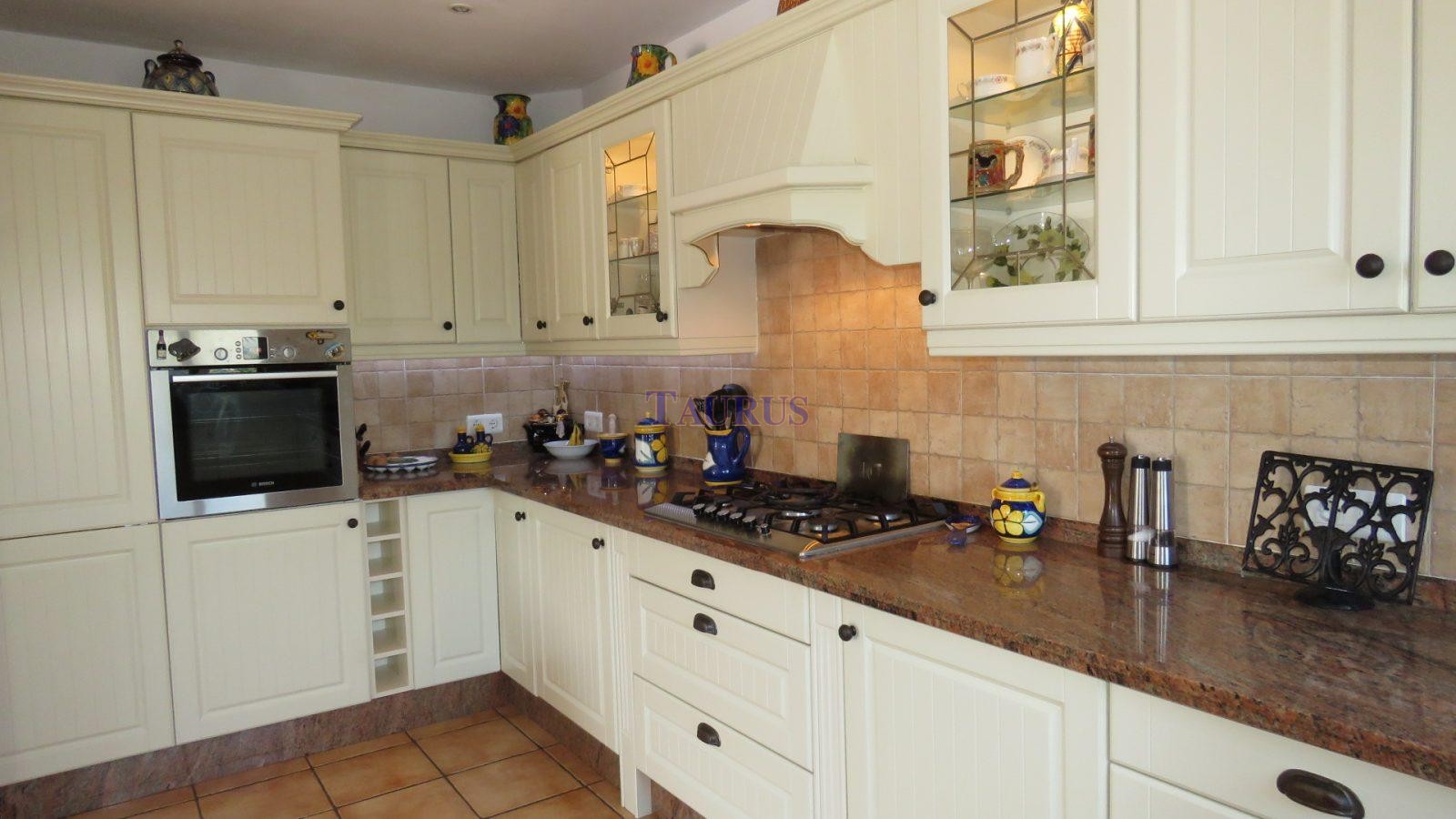 The plot is approx. 4,064 m2 and is landscaped with a variety of almond, olive, palm, pine and fruit trees. The entrance to the villa has electric gates, security lighting and a sweeping concrete driveway leading to a garage (17.52 m2), storage (11 m2) and terrace. On the large fully-tiled terrace surrounding the villa there is a good size swimming pool (approx. 44 m2), gazebo and brick BBQ / kitchen area. The lush tropical planting with an abundance of flowers and shrubs gives a feeling of peace and tranquility, and the mature trees provide natural shady spots for lounging and al fresco dining.