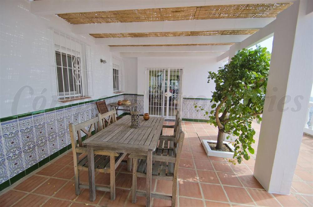 An elegant country property in Spain set in a plot of app 818m2 in a most sought after area on the edge of the pretty village of Cómpeta. Superb views to the Mediterranean with the impressive Sierras forming a stunning backdrop. 8x4 pool, garage and separate guest apartment. The main house has a magnificent open plan living area with an independent fully fitted kitchen, a charming sitting room, a master bedroom with ensuite facilities, a double and a single bedroom with interconnecting shower room, a twin bedroom and a separate guest wc. The apartment has an open plan living area with kitchen, a double bedroom and a shower room and a private terrace.