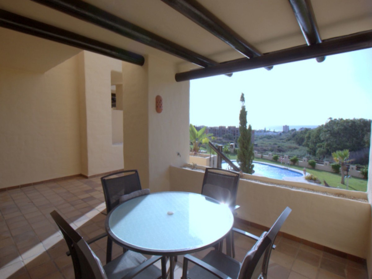 Pool & Sea View with 40msq Terrace. Coto Real, Duquesa is an established urbanisation within easy reach of all amenities and a short walk to the busy and vibrant local shopping area of Sabinillas. Situated in the first phase is this exceptional apartment with direct access to the gardens and communal pools. The entrance opens to a spacious hallway with a fully equipped kitchen and utility/laundry room. Further along the hallway is the main living area with it´s feature alcoves, nice decor and patio doors leading out to the south east facing terrace with views of the pool and towards the coast. There are two very spacious bedrooms with ample wardrobe storage and a family bathroom. The master bedroom benefits from a full en-suite and also patio doors out to the terrace. The terrace is a fantastic size and a great orientation to catch the sun as well as having direct access down to the communal pool/gardens. The property comes with hot & cold air-conditioning, underground parking, separate storage room and is in a highly desirable community in Duquesa. A perfect property for holidays or long-term coastal life.