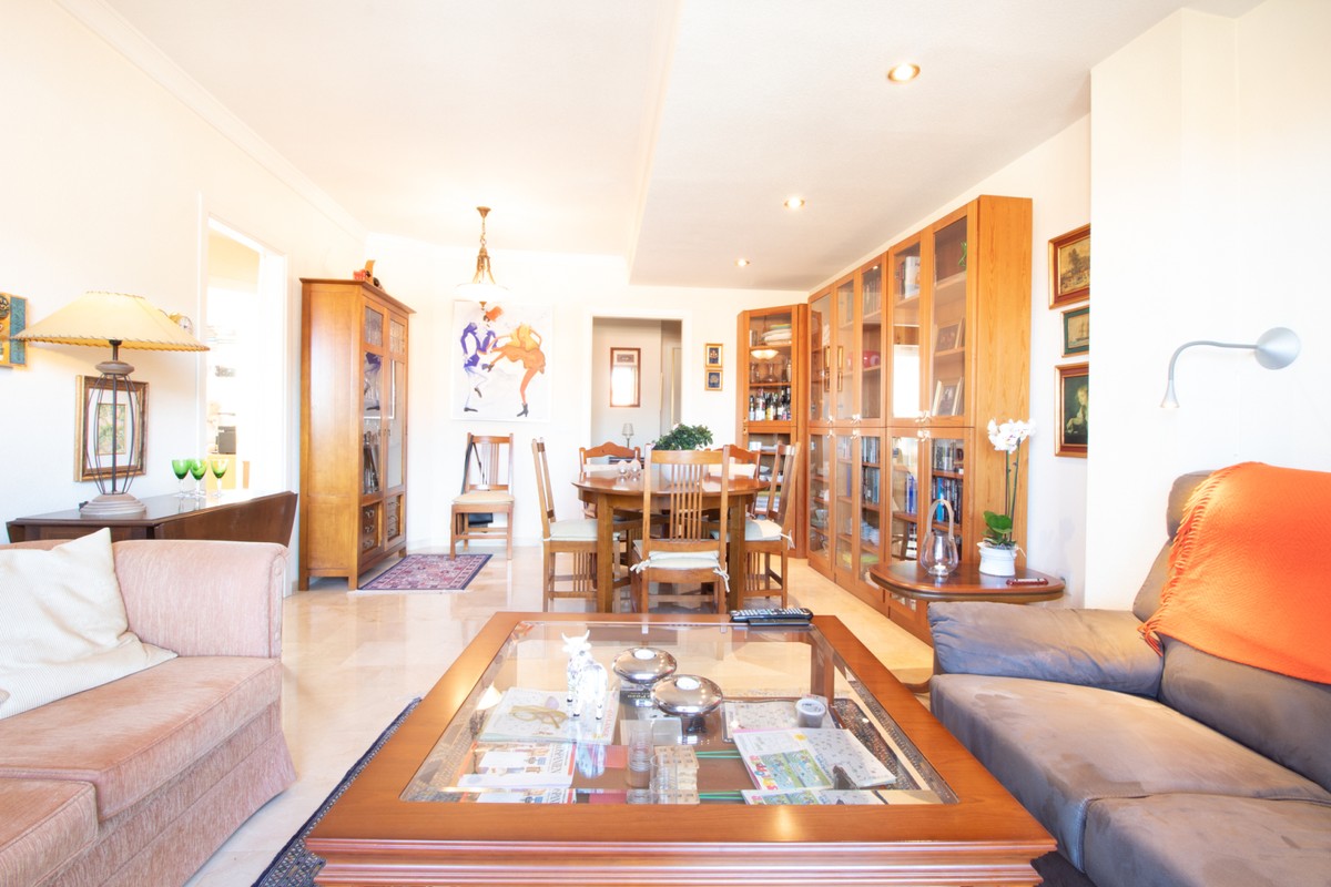 From the entrance into the apartment you will find the large living and dining room with acces straight to the downstairs terrace with nice views.