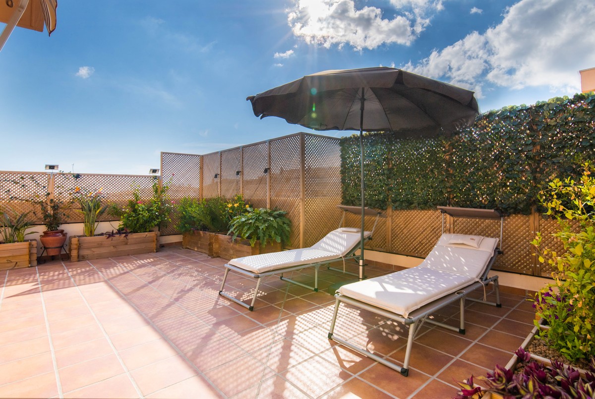 This penthouse offers 155 m2 of living space with four bedrooms, two large bathrooms, one en-suite, a large well equipped kitchen and over 30 m2 of living room.