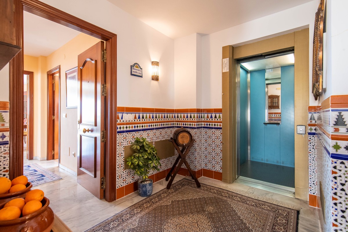 Just a few steps beside the parking, you will find the elevator, which gives you exclusive and private access directly into the Andalucían style entrance of the apartment. The property occupy the entire fifth floor of this portal.