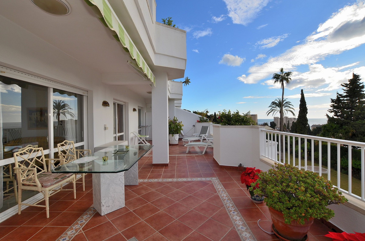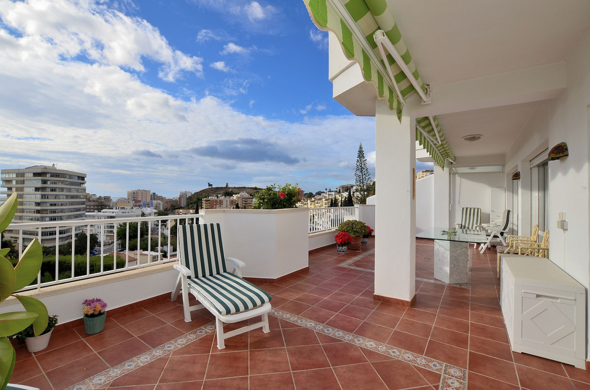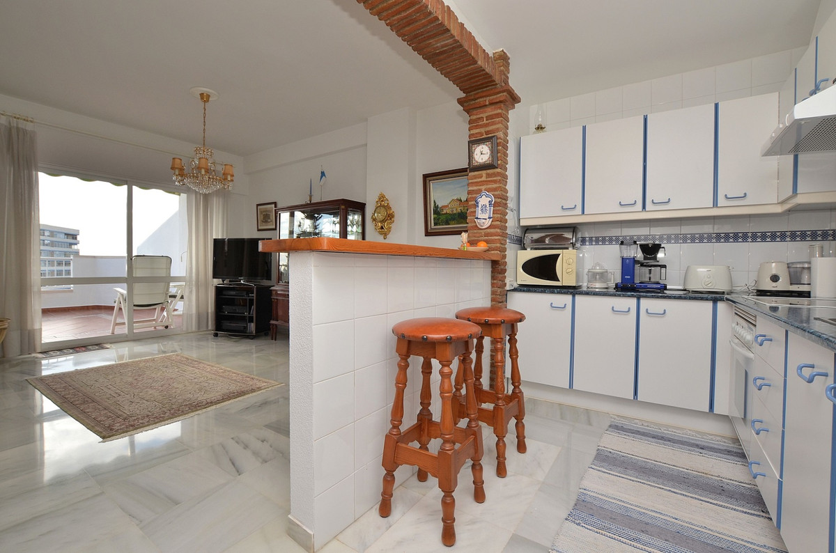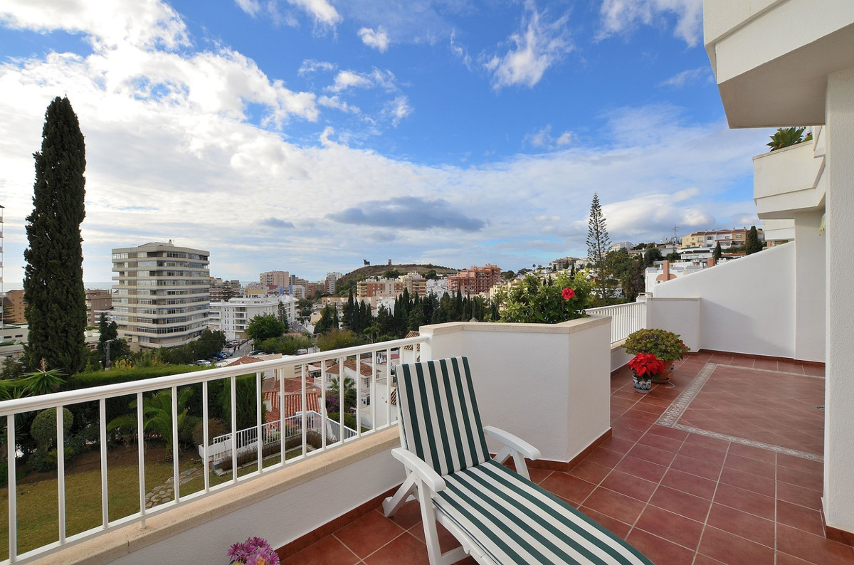 Apartment with HUGE TERRACE and BEAUTIFUL SEA VIEWS located in lower Torreblanca area (Fuengirola). PRIME LOCATION just 350 mts from the beach, 150 mts from the train station and walking distance to amenities.