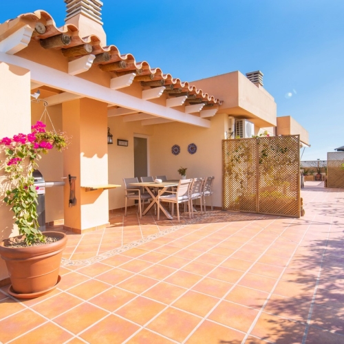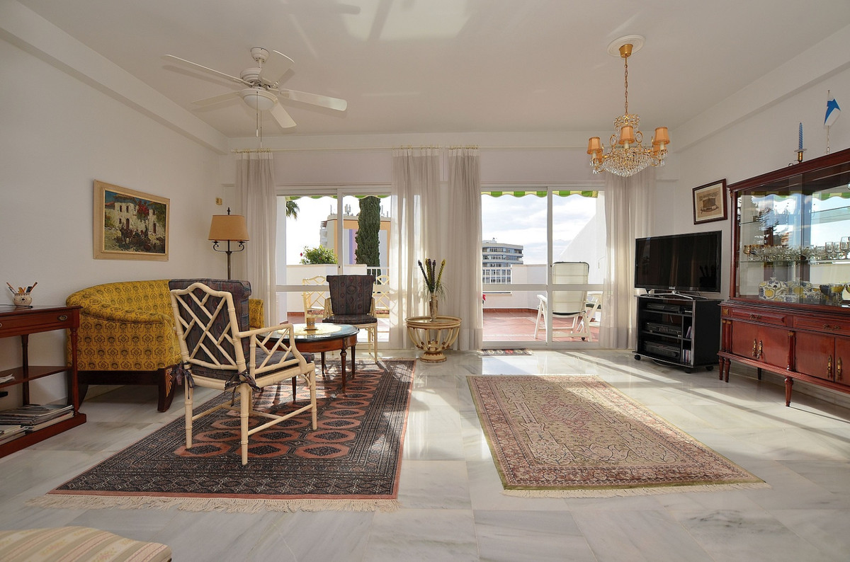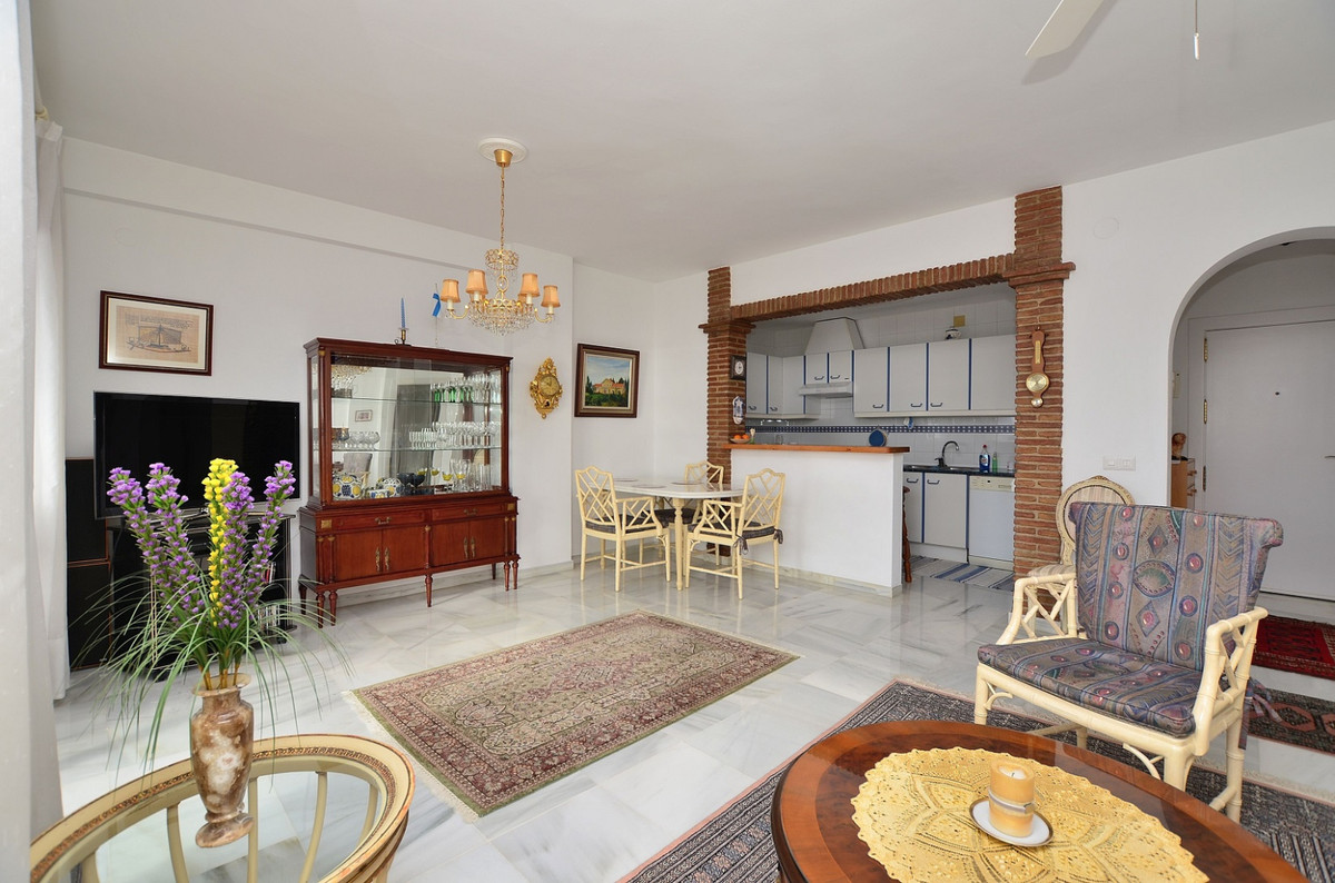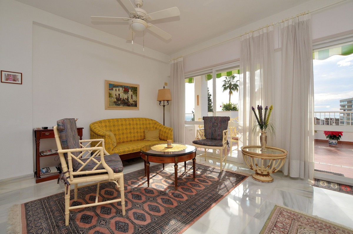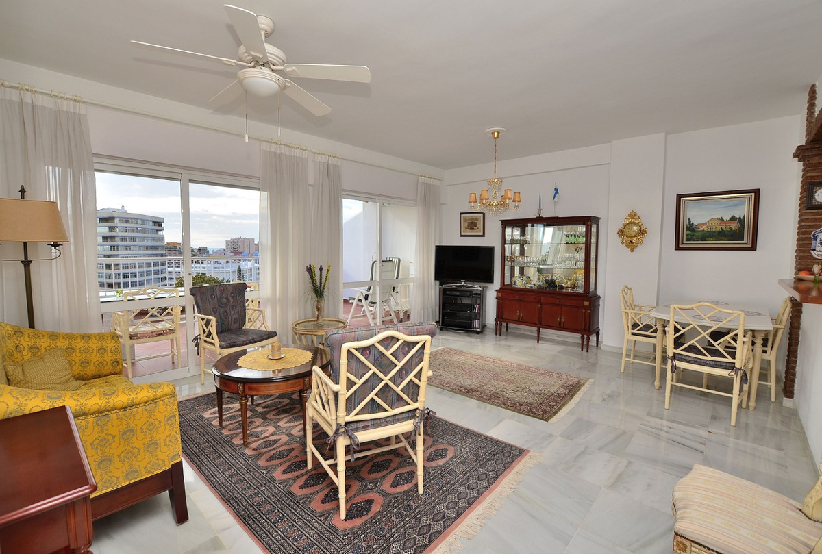 Apartment with HUGE TERRACE and BEAUTIFUL SEA VIEWS located in lower Torreblanca area (Fuengirola). PRIME LOCATION just 350 mts from the beach, 150 mts from the train station and walking distance to amenities.