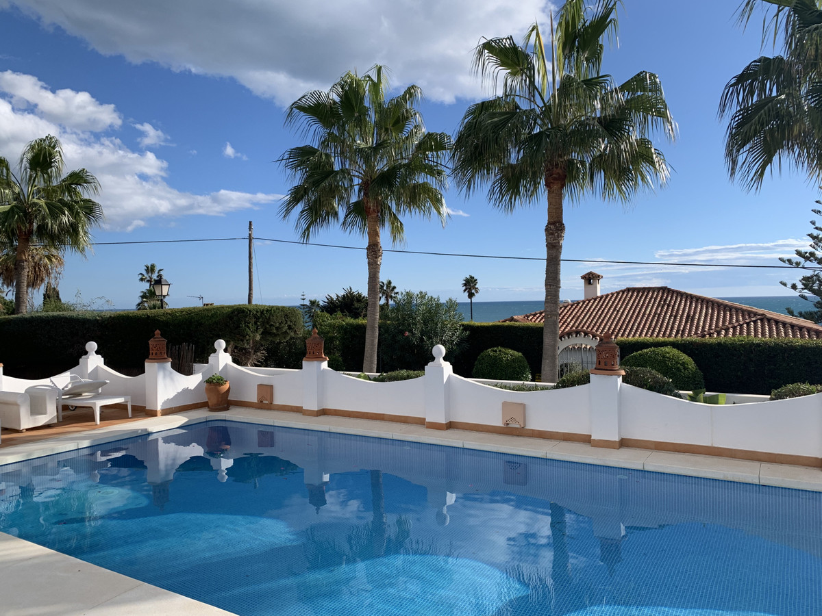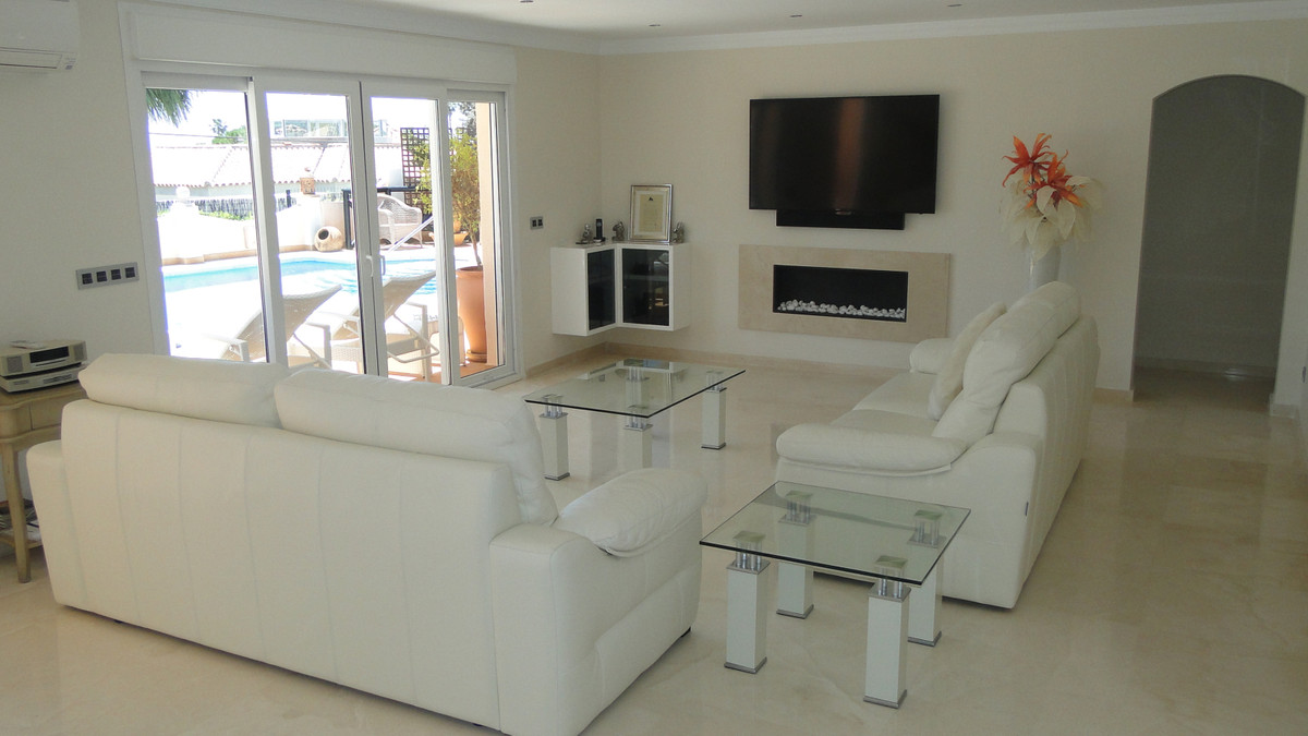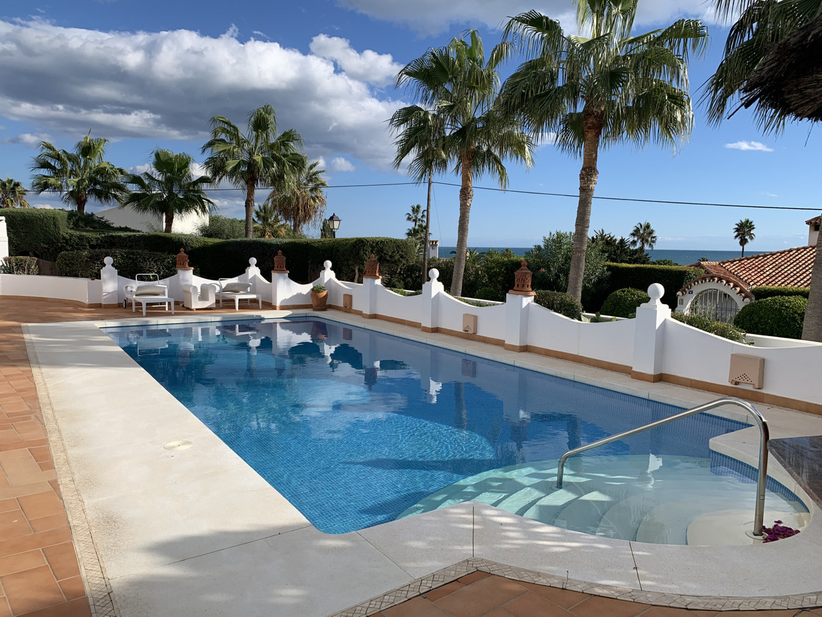 ABSOLUTELY STUNNING VILLA ALL ON ONE LEVEL THAT ENJOYS SUPERB SEA VIEWS AND IS JUST A SHORT WALK TO THE BEACH AND 15 MINUTES INTO THE CENTRE OF LA CALA. THE PROPERTY IS PRESENTED IN IMMACULATE CONDITION AND HAS BEEN TOTALLY REFURBISHED AND MODERNISED TO THE HIGHEST STANDARDS BY THE CURRENT OWNERS. BRIEFLY COMPRISES: ENTRANCE HALLWAY, LUXURY FITTED DINING KITCHEN, UTILITY ROOM, LOUNGE WITH FEATURE FIREPLACE, FIVE DOUBLE BEDROOMS OF WHICH THREE ARE EN-SUITE AND A FURTHER FAMILY BATHROOM FEATURING WALK-IN SHOWER AND ROLL-TOP VICTORIAN BATH. EVERY ROOM EVOKES A SENSE OF LUXURY AND OPULENCE IN A CONTEMPORARY MODERN STYLE. AS YOU WOULD EXPECT THE VILLA HAS AIR-CONDITIONING THROUGHOUT WITH UNDERFLOOR HEATING IN THE LOUNGE AND BATHROOMS. THE LOUNGE, MASTER BEDROOM AND ONE EN-SUITE GUEST ROOM OPEN OUT TO THE BEAUTIFUL POOL AND CABANA STYLE ENTERTAINMENT AREA WHICH HAVE A SUNNY SOUTHERLY ORIENTATION. THE GARDENS SURROUNDING THE VILLA ARE MATURE AND EASILY MAINTAINED WITH THE VILLA BEING SITUATED ON A LARGE FLAT PLOT. THE ARE TWO PRIVATE GATED PARKING SPACES WITHIN THE VILLA BOUNDARY. THIS PROPERTY NEEDS TO BE SEEN TO FULLY APPRECIATE ALL OF THE IMPRESSIVE FEATURES ON OFFER.