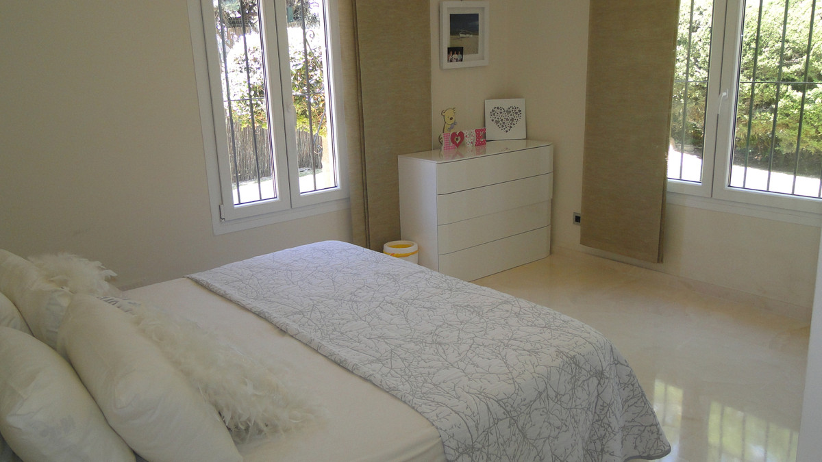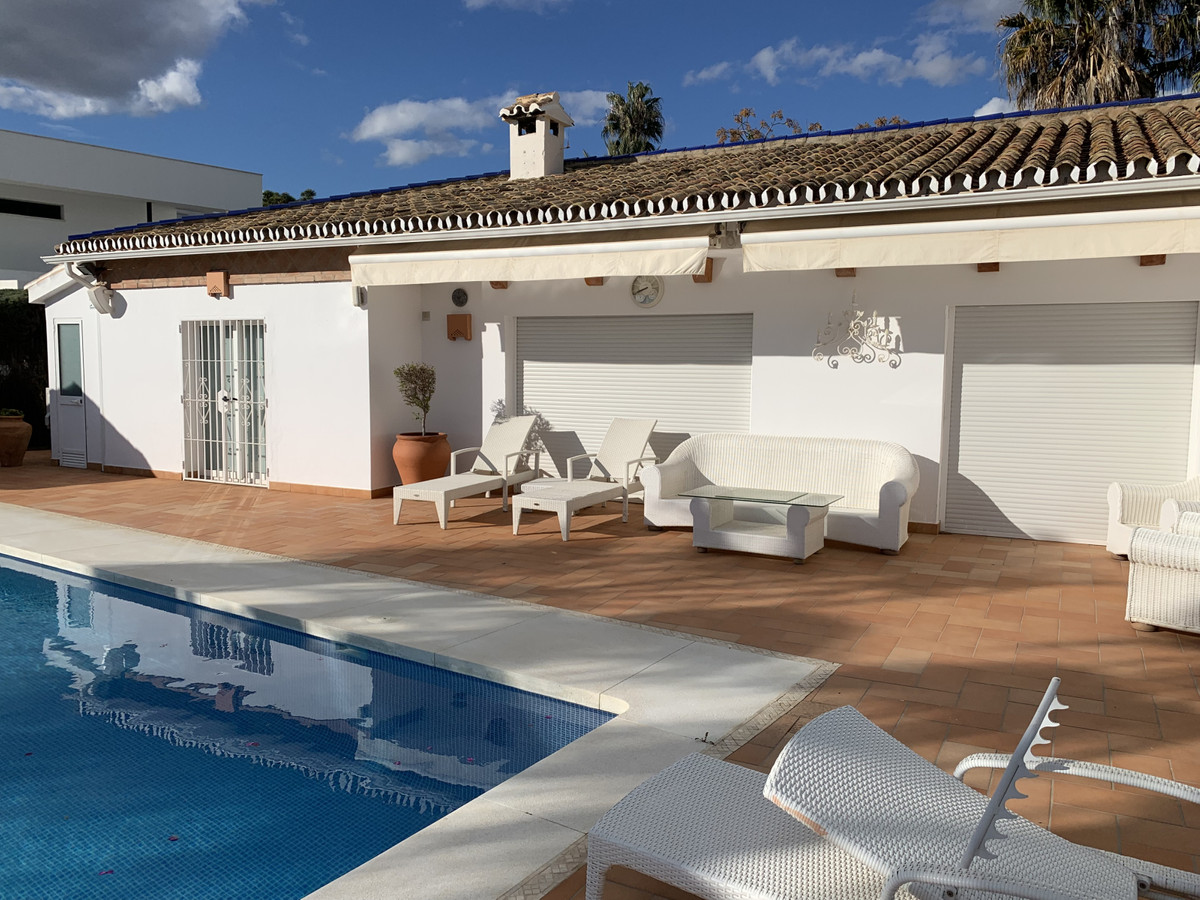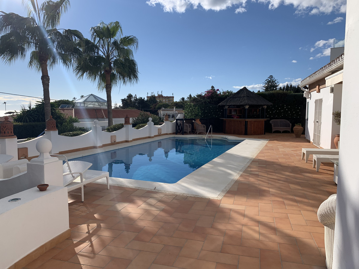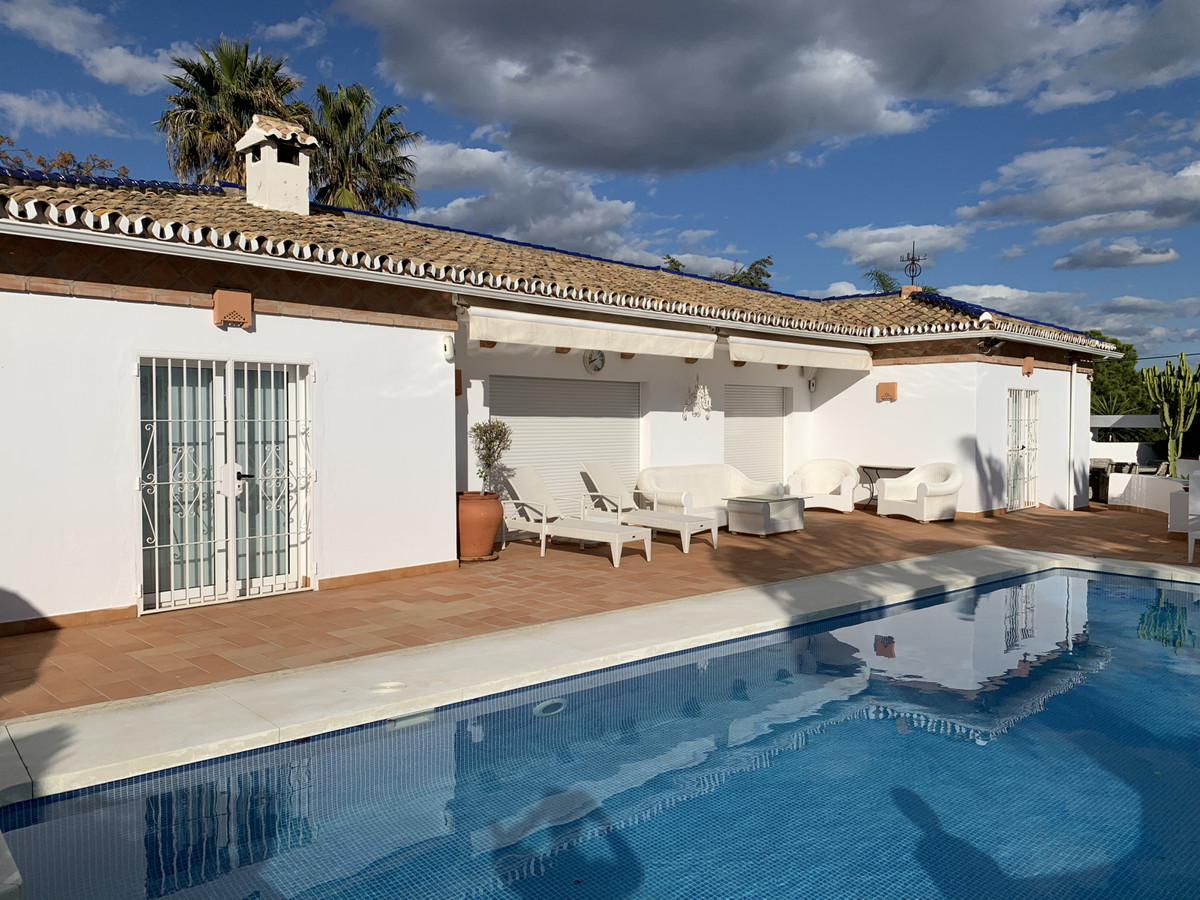 ABSOLUTELY STUNNING VILLA ALL ON ONE LEVEL THAT ENJOYS SUPERB SEA VIEWS AND IS JUST A SHORT WALK TO THE BEACH AND 15 MINUTES INTO THE CENTRE OF LA CALA. THE PROPERTY IS PRESENTED IN IMMACULATE CONDITION AND HAS BEEN TOTALLY REFURBISHED AND MODERNISED TO THE HIGHEST STANDARDS BY THE CURRENT OWNERS. BRIEFLY COMPRISES: ENTRANCE HALLWAY, LUXURY FITTED DINING KITCHEN, UTILITY ROOM, LOUNGE WITH FEATURE FIREPLACE, FIVE DOUBLE BEDROOMS OF WHICH THREE ARE EN-SUITE AND A FURTHER FAMILY BATHROOM FEATURING WALK-IN SHOWER AND ROLL-TOP VICTORIAN BATH. EVERY ROOM EVOKES A SENSE OF LUXURY AND OPULENCE IN A CONTEMPORARY MODERN STYLE. AS YOU WOULD EXPECT THE VILLA HAS AIR-CONDITIONING THROUGHOUT WITH UNDERFLOOR HEATING IN THE LOUNGE AND BATHROOMS. THE LOUNGE, MASTER BEDROOM AND ONE EN-SUITE GUEST ROOM OPEN OUT TO THE BEAUTIFUL POOL AND CABANA STYLE ENTERTAINMENT AREA WHICH HAVE A SUNNY SOUTHERLY ORIENTATION. THE GARDENS SURROUNDING THE VILLA ARE MATURE AND EASILY MAINTAINED WITH THE VILLA BEING SITUATED ON A LARGE FLAT PLOT. THE ARE TWO PRIVATE GATED PARKING SPACES WITHIN THE VILLA BOUNDARY. THIS PROPERTY NEEDS TO BE SEEN TO FULLY APPRECIATE ALL OF THE IMPRESSIVE FEATURES ON OFFER.