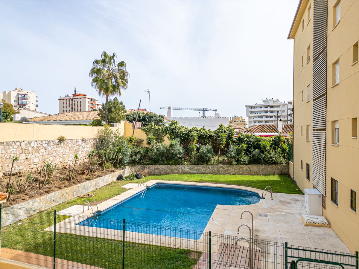 Presenting this 2-bedroom apartment walking distance to Fuengirola Beach! If you are looking for a comfortable apartment to live, as a holiday home or a rental investment, in a fantastic location, then this property ticks all the boxes. In a quiet and safe community, with pool and gardens and your own underground parking space from which you access by lift straight to your home, this apartment features 2 bedrooms, a fully fitted new kitchen, a renovated bathroom and a nice west facing terrace with views to the pool and garden. Located only a stone's throw from the Mijas Aquapark, the zoo, the Myramar Shopping Centre, train and bus stations and 800 m to the beach and Fuengirola's promenade and medieval castle. In addition, it has good connection to the A7 which takes you the Málaga airport in 20 minutes. Book a viewing now before it's someone's else's dream come true!