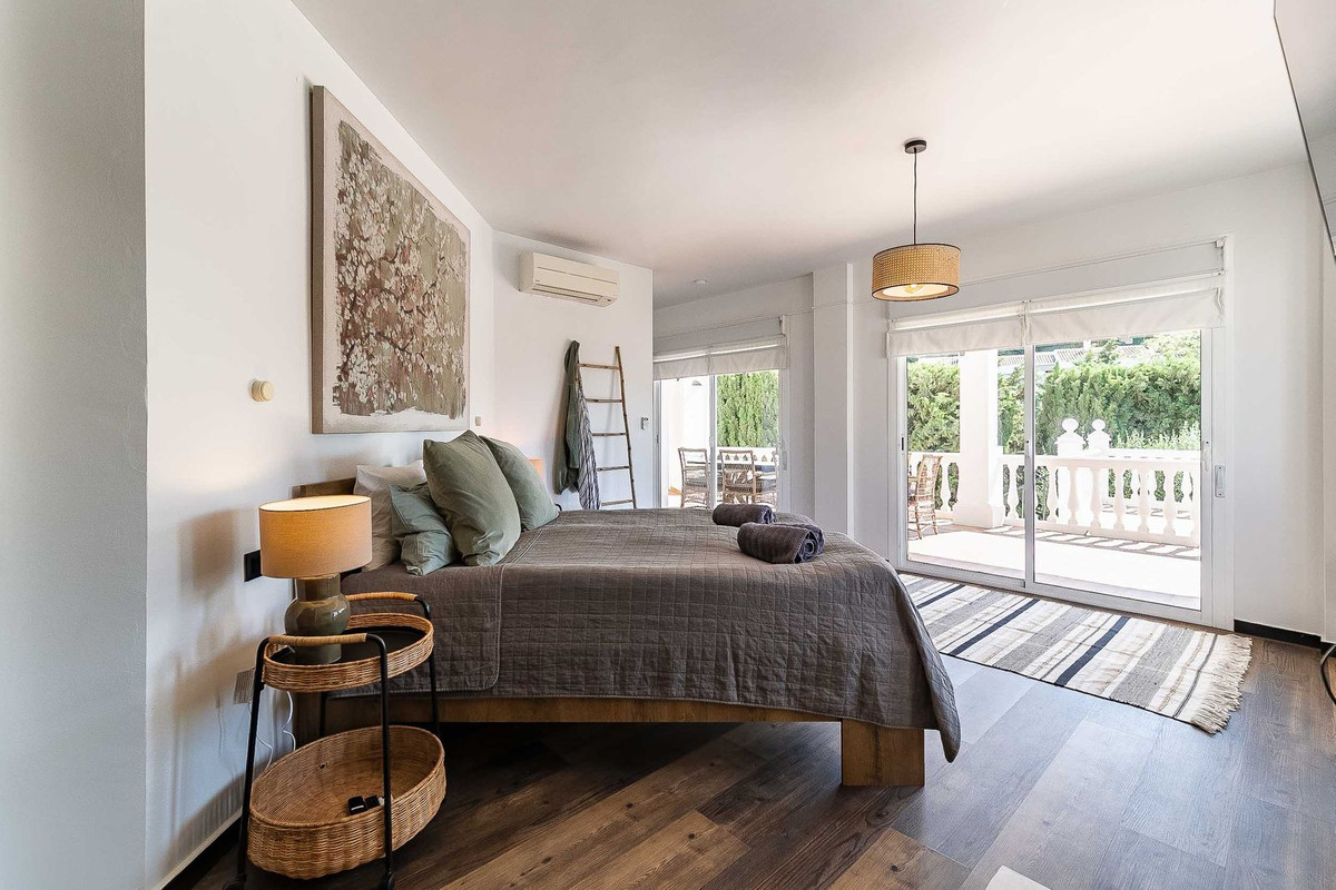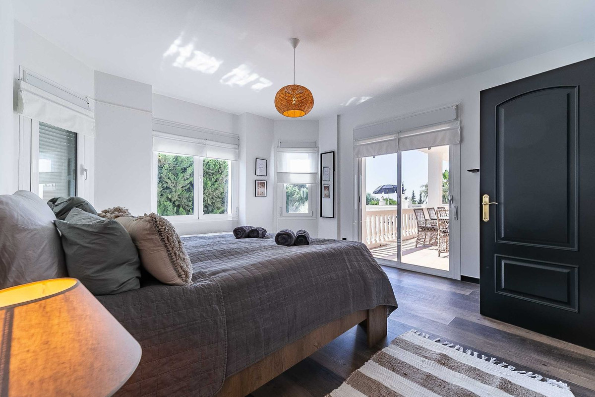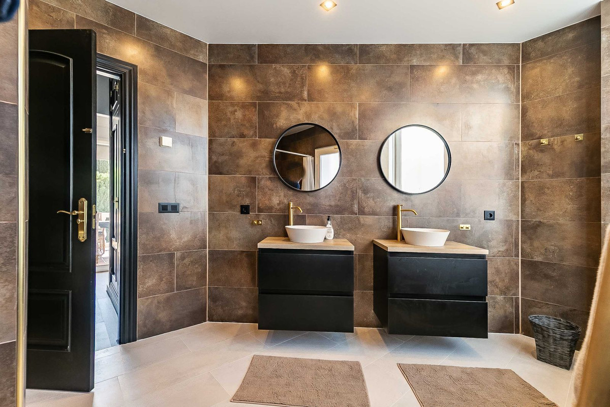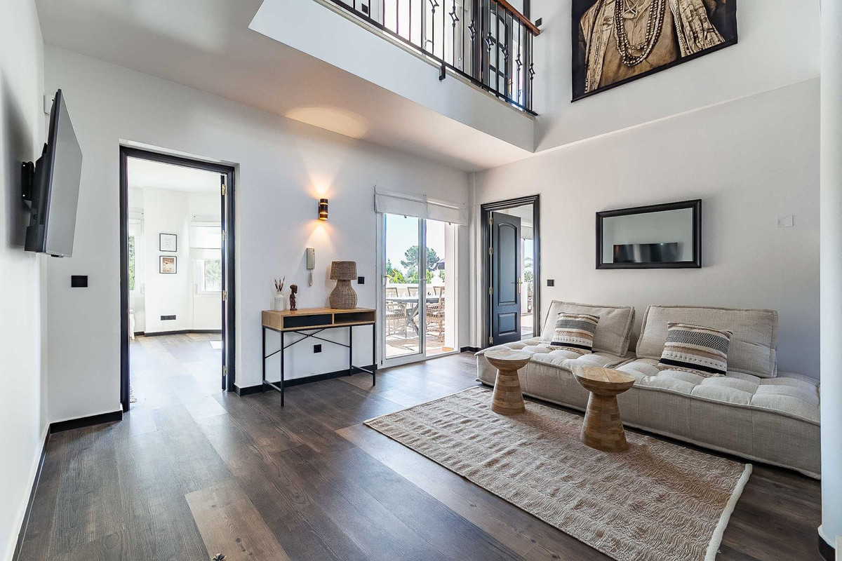 Lower level: This level consists of a bright and spacious hall with high ceiling and furnished with comfortable sofas, 3 spacious bedrooms with fitted wardrobes, 2 of them with direct access to the lower terrace, 3 bathrooms, all of them "én suite" and a 31 m2 south-east facing covered terrace furnished with another large dining table and direct access to the garden and pool area.