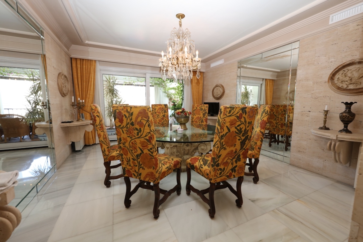 The apartment itself consists of 4 bedrooms and 3 bathrooms. From the entrance you have a spacious hallway which gives access to the kitchen, dining room and livingroom. From all these rooms you have access to a terrace. It is exactly the same from the 4 bedrooms, which also gives access to a terrace.