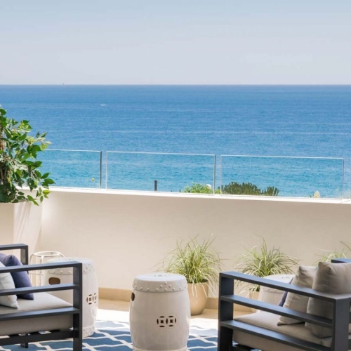 From the livingroom and master bedroom you can access the south west facing terrace, from here you can see straight to the pool and gardens.