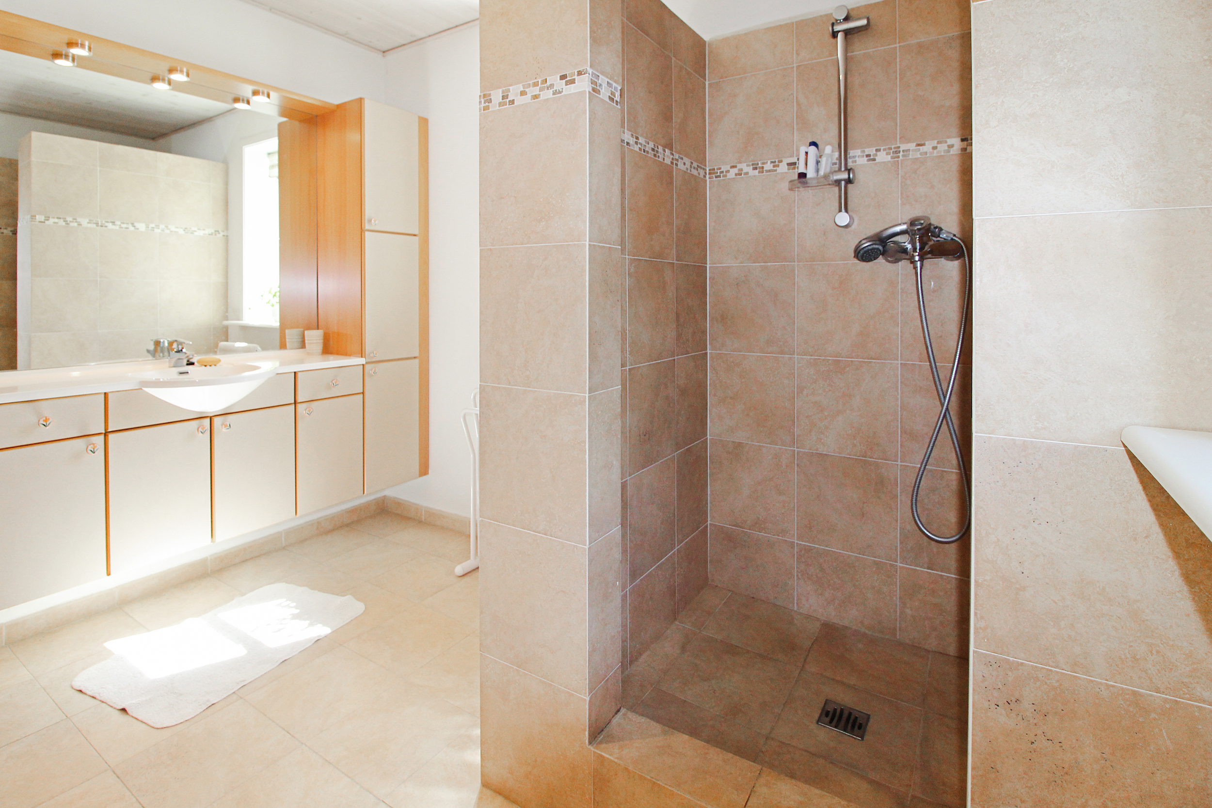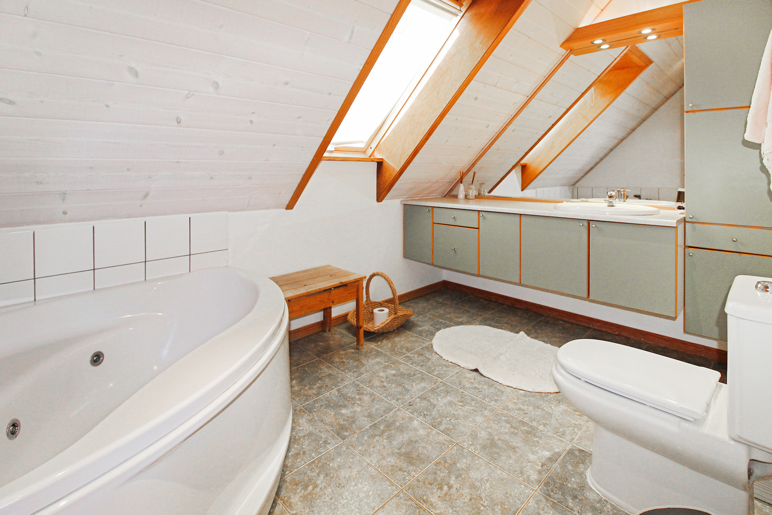 Furthermore you will find 2 bedrooms and a bathroom on this floor.