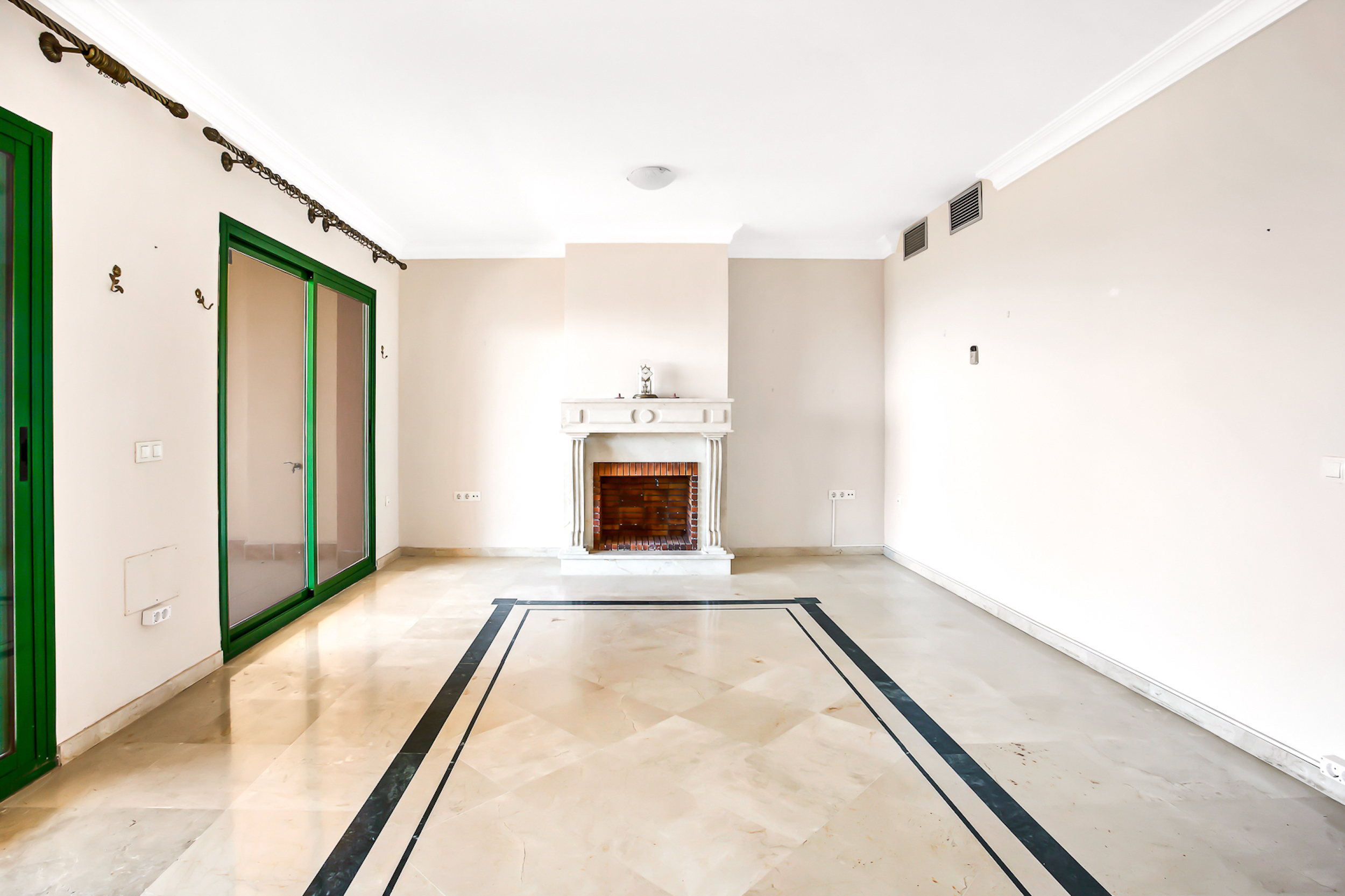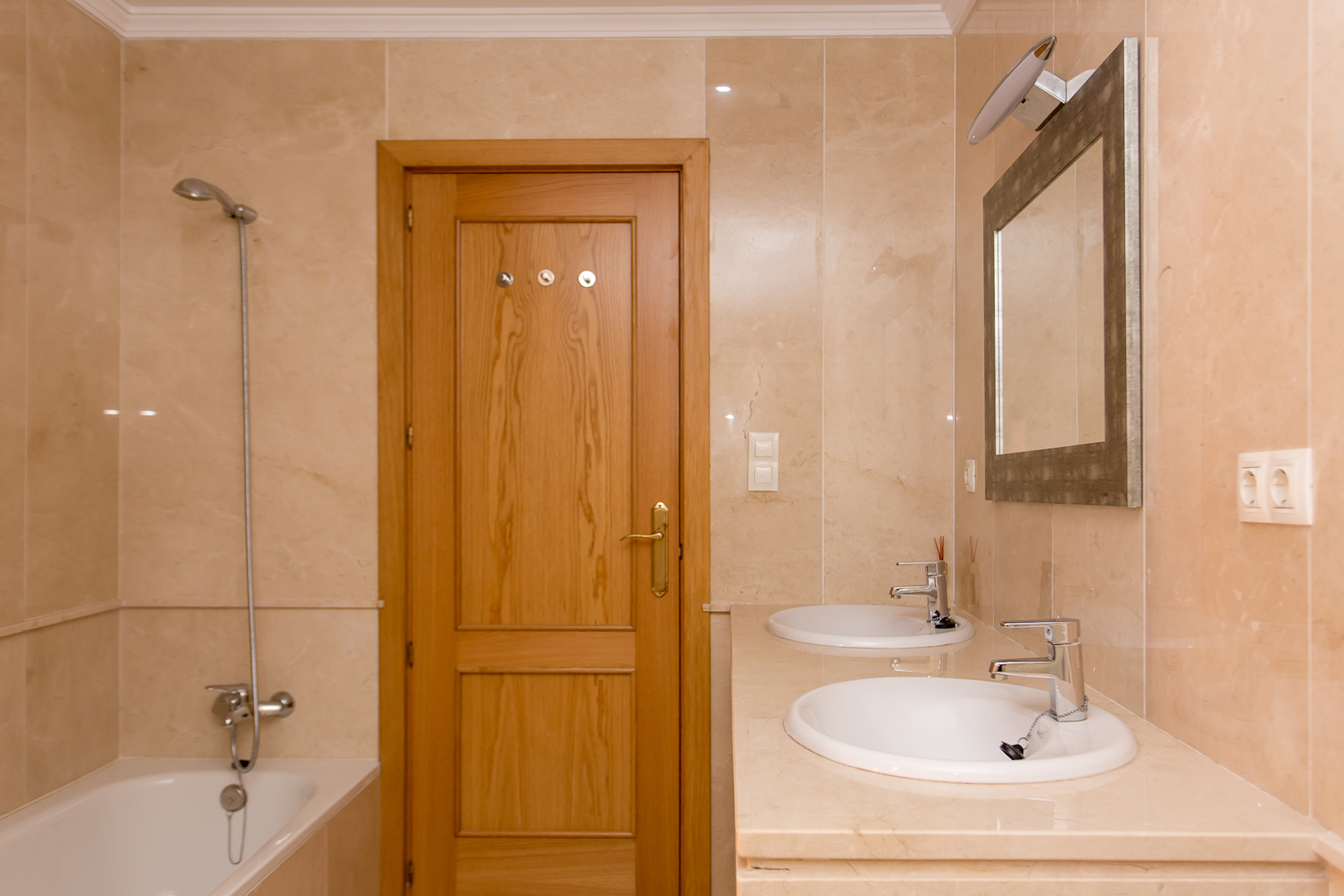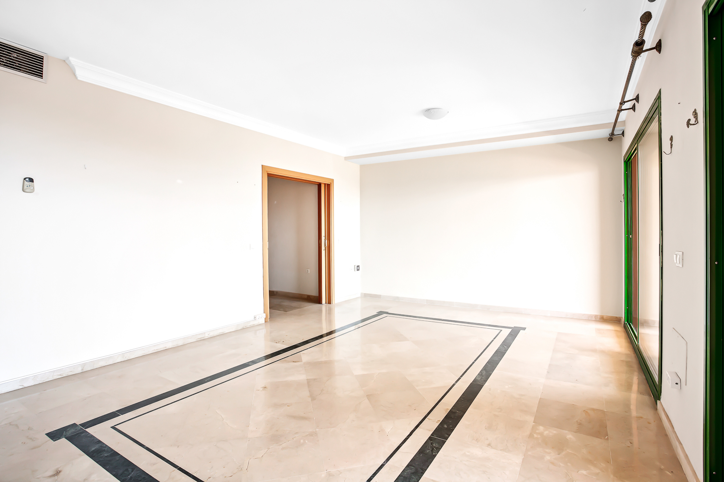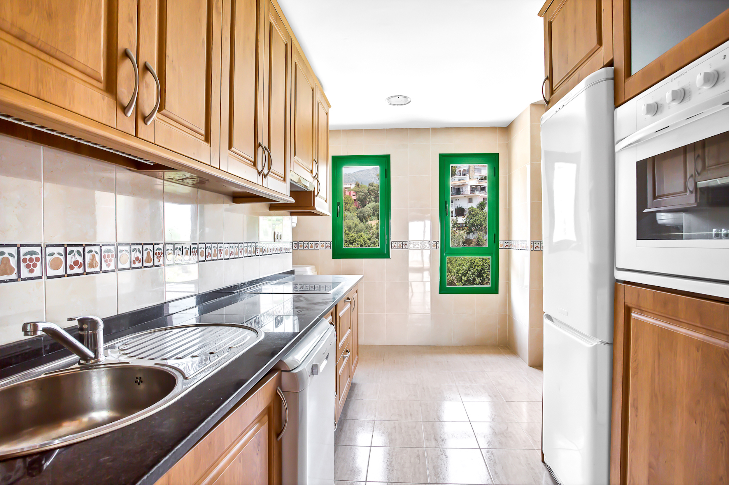 It is a very spacious apartment with 3 bedrooms and 2 bathrooms, individual kitchen, living room with a fireplace, huge terrace facing the garden and pool area as well as a wonderful sea view. All appliances are new.