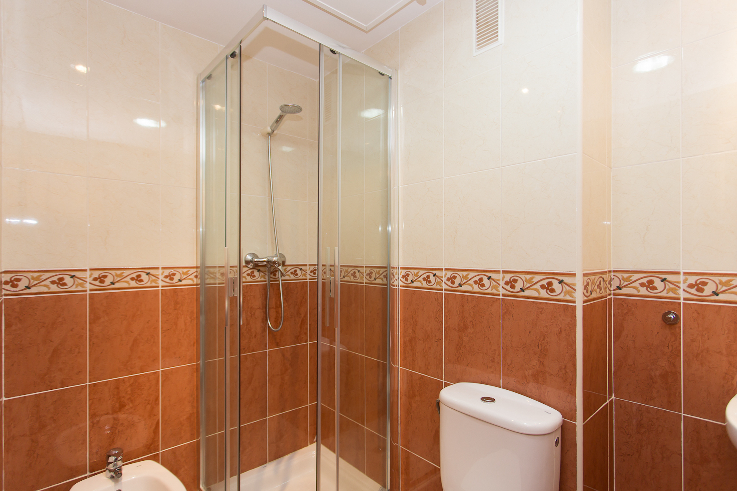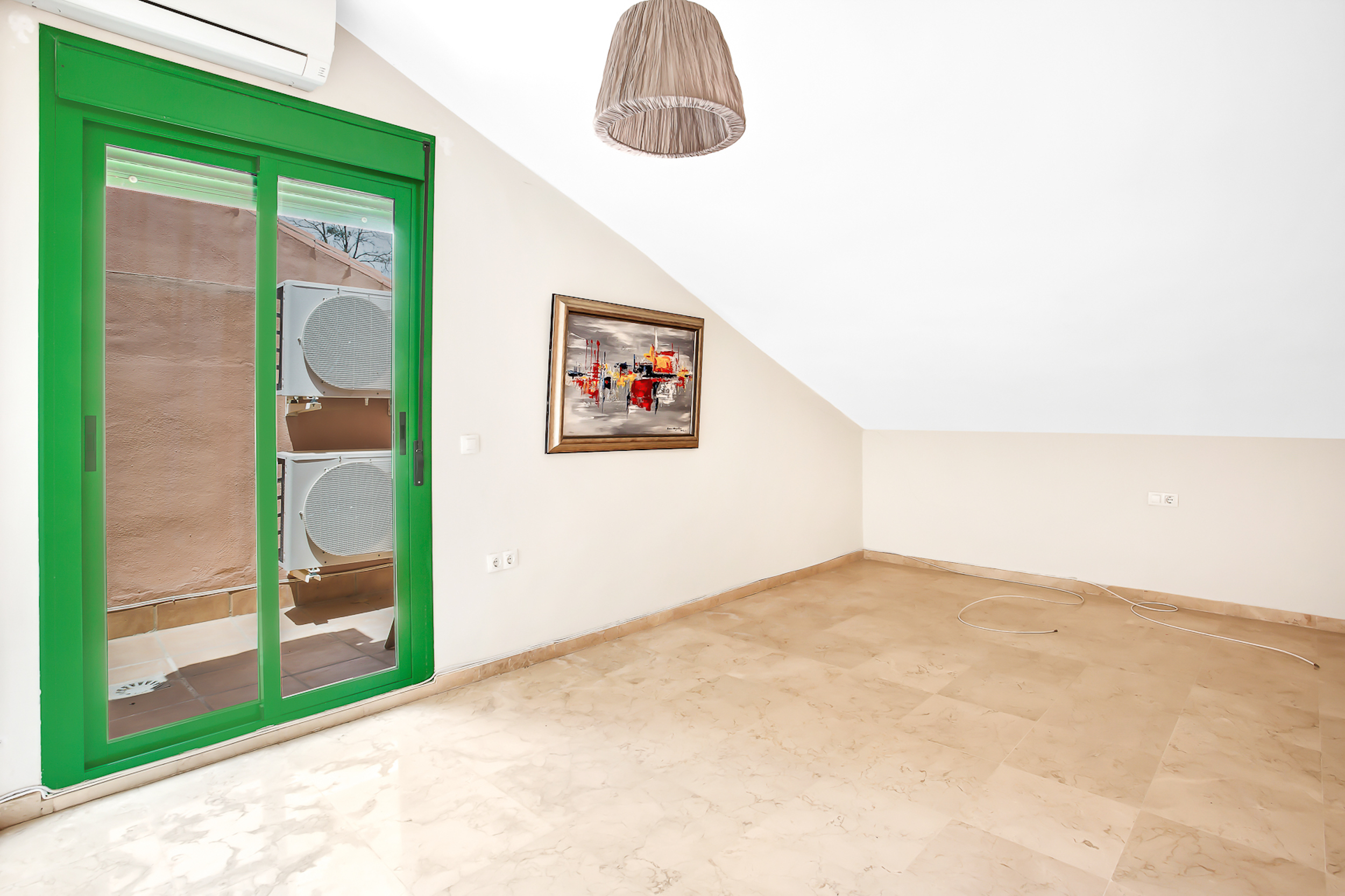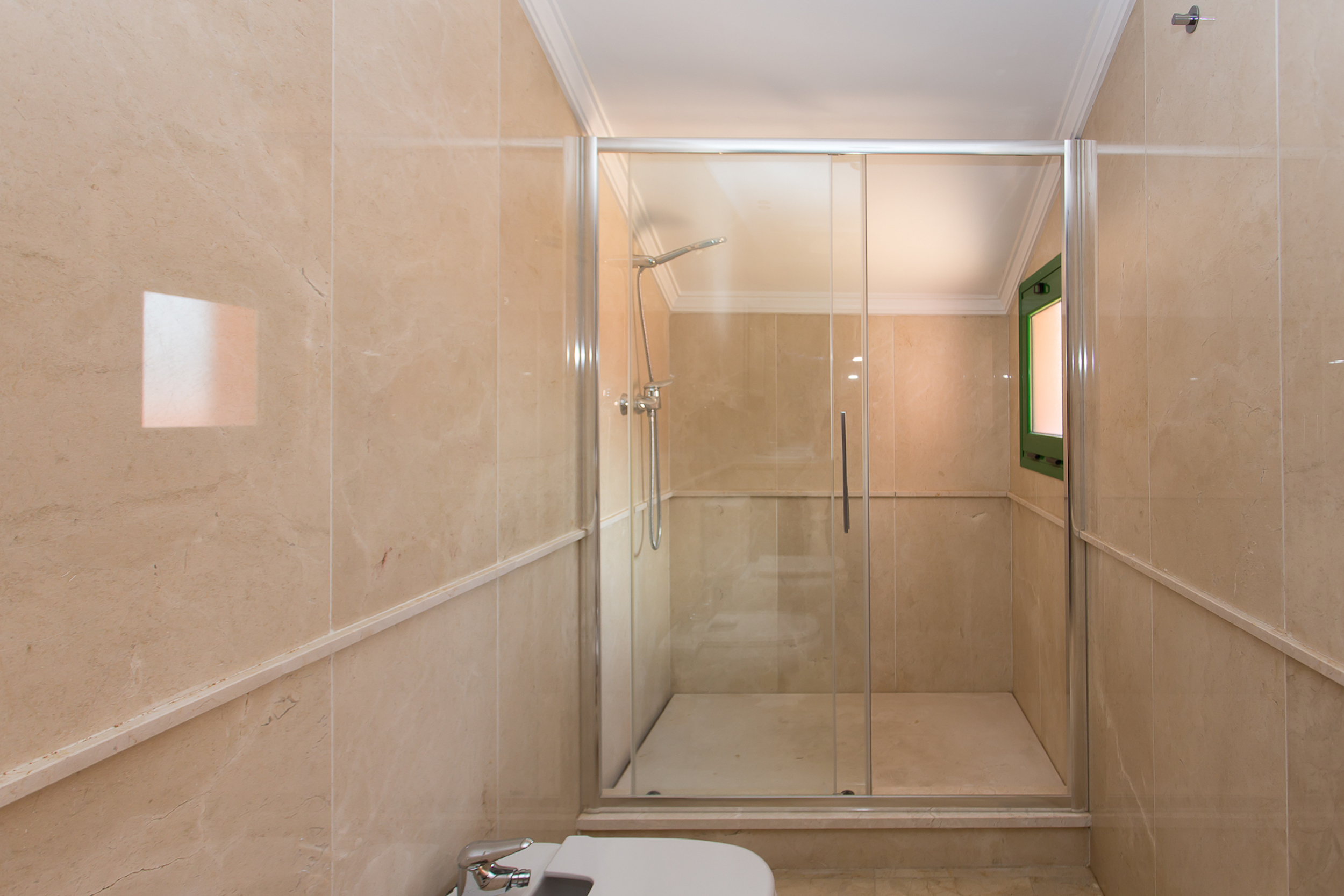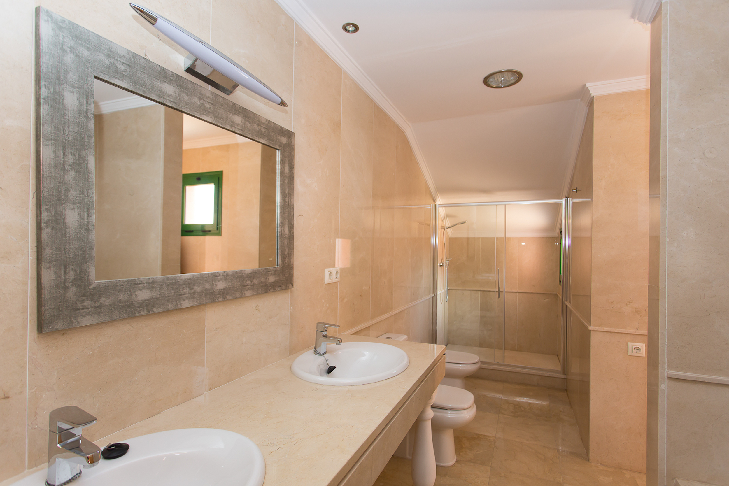 It is a very spacious apartment with 3 bedrooms and 2 bathrooms, individual kitchen, living room with a fireplace, huge terrace facing the garden and pool area as well as a wonderful sea view. All appliances are new.