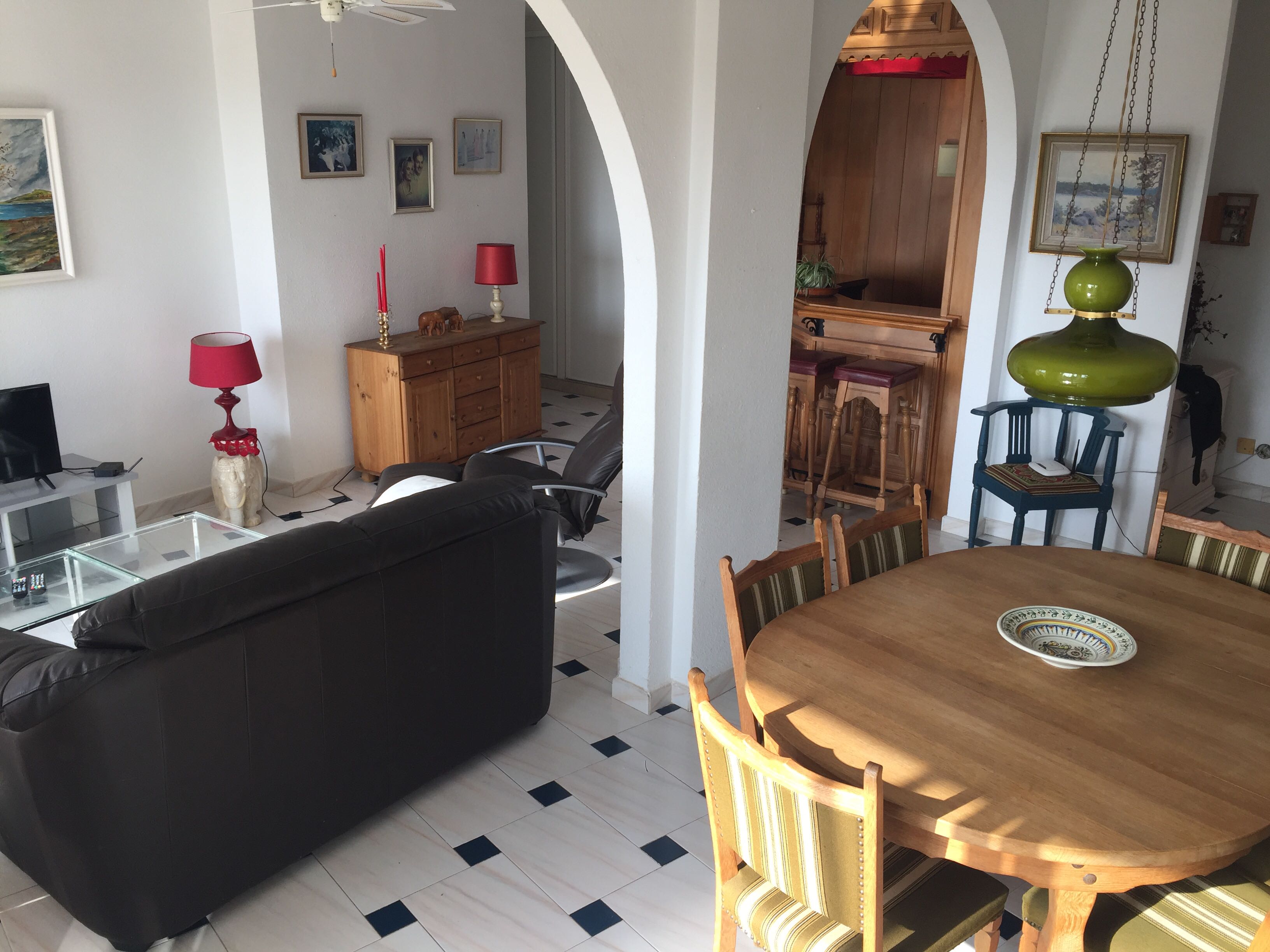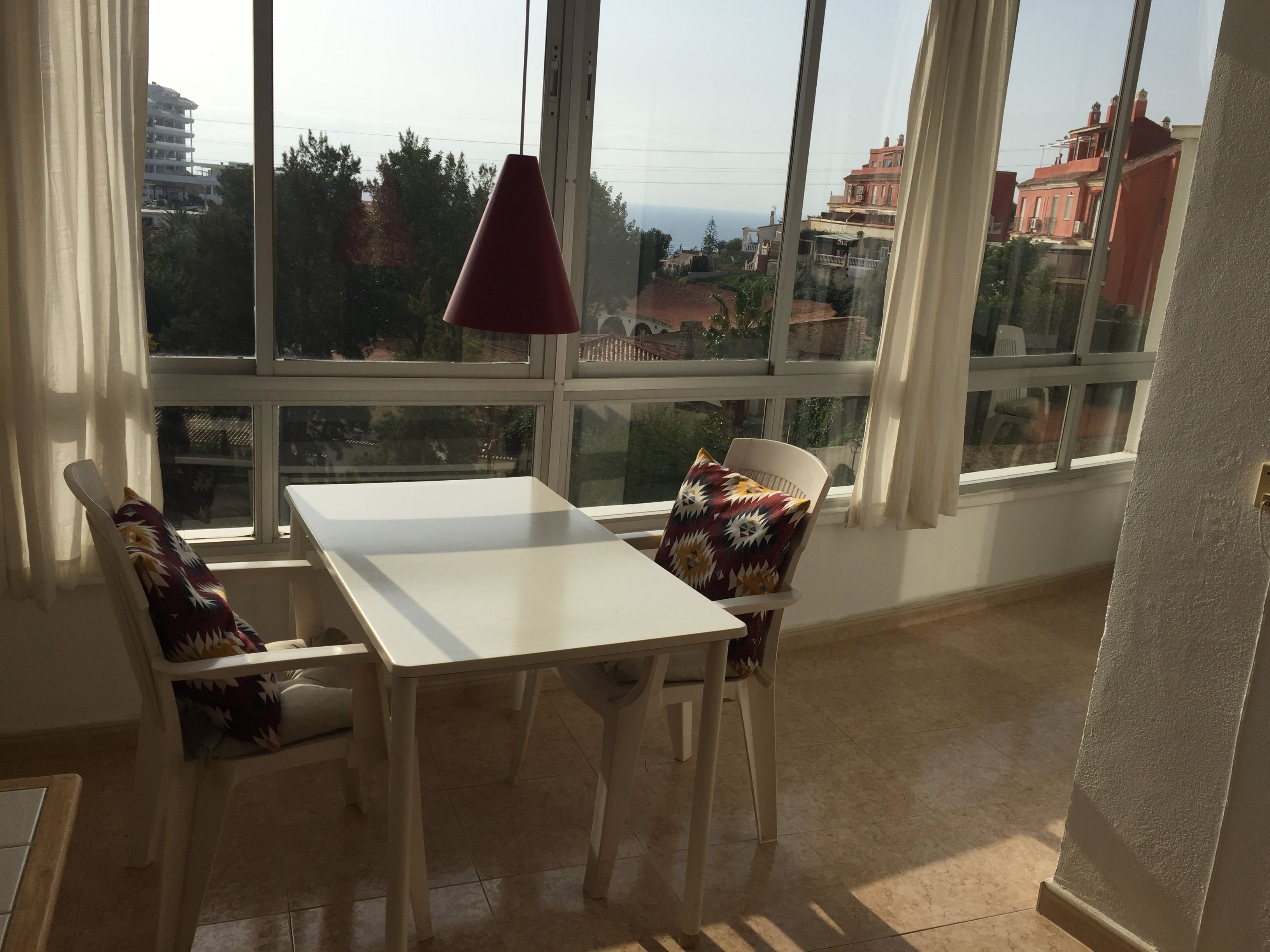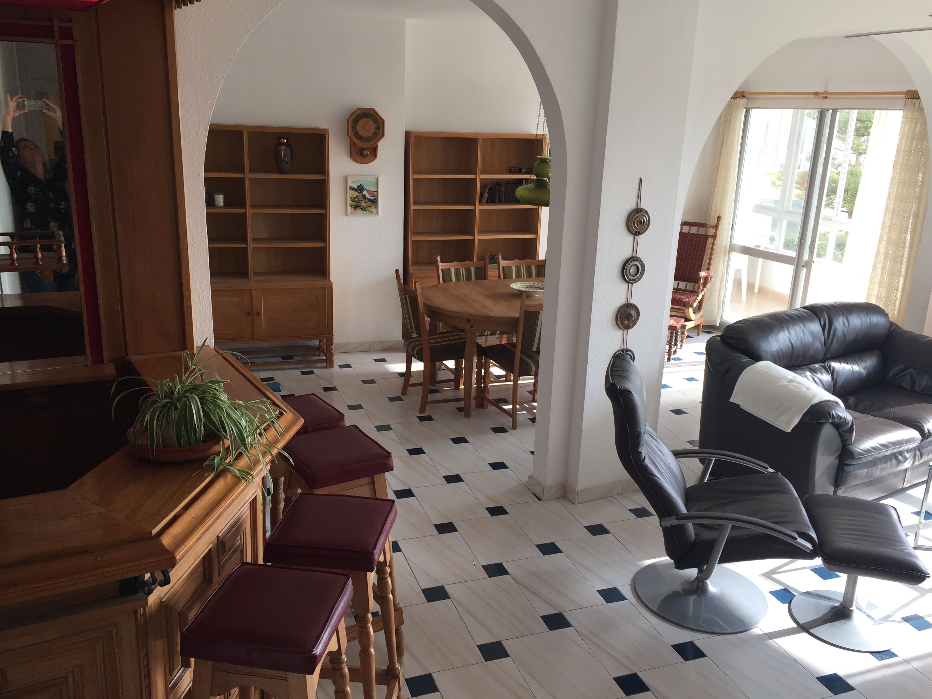 Big 2 bedroom apartment in Torreblanca now for sale with lovely panoramic sea view and views over Fuengirola town.