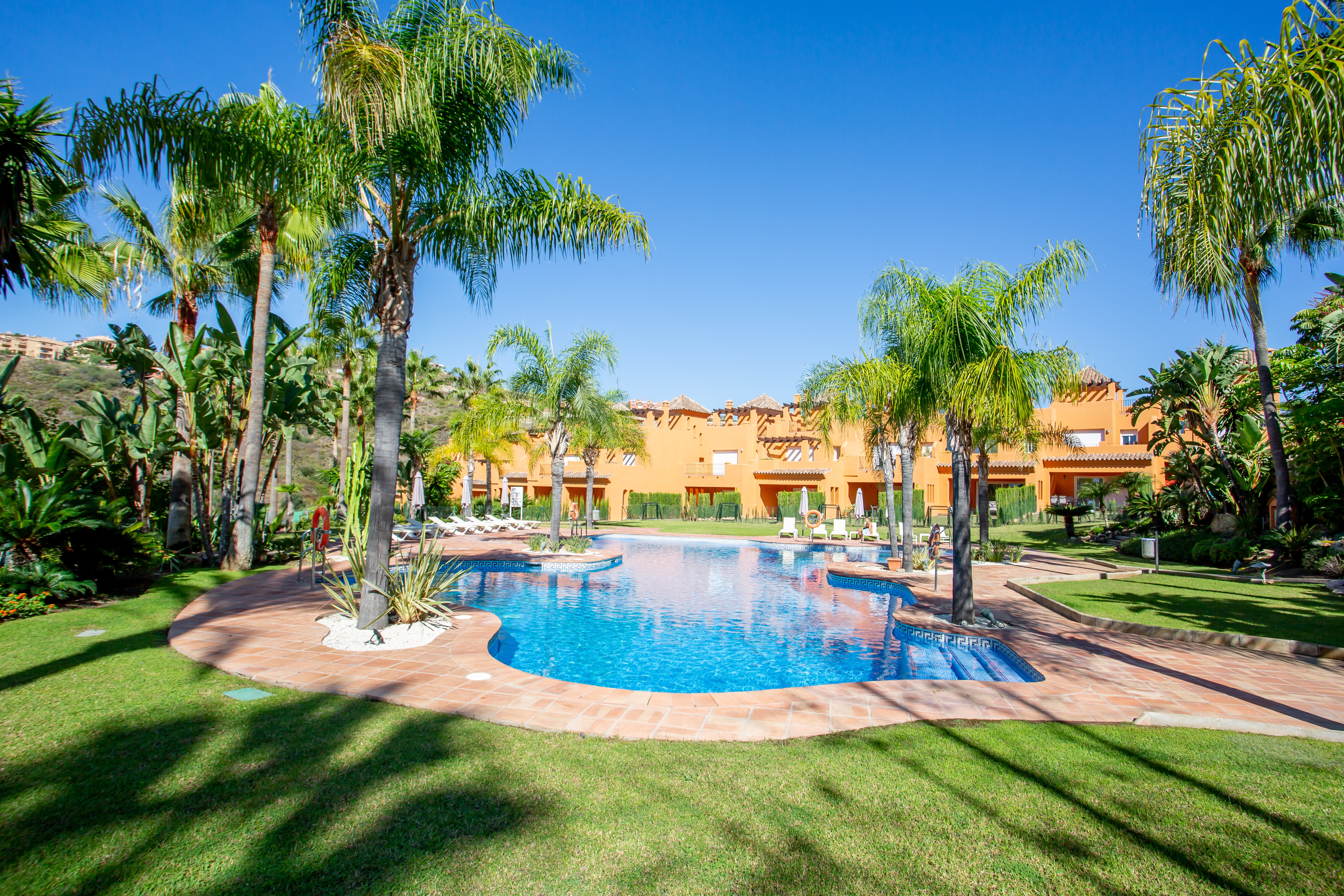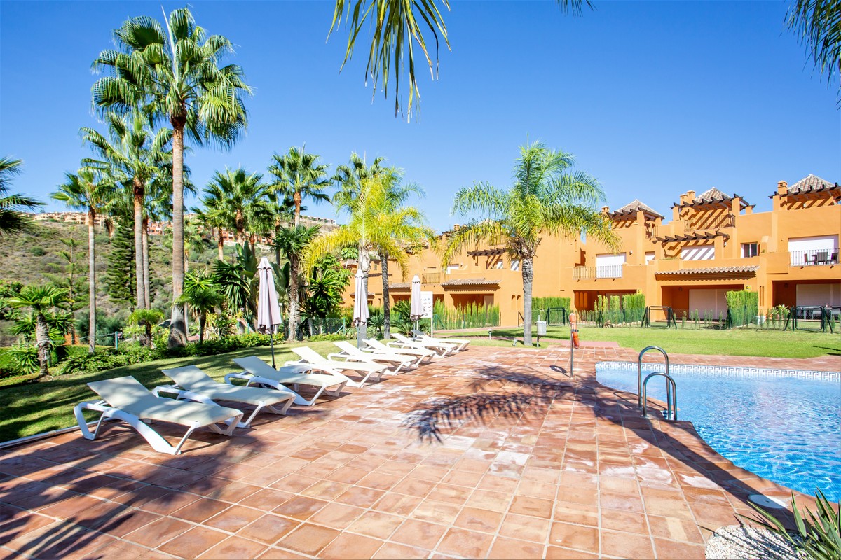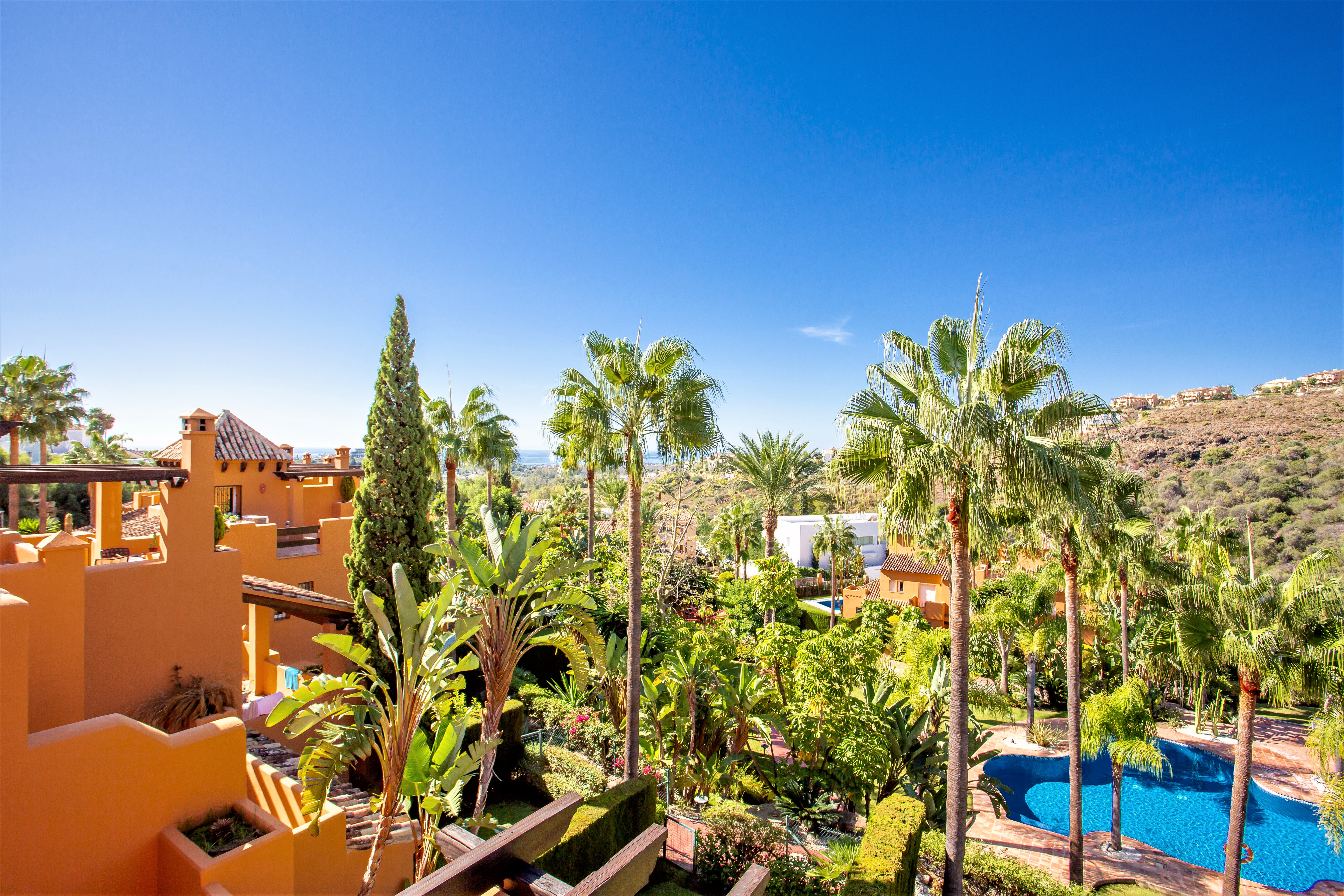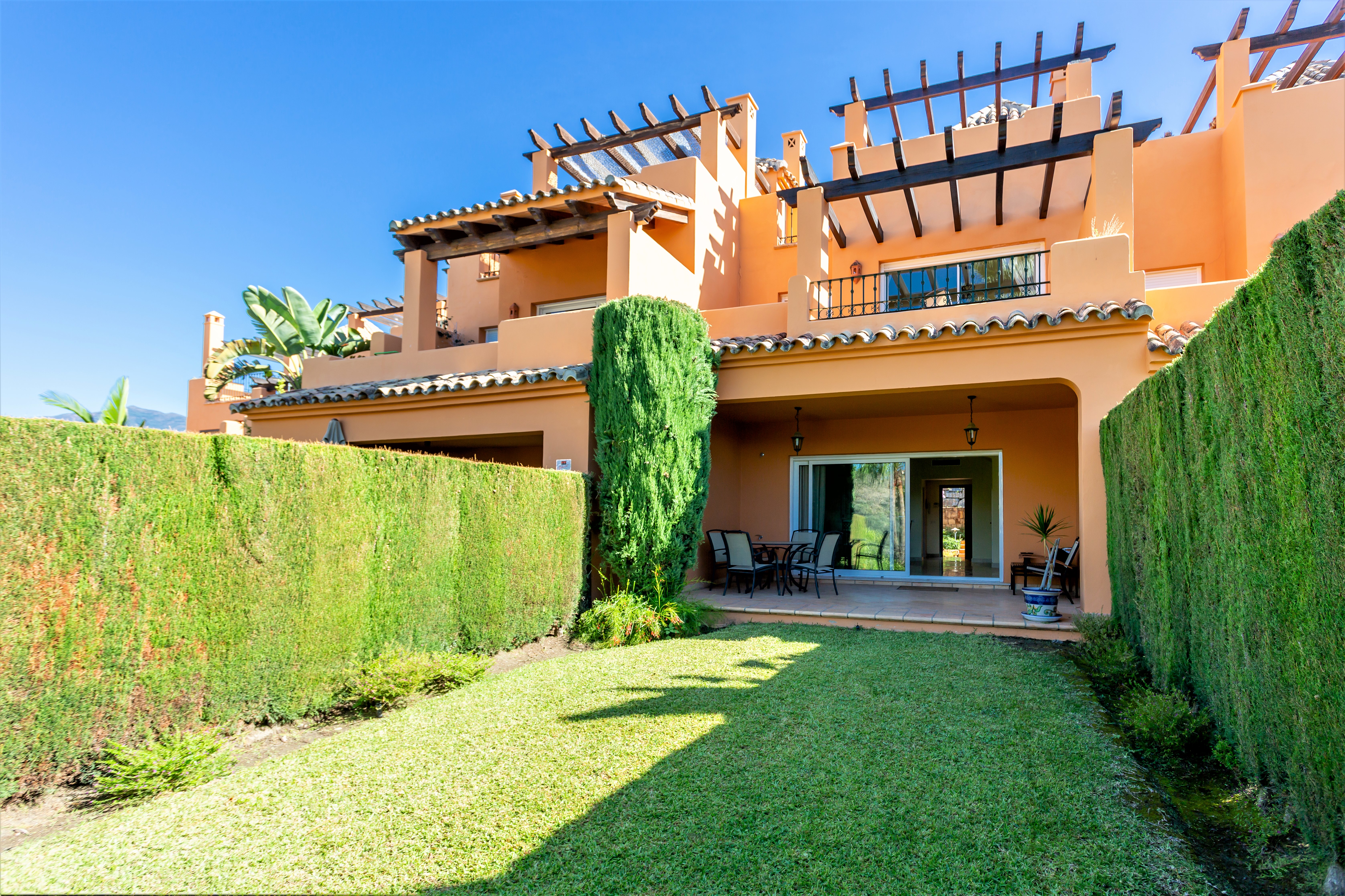 Spacious 3 bedroom , 2,5 bathroom townhouse with panoramic sea views for sale in Benahavis, The townhouse is located close to 4 golf clubs- El Paraiso Golf Club, Flamingos Golf Club, El Campanario Golf Club, Villa Padierna Golf Club and 900m to the beach.