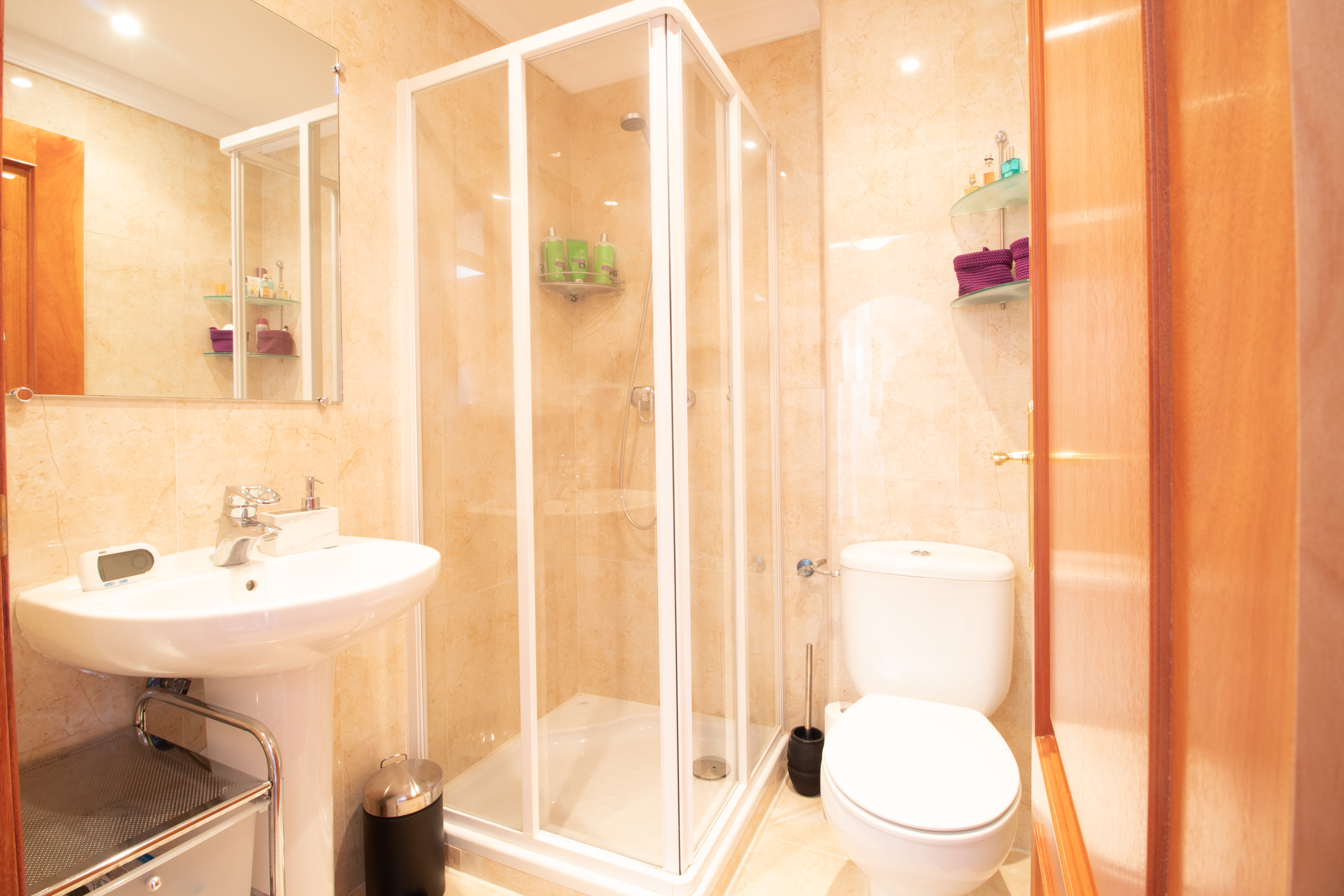 With the two bedrooms you have two bathrooms, where the master is ensuite and with access to the terrace as well.