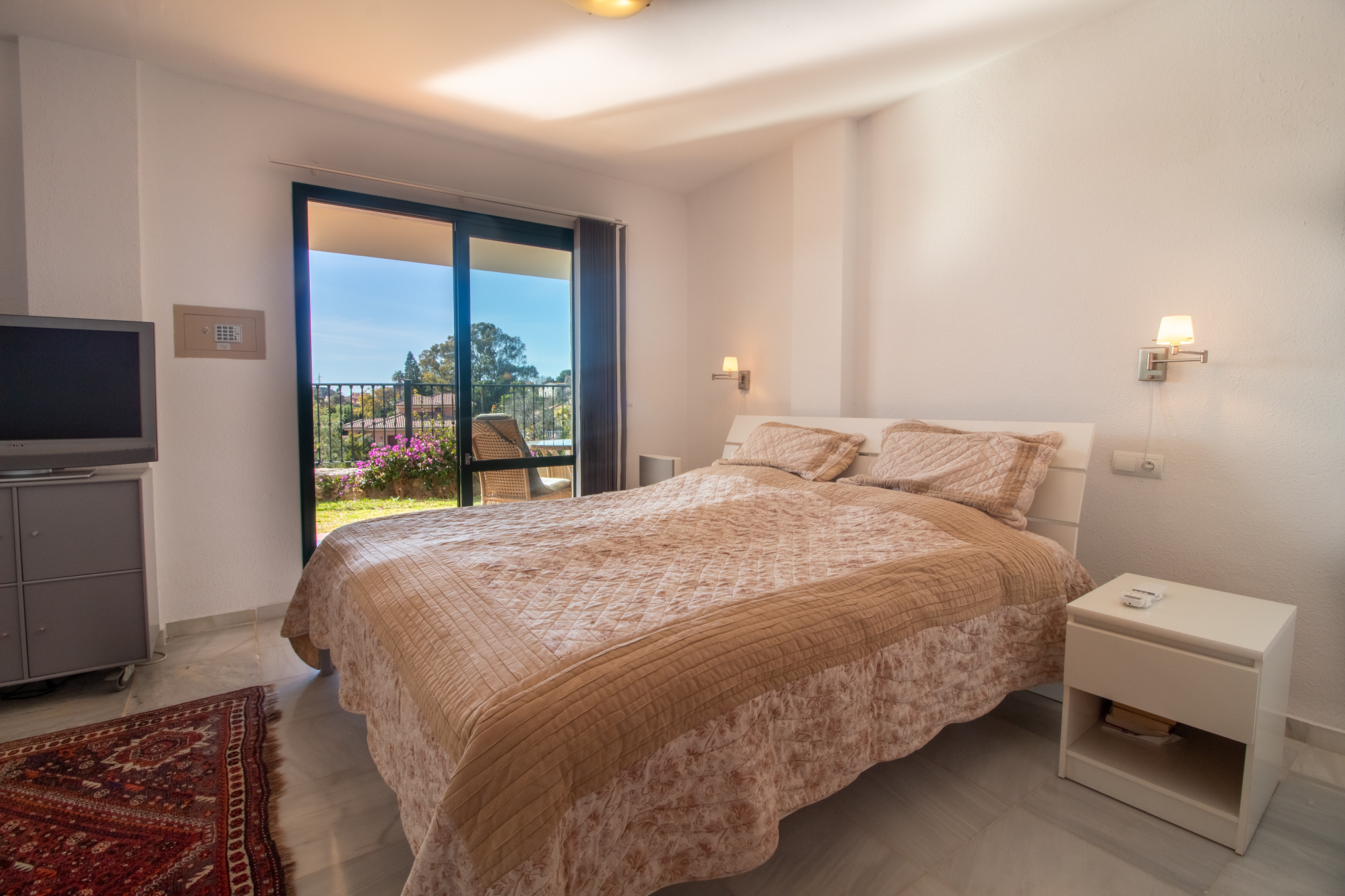 The huge master bedroom has direct acces to the garden and terrace.