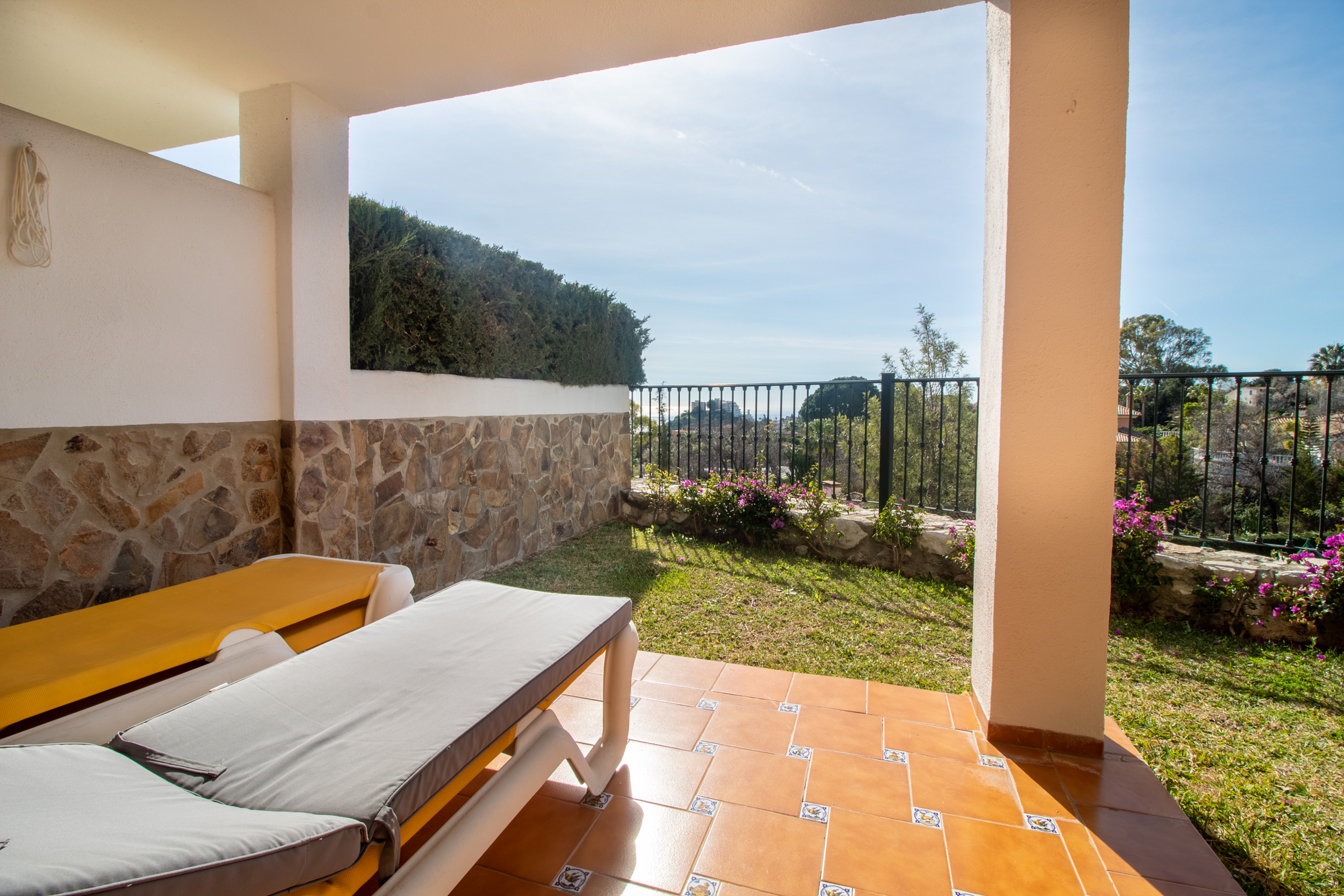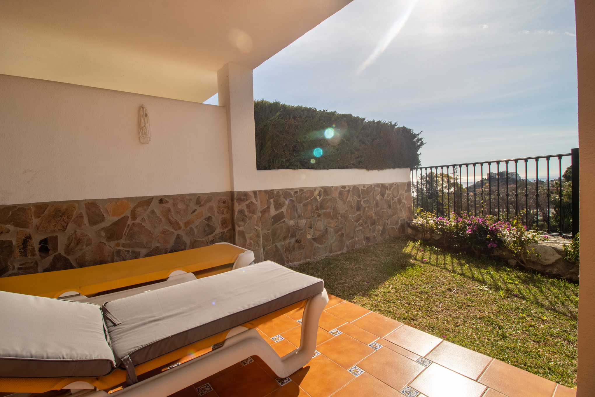 You have direct acces from the livingroom on to the south facing terrace, here you will be able to enjoy a lovely view over the coast and sea.