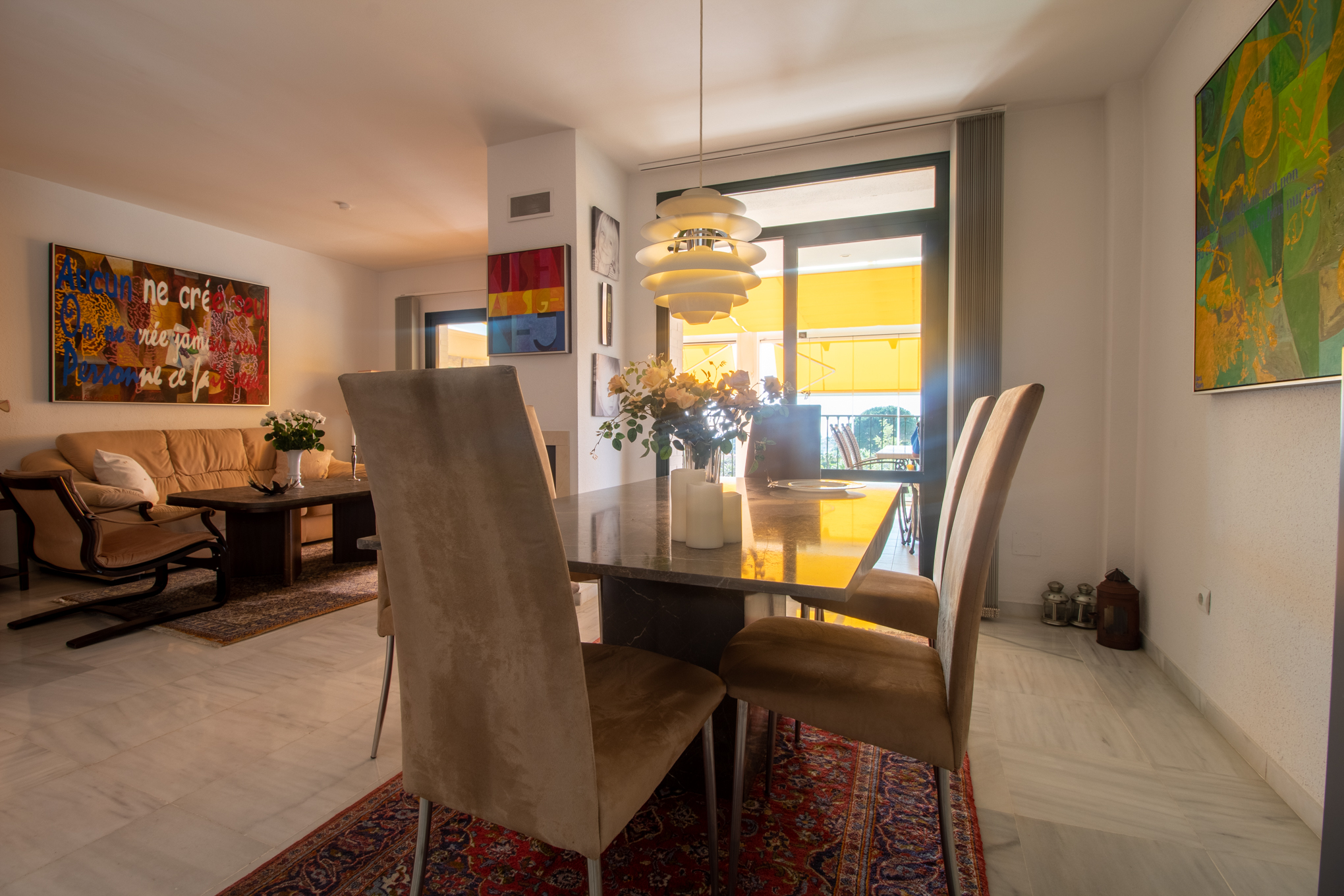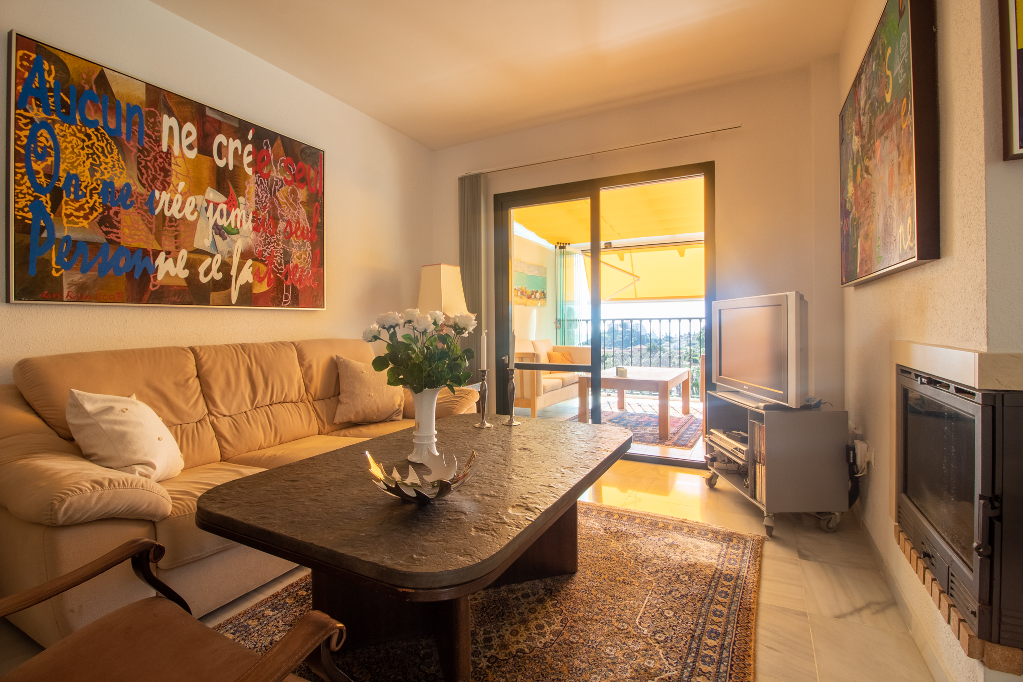 The current owner has glassed the terrace in to be able to extend the summers and have an extra living room. And for the summer you open these right up.