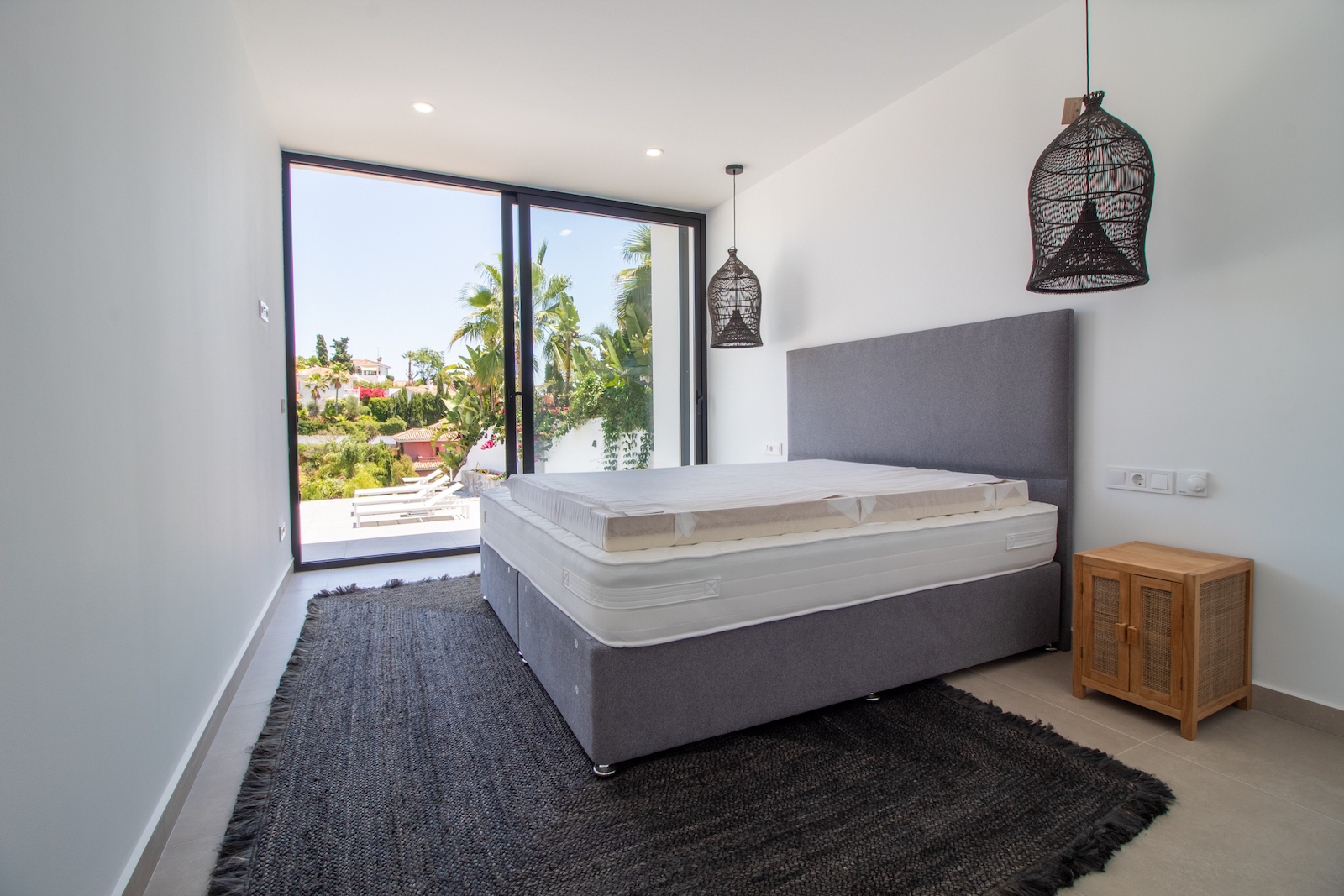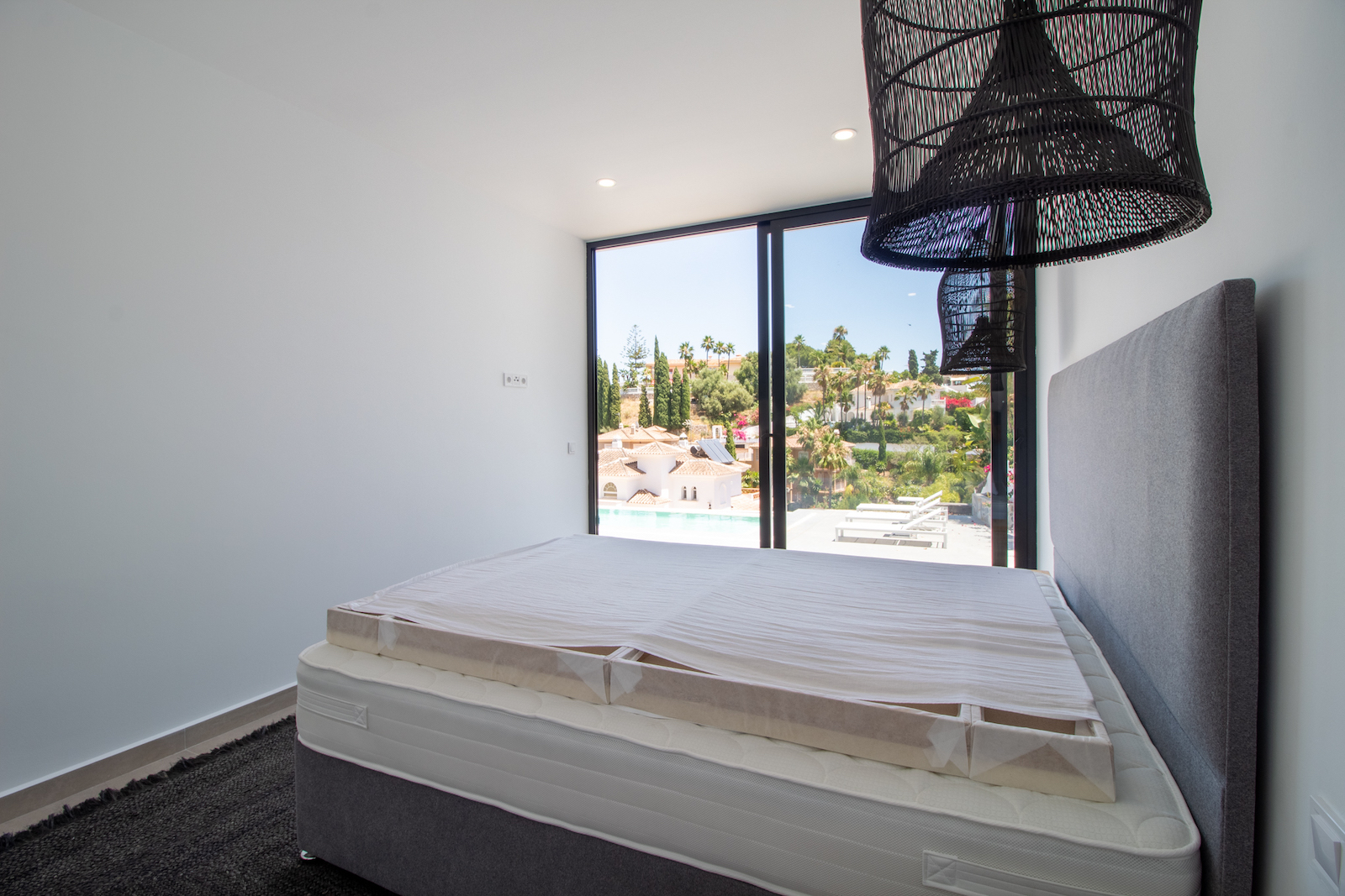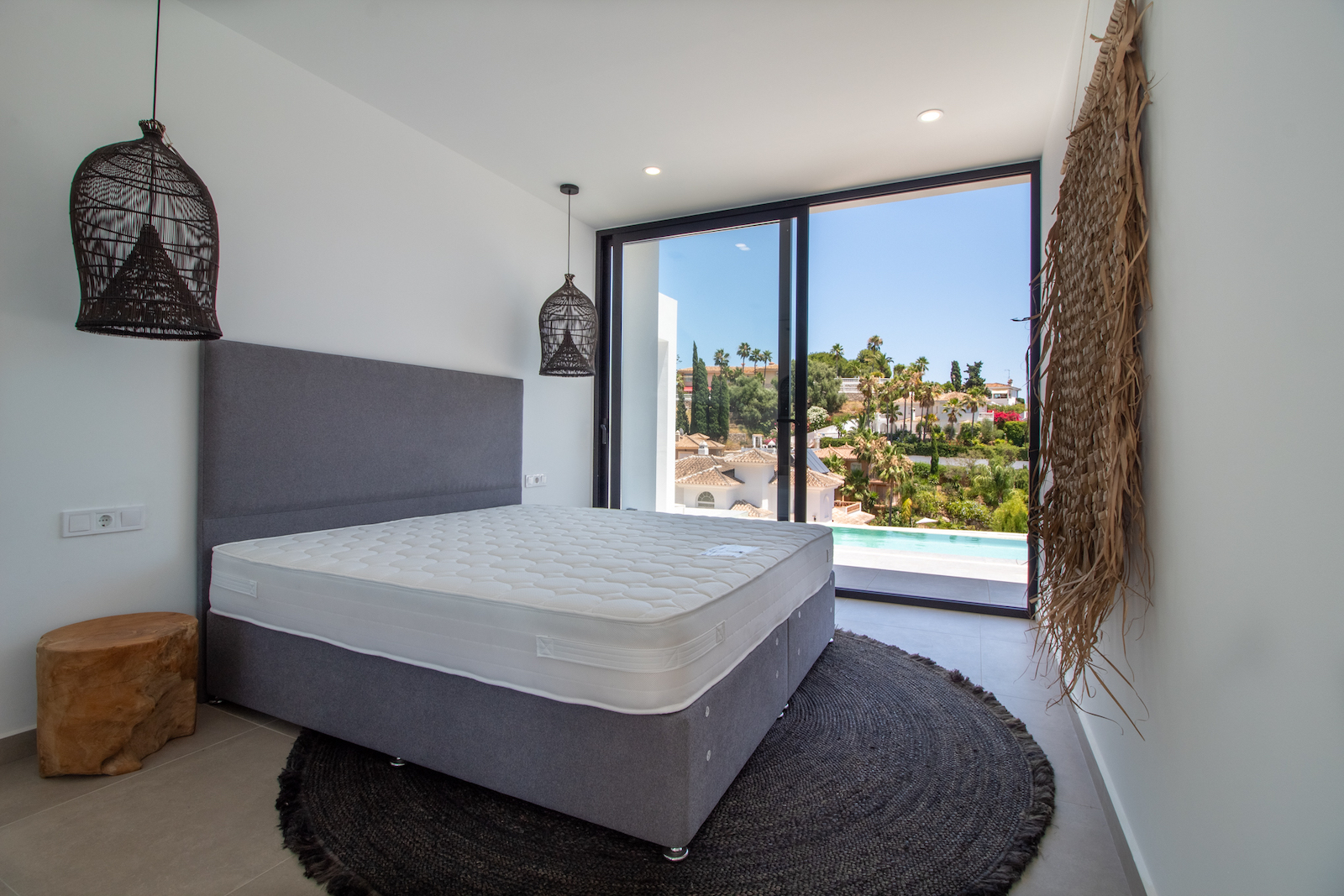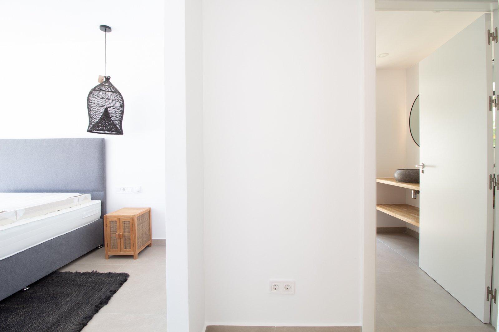 3 of the bedrooms has beautiful views to the pool and the area with double sliding doors to a small terrace, where you can also put in step, so you can walk straight out to the pool for a morning dip. 2 bedrooms share one bathroom and the last bedroom has it own bathroom as well. All of them is built in the same style, quality and with direct access to a terrace.