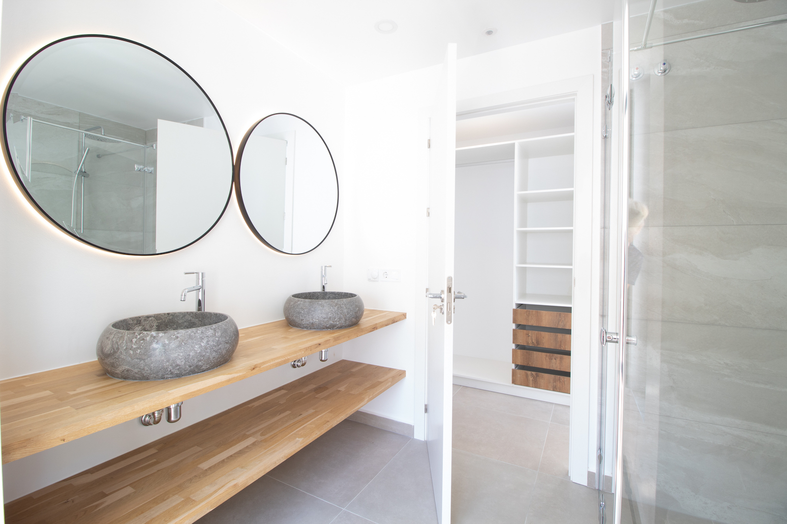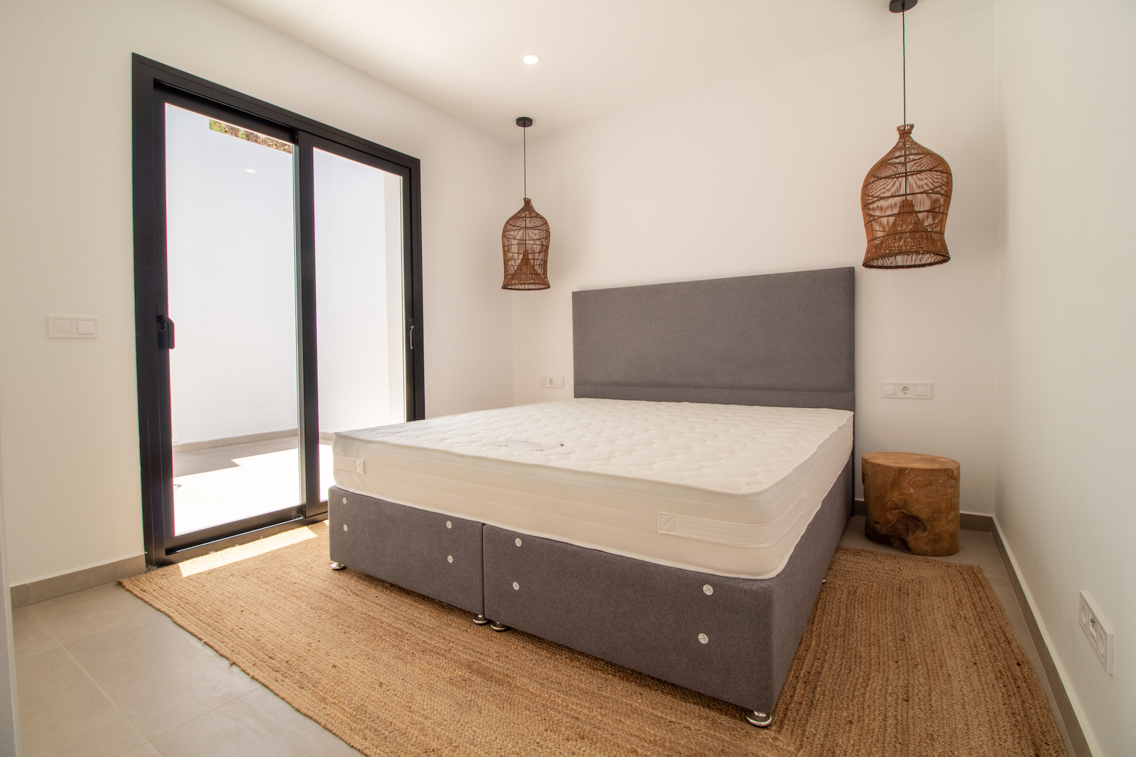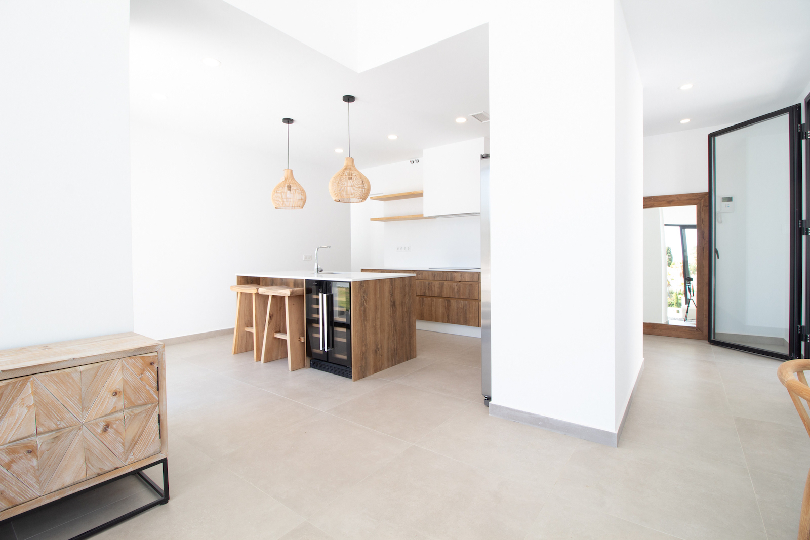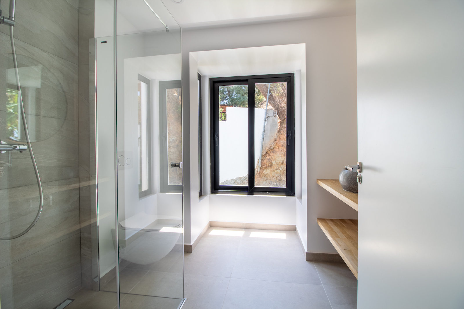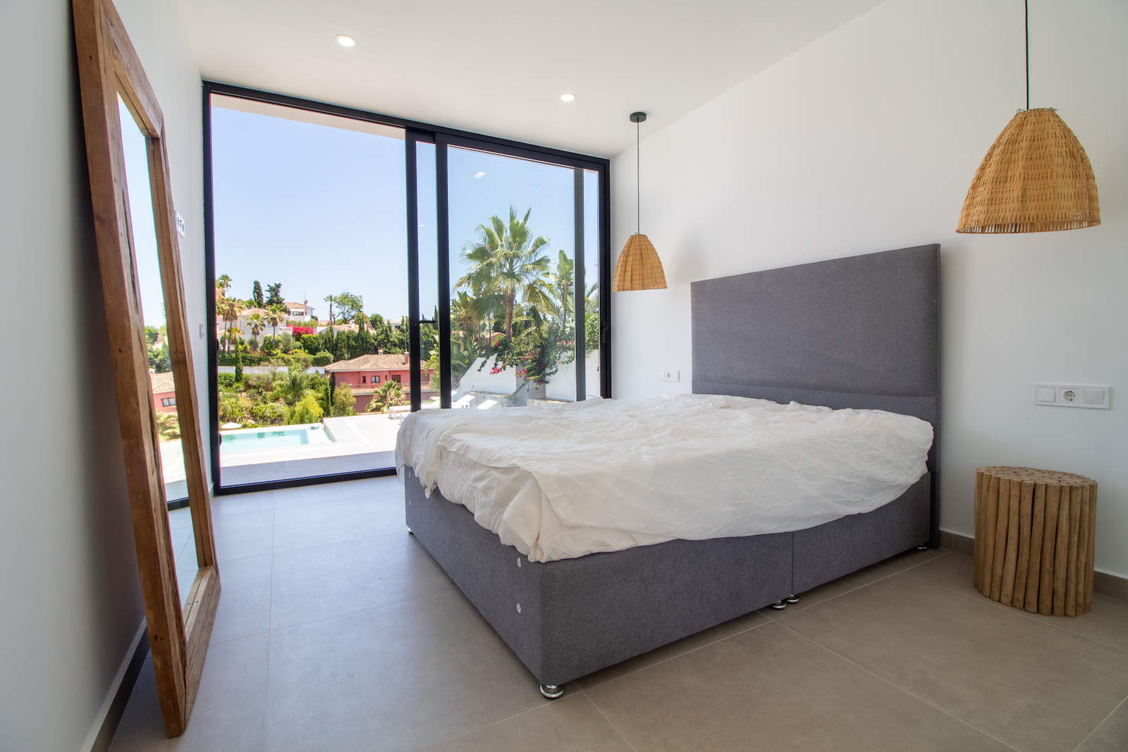 3 of the bedrooms has beautiful views to the pool and the area with double sliding doors to a small terrace, where you can also put in step, so you can walk straight out to the pool for a morning dip. 2 bedrooms share one bathroom and the last bedroom has it own bathroom as well. All of them is built in the same style, quality and with direct access to a terrace.