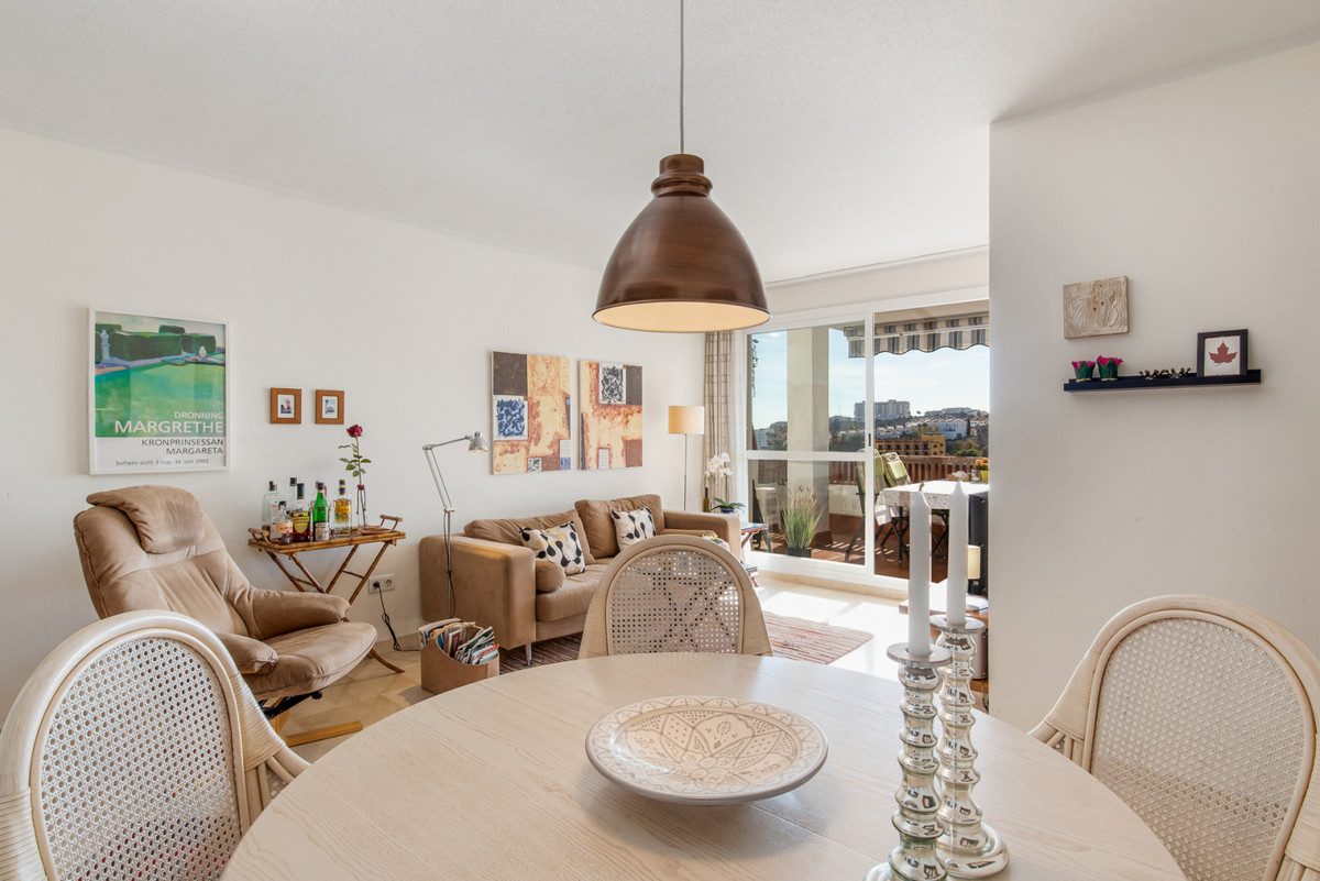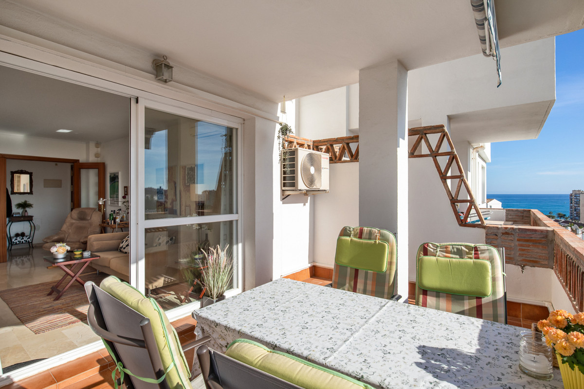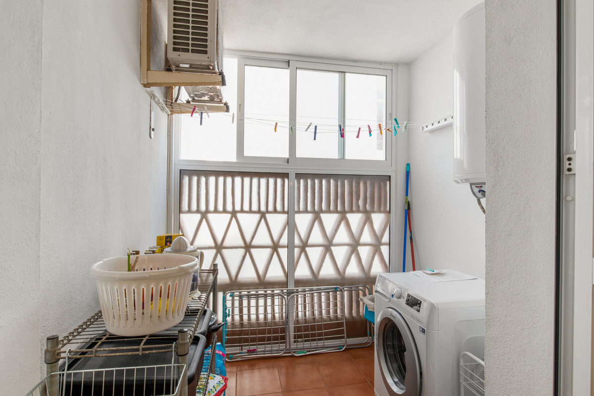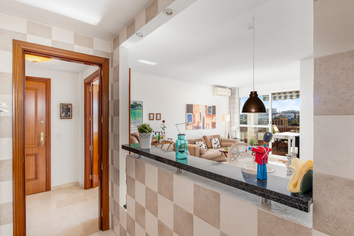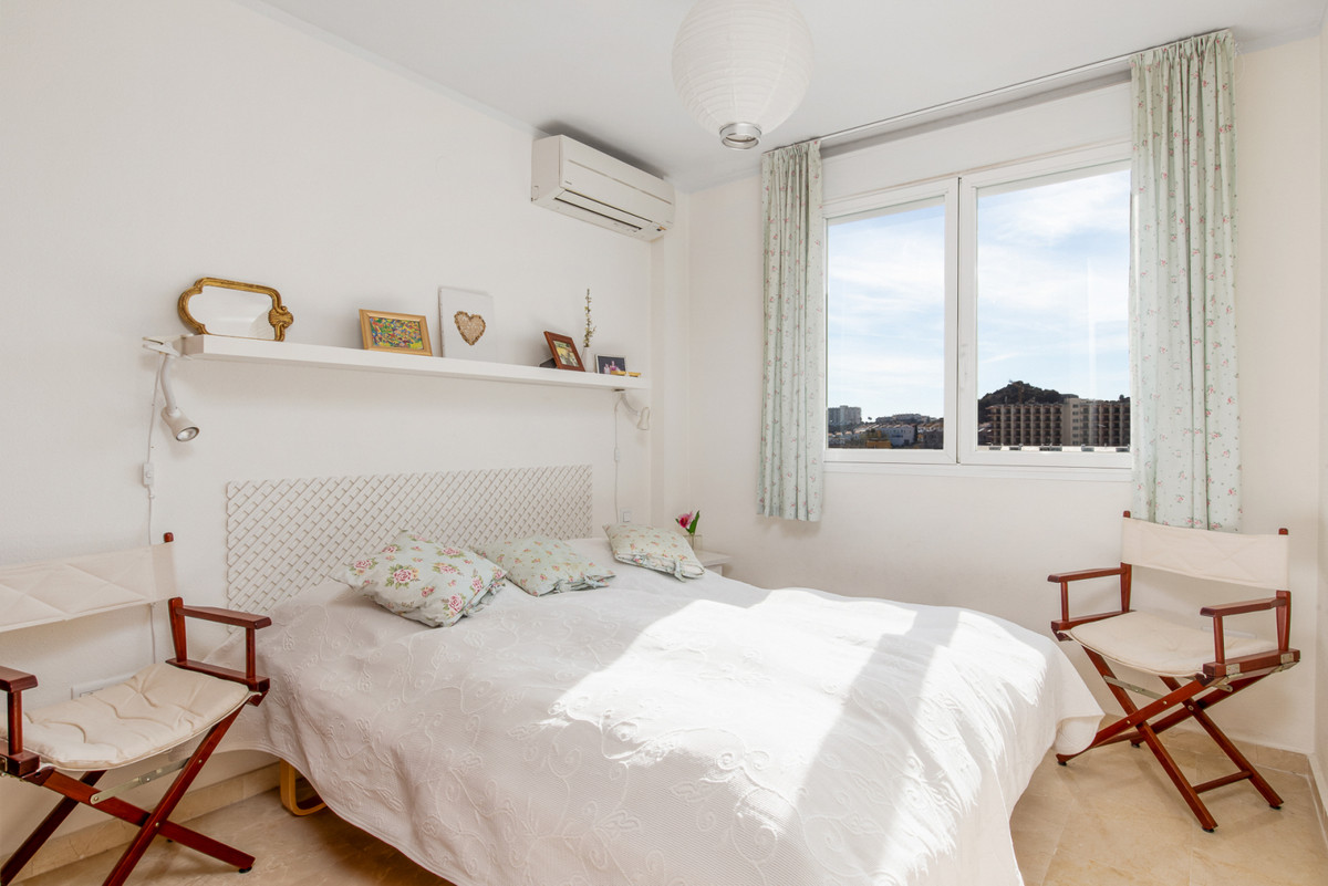 In Benalmádena Costa you will find this beautiful southwest facing apartment where you can enjoy the magnificent views of the Mediterranean Sea and the mountains. In the apartment you have 3 bedrooms and 2 bathrooms - the master bedroom is ensuite. Spacious and fully equipped partially open kitchen with plenty of table space. From the entrance you enter the spacious bright living room, where you have direct access to the sunny terrace. The home is sold fully furnished and is equipped with washing machine located in separate room, cold / hot airconditioning, fitted wardrobes in bedrooms. With the home you get a private parking space and a large storage room. The building has an elevator. The apartment is located in a private enclosed complex with large swimming pool and very well maintained communal garden. Only a few minutes walk from the apartment you find the beach, restaurants and bars as well as shopping opportunities. You arrive at the apartment after just 15 min. drive from the airport. Great opportunity to buy a nice holiday home, which can be enjoyed all year round.