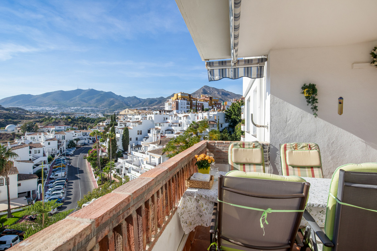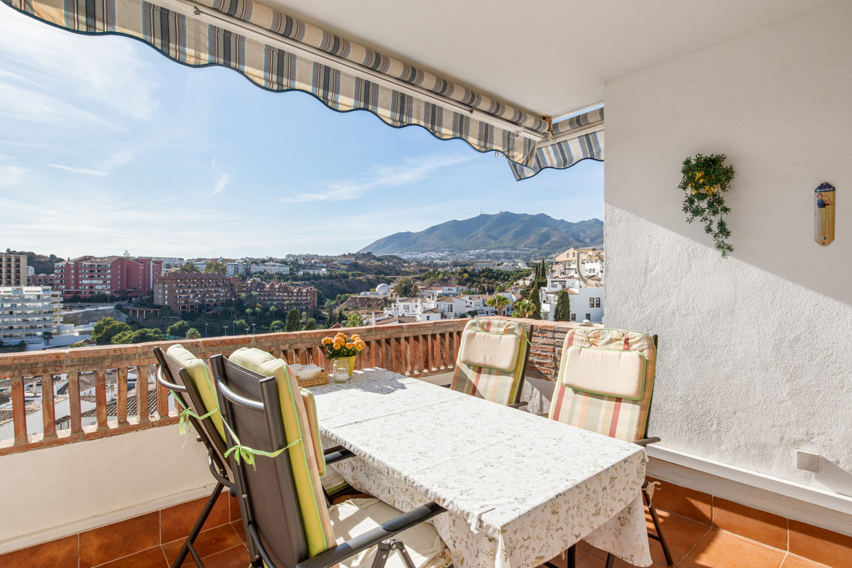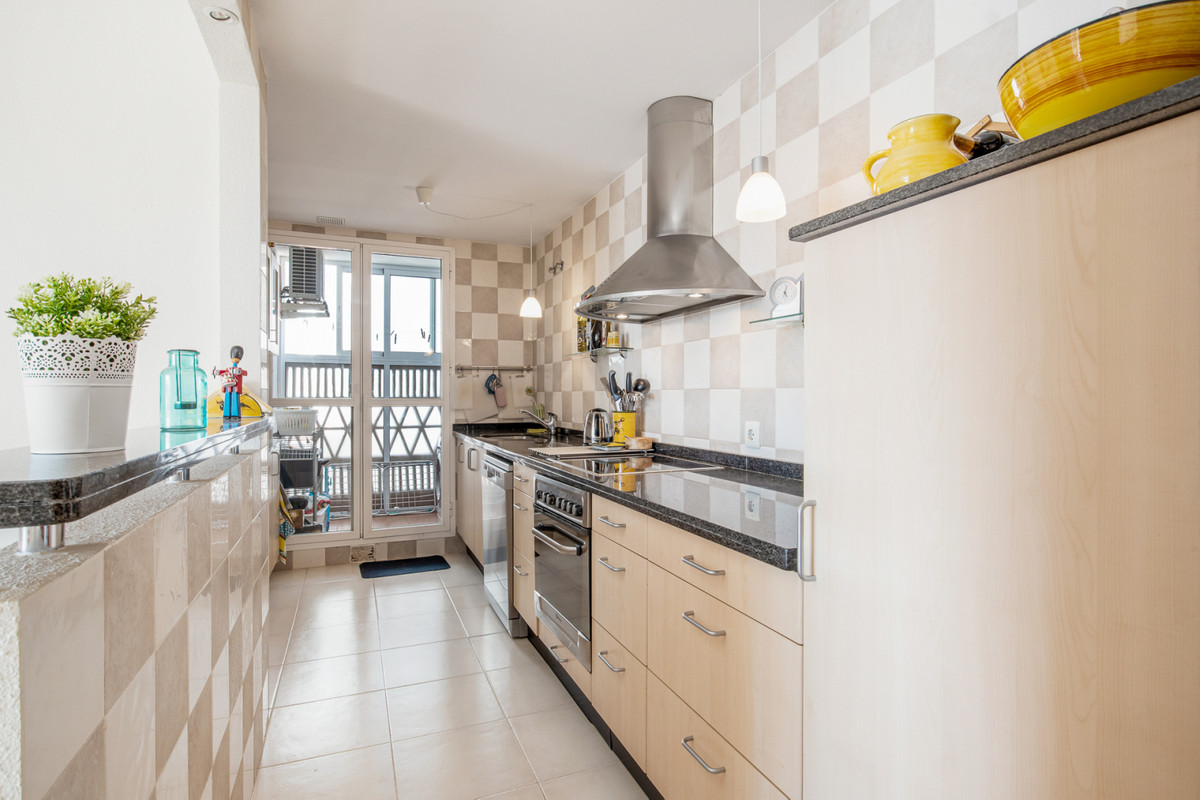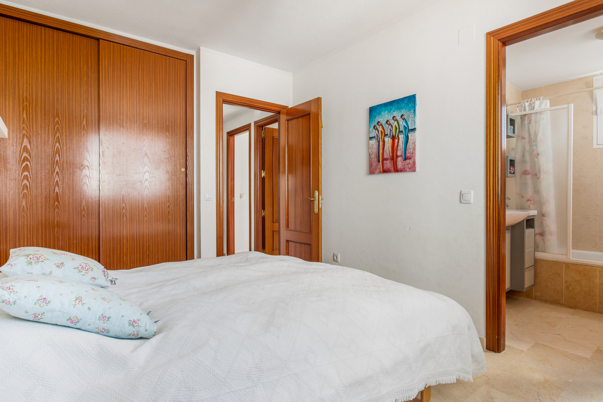 In Benalmádena Costa you will find this beautiful southwest facing apartment where you can enjoy the magnificent views of the Mediterranean Sea and the mountains. In the apartment you have 3 bedrooms and 2 bathrooms - the master bedroom is ensuite. Spacious and fully equipped partially open kitchen with plenty of table space. From the entrance you enter the spacious bright living room, where you have direct access to the sunny terrace. The home is sold fully furnished and is equipped with washing machine located in separate room, cold / hot airconditioning, fitted wardrobes in bedrooms. With the home you get a private parking space and a large storage room. The building has an elevator. The apartment is located in a private enclosed complex with large swimming pool and very well maintained communal garden. Only a few minutes walk from the apartment you find the beach, restaurants and bars as well as shopping opportunities. You arrive at the apartment after just 15 min. drive from the airport. Great opportunity to buy a nice holiday home, which can be enjoyed all year round.