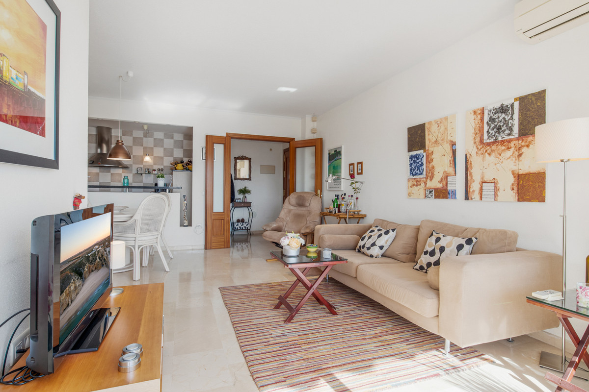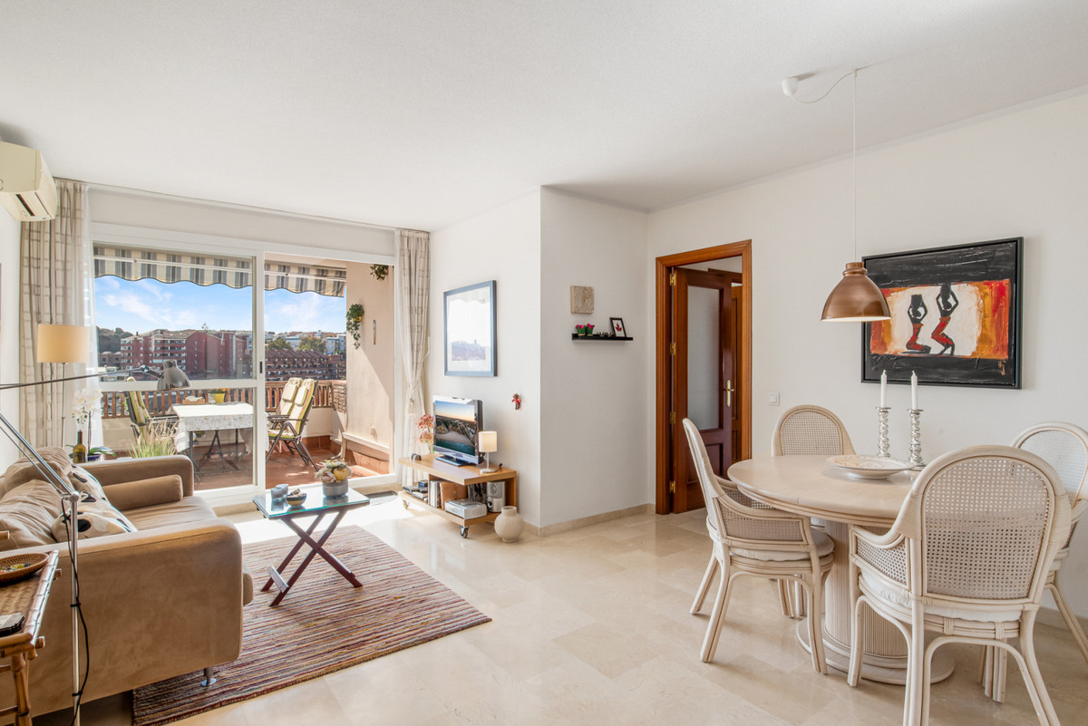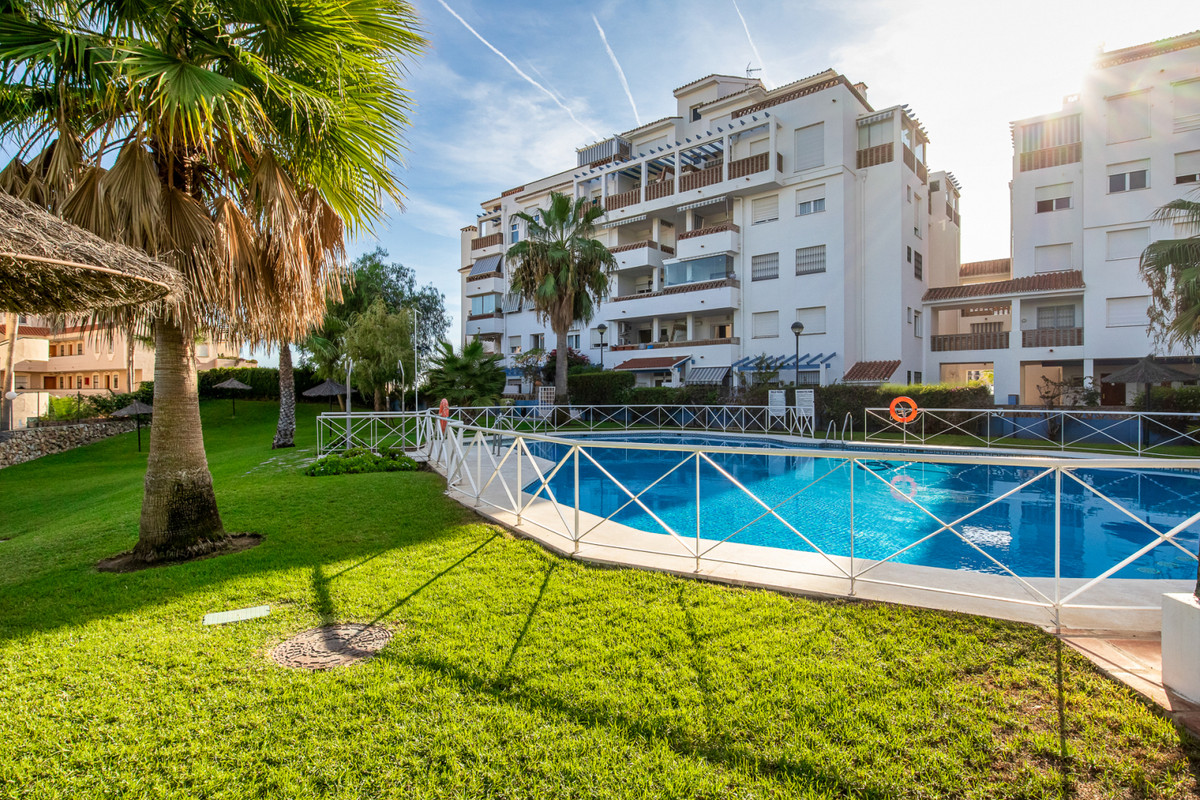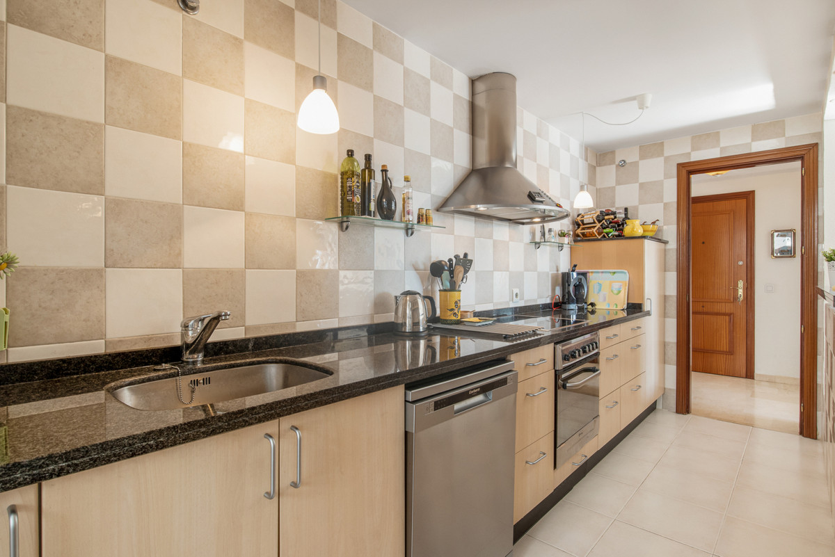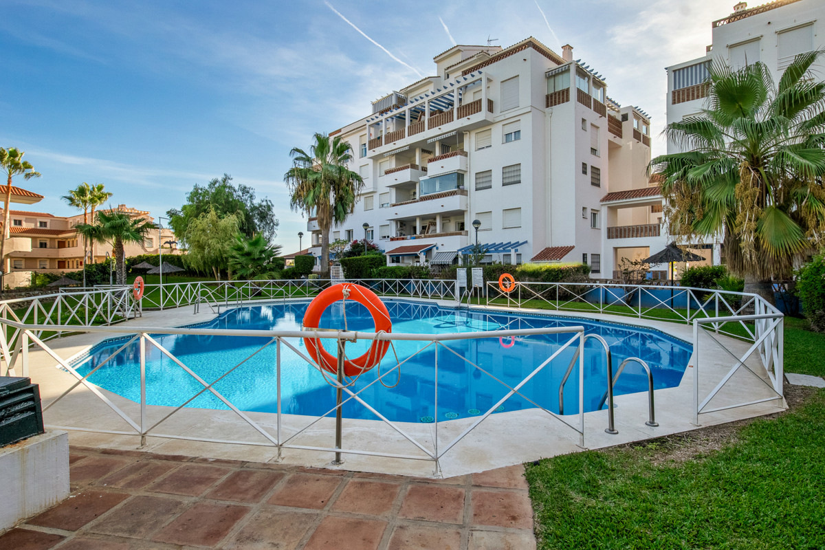 In Benalmádena Costa you will find this beautiful southwest facing apartment where you can enjoy the magnificent views of the Mediterranean Sea and the mountains. In the apartment you have 3 bedrooms and 2 bathrooms - the master bedroom is ensuite. Spacious and fully equipped partially open kitchen with plenty of table space. From the entrance you enter the spacious bright living room, where you have direct access to the sunny terrace. The home is sold fully furnished and is equipped with washing machine located in separate room, cold / hot airconditioning, fitted wardrobes in bedrooms. With the home you get a private parking space and a large storage room. The building has an elevator. The apartment is located in a private enclosed complex with large swimming pool and very well maintained communal garden. Only a few minutes walk from the apartment you find the beach, restaurants and bars as well as shopping opportunities. You arrive at the apartment after just 15 min. drive from the airport. Great opportunity to buy a nice holiday home, which can be enjoyed all year round.
