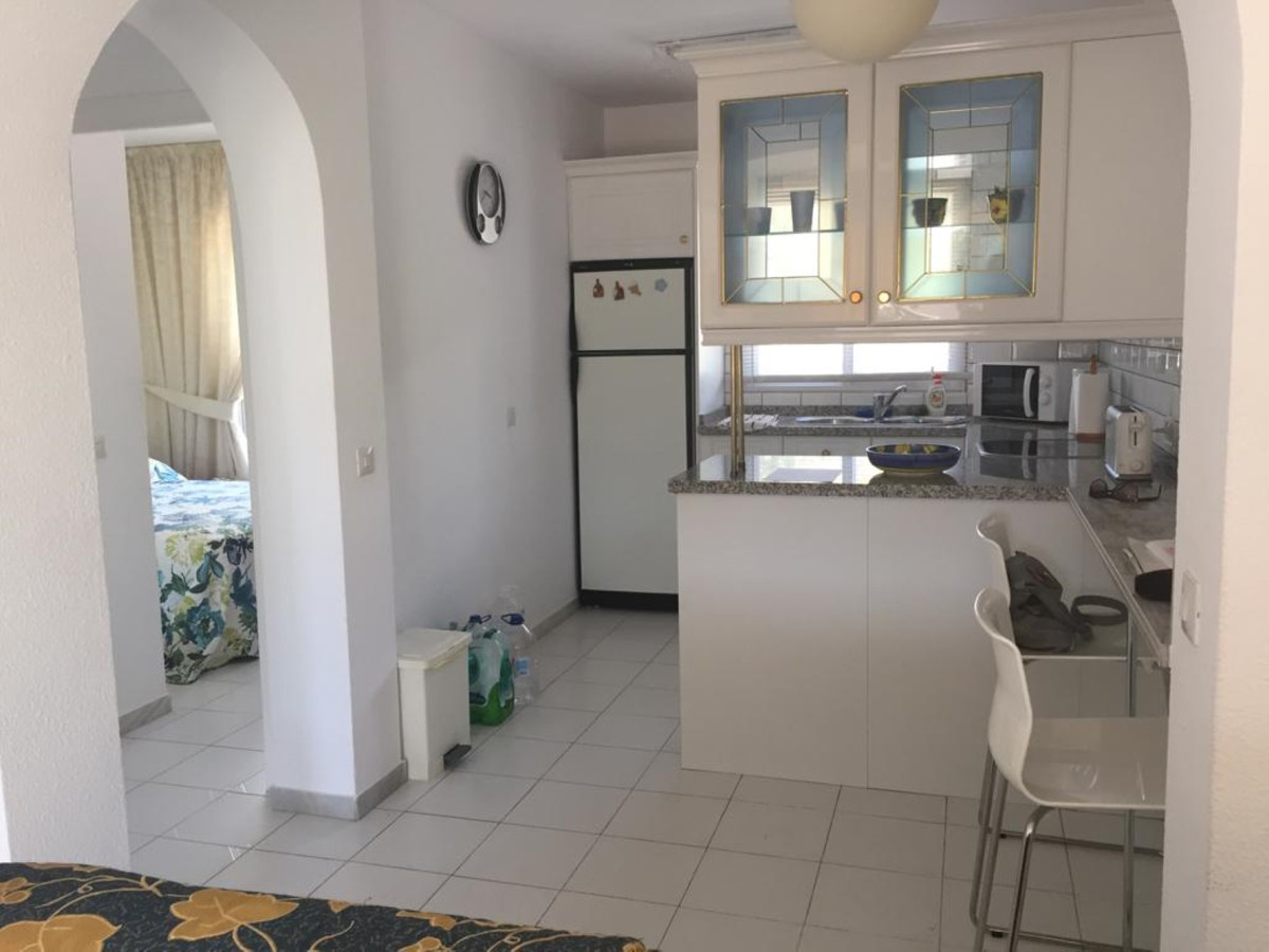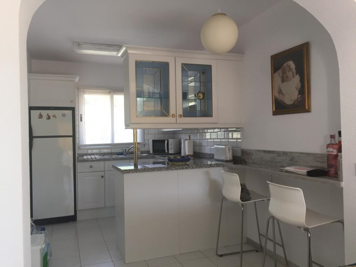 Great condition 2 bedrooms, 1 bathroom apartment with lovely terrace and views to the sea, swimming pool and gardens. Kitchen and bathroom newly renovated, A/C in the 3 rooms, double windows in both bedrooms for extra insolation. 2 minutes walking to the Miraflores Sport Centre, 5 minutes to the sea and shops, location is superb. The apartment is in a dead end street which is quitet and guarantees parking space by the door. Must see!!