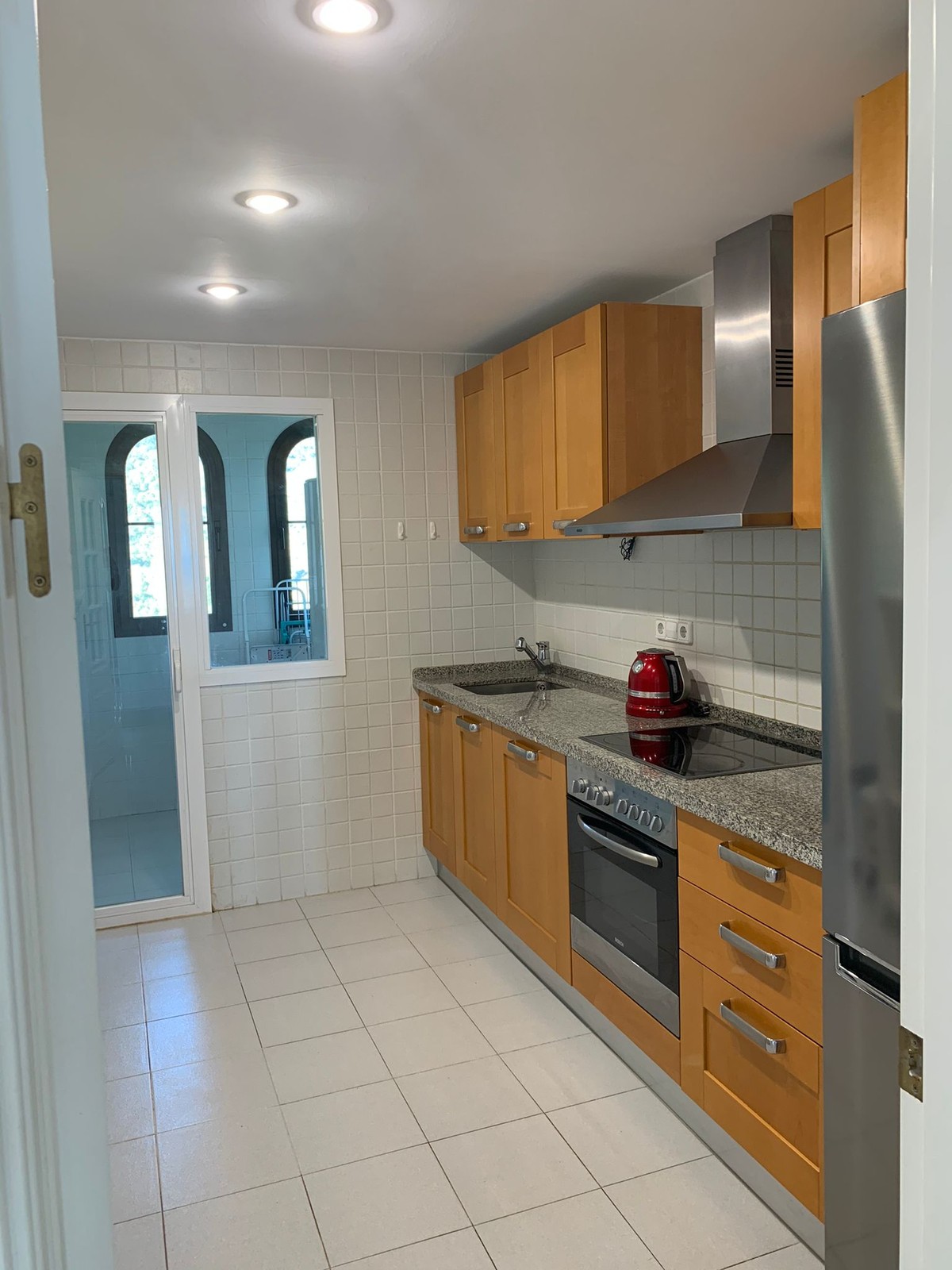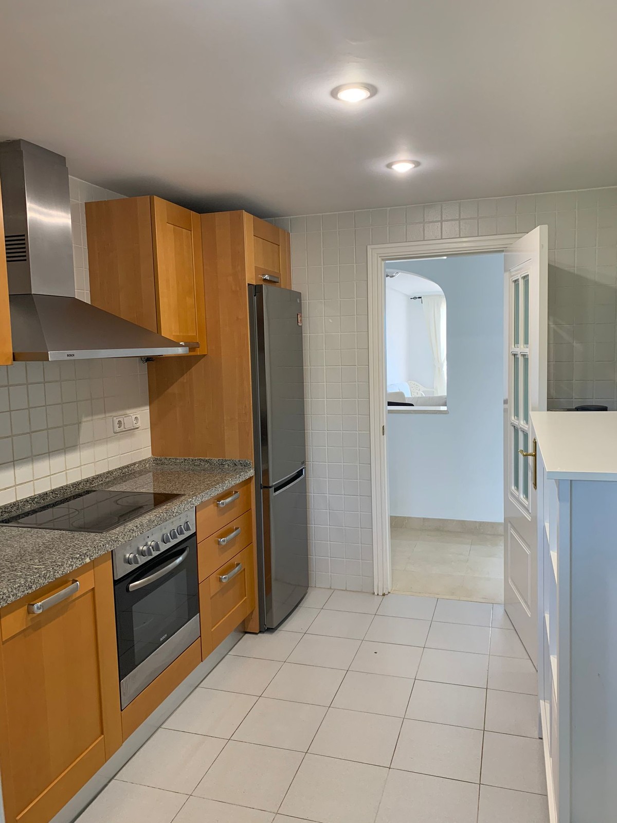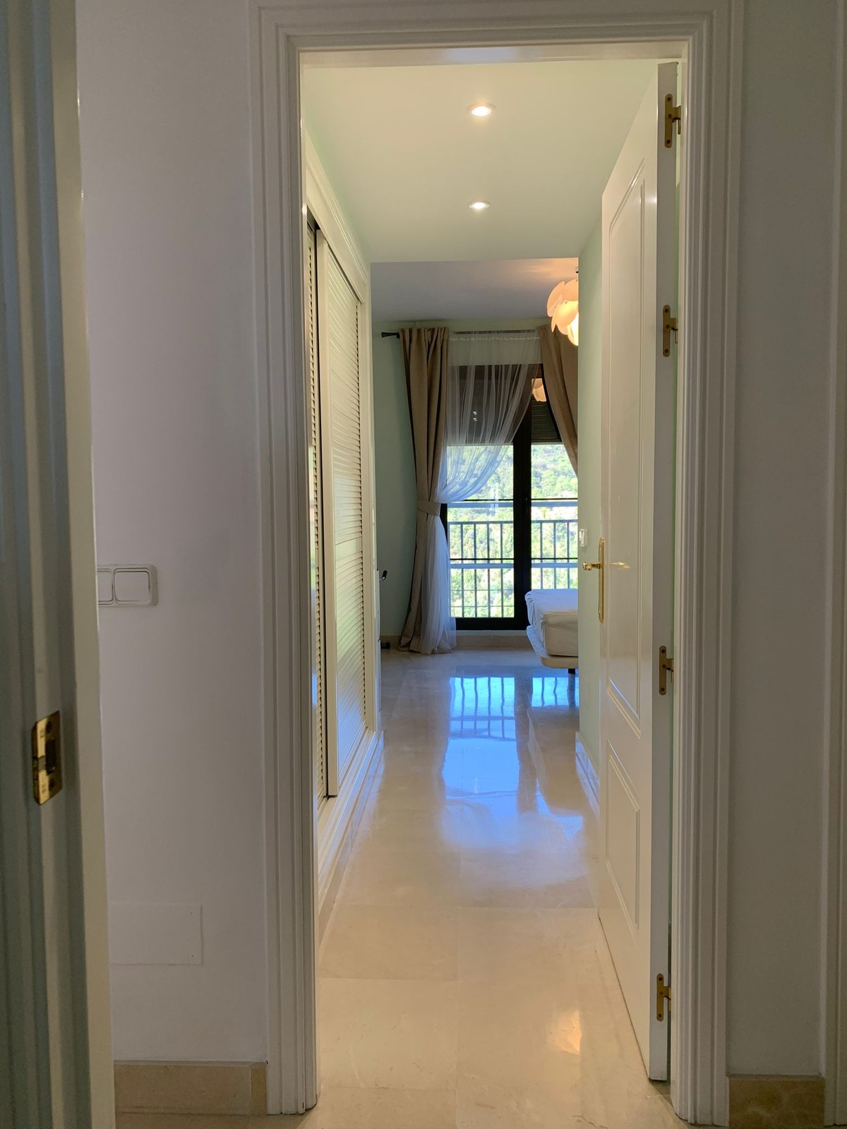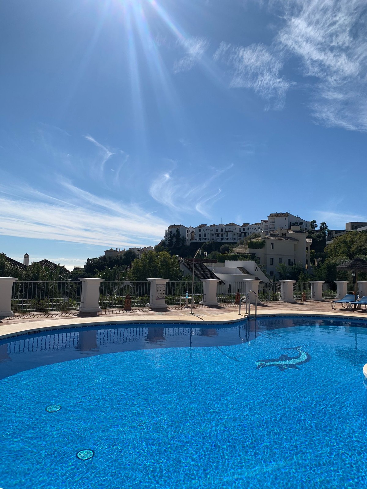 South-facing apartment with sea views. The apartment consists of a large living room with lots of daylight. The living room has access to a terrace with sea views and views of Marbella. Two of the bedrooms are also south-facing, one of the bedrooms has access to the terrace. All bedrooms have spacious fitted wardrobes. The third bedroom is north oriented and has wonderful views of La Zagaleta and the beautiful mountains. The kitchen is well equipped with new appliances. The urbanization I has two pools and a well-kept garden. Wonderful view of the sea and the mountains.