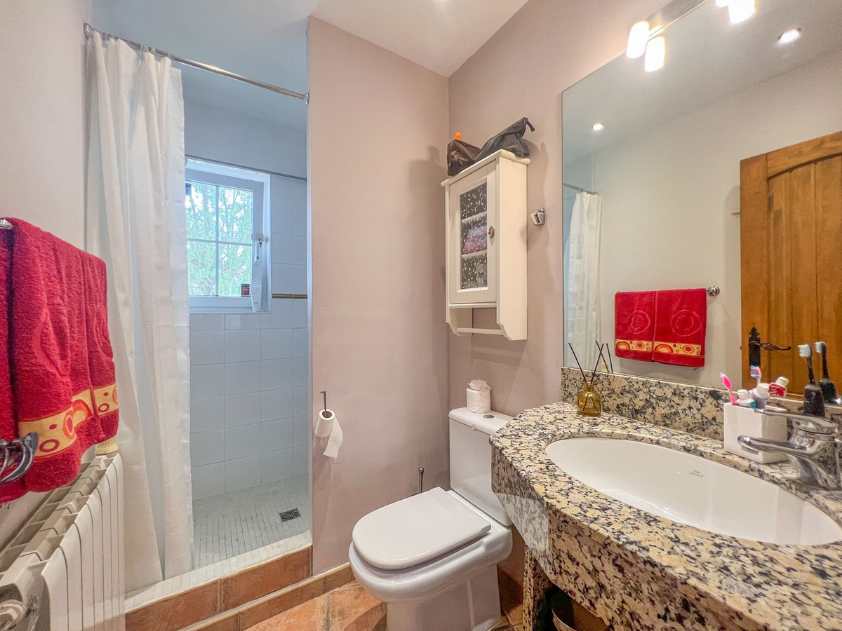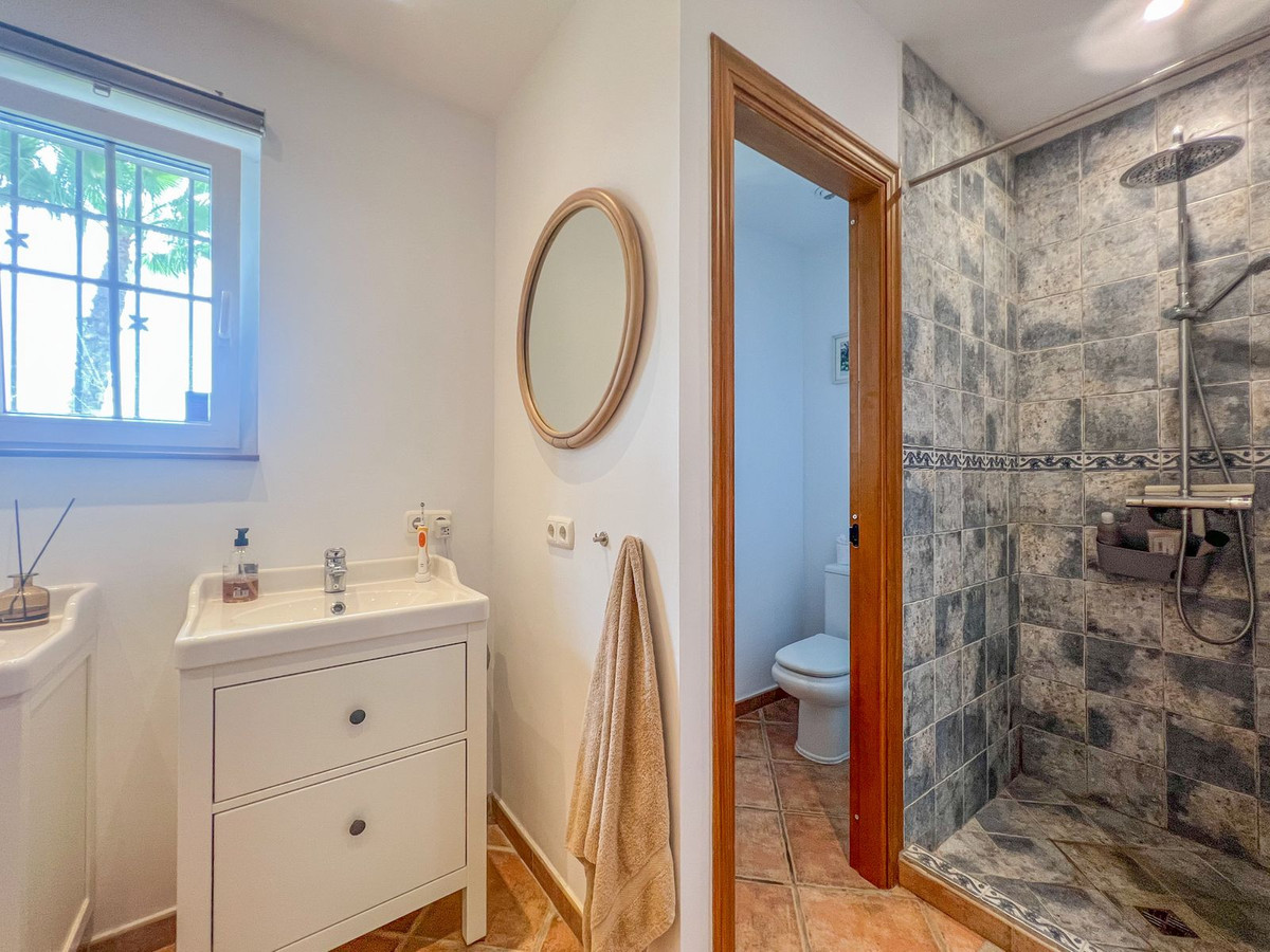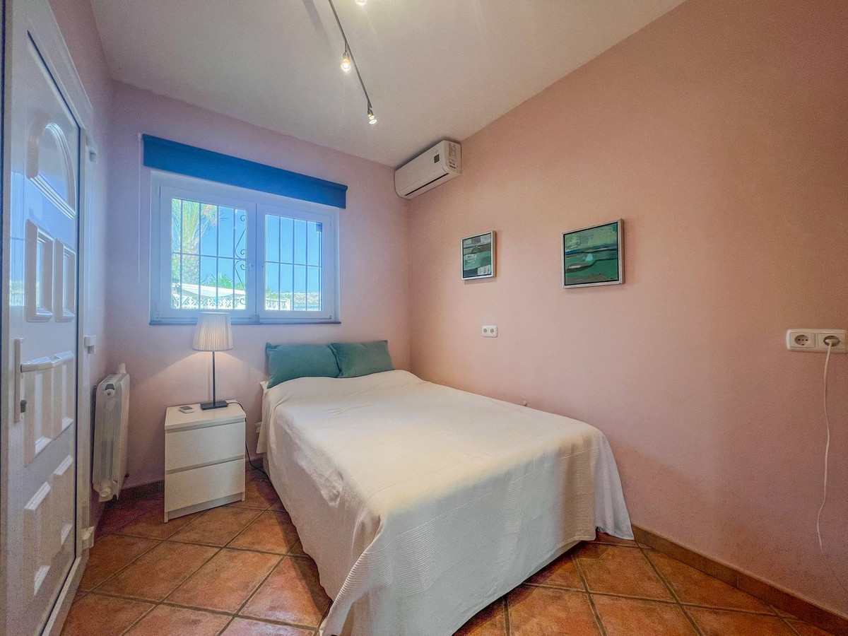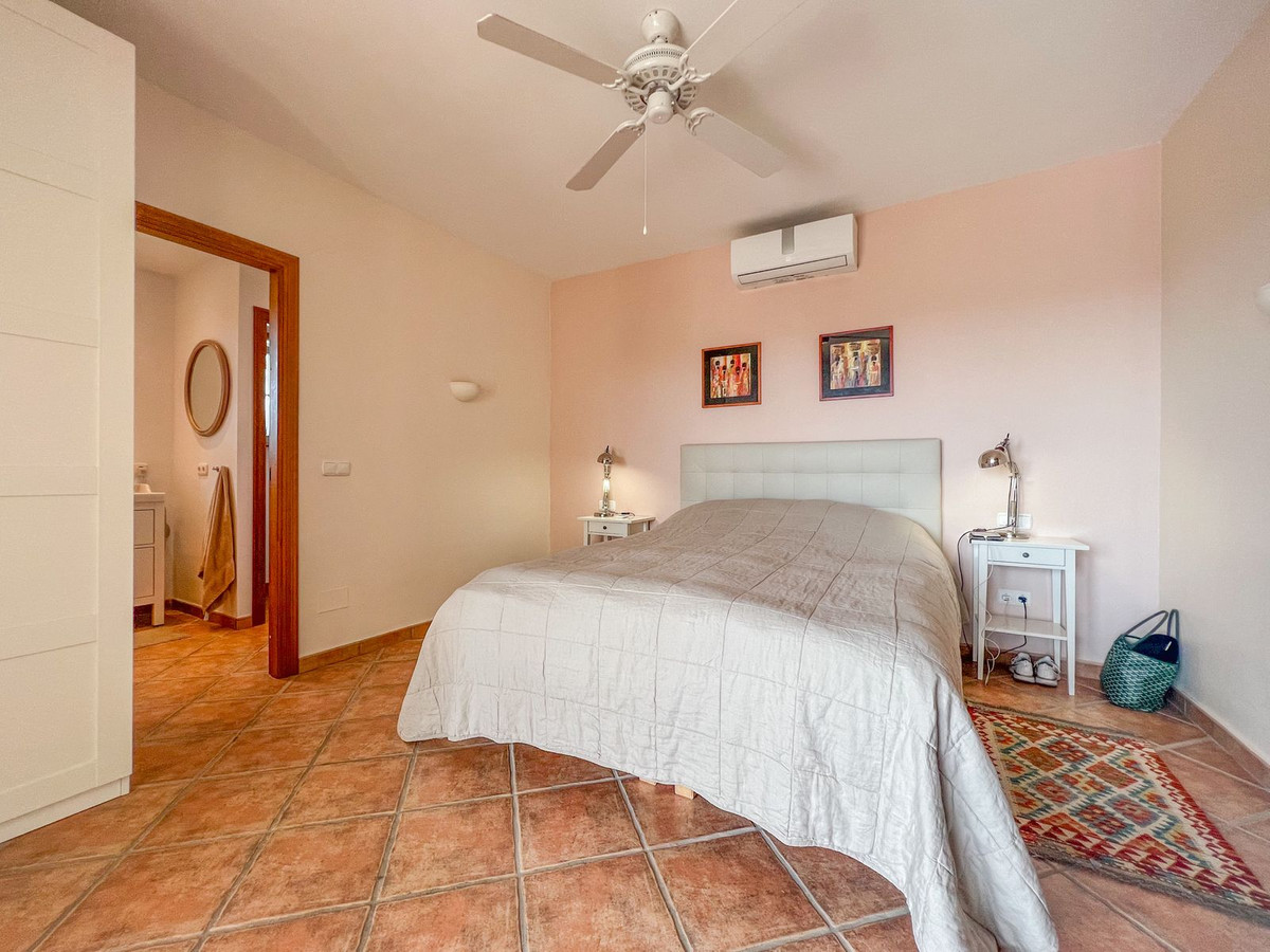 Near the master bedroom, there is a second bedroom with a double bed. This used to be a walk-in closet, but has now been transformed into a functional bedroom with a separate entrance and a window for natural light. The two other spacious bedrooms also enjoy natural light and share the second bathroom of the villa.