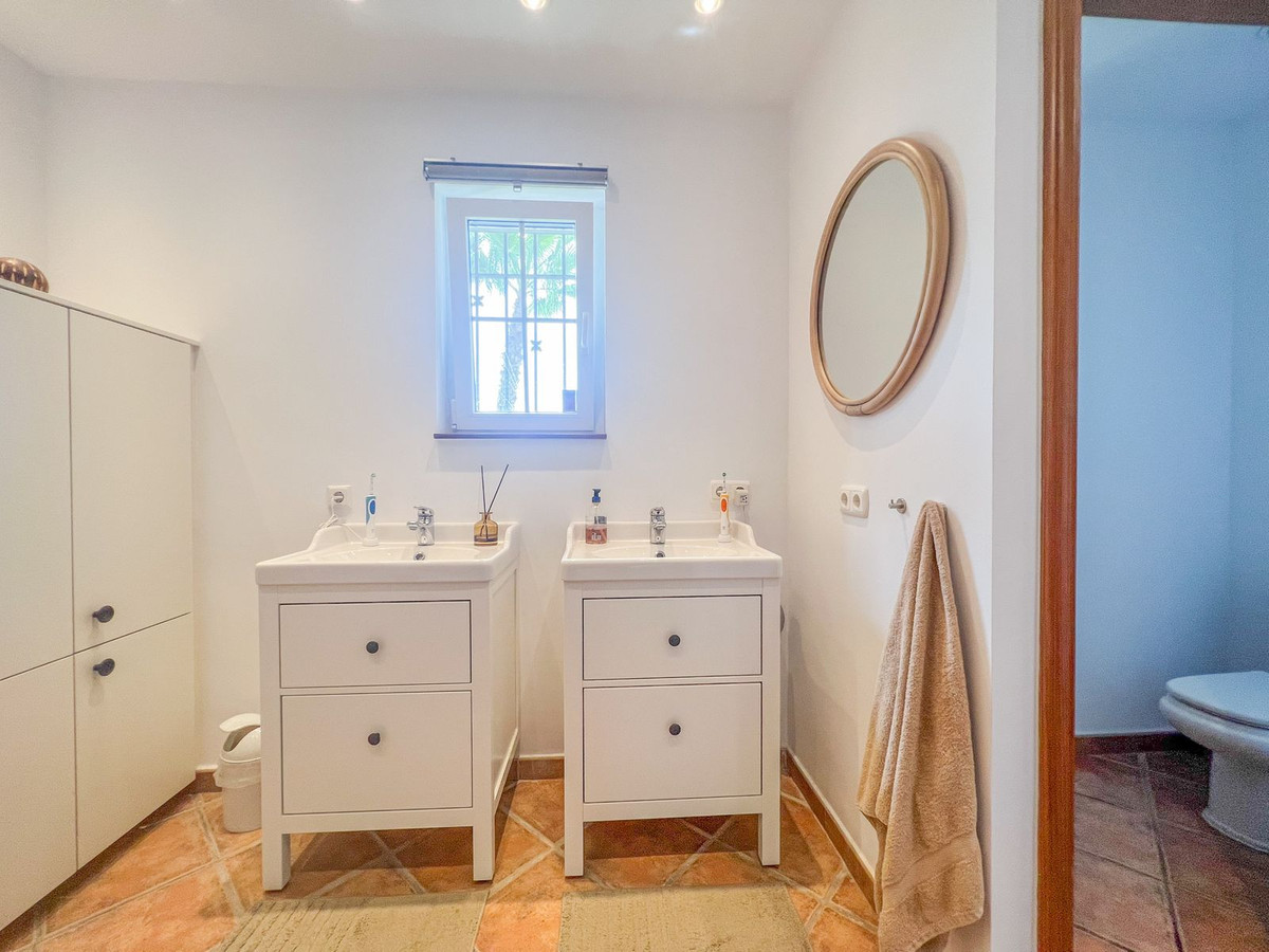 The property consists of 4 double bedrooms. The master bedroom has an en-suite bathroom and double patio doors that give access to the terrace and pool area - enjoy the beautiful sunrises and a glimpse of the ocean. The en-suite bathroom consists of a large shower and a closed off toilet area, two separate sinks and a lot of cupboard space.