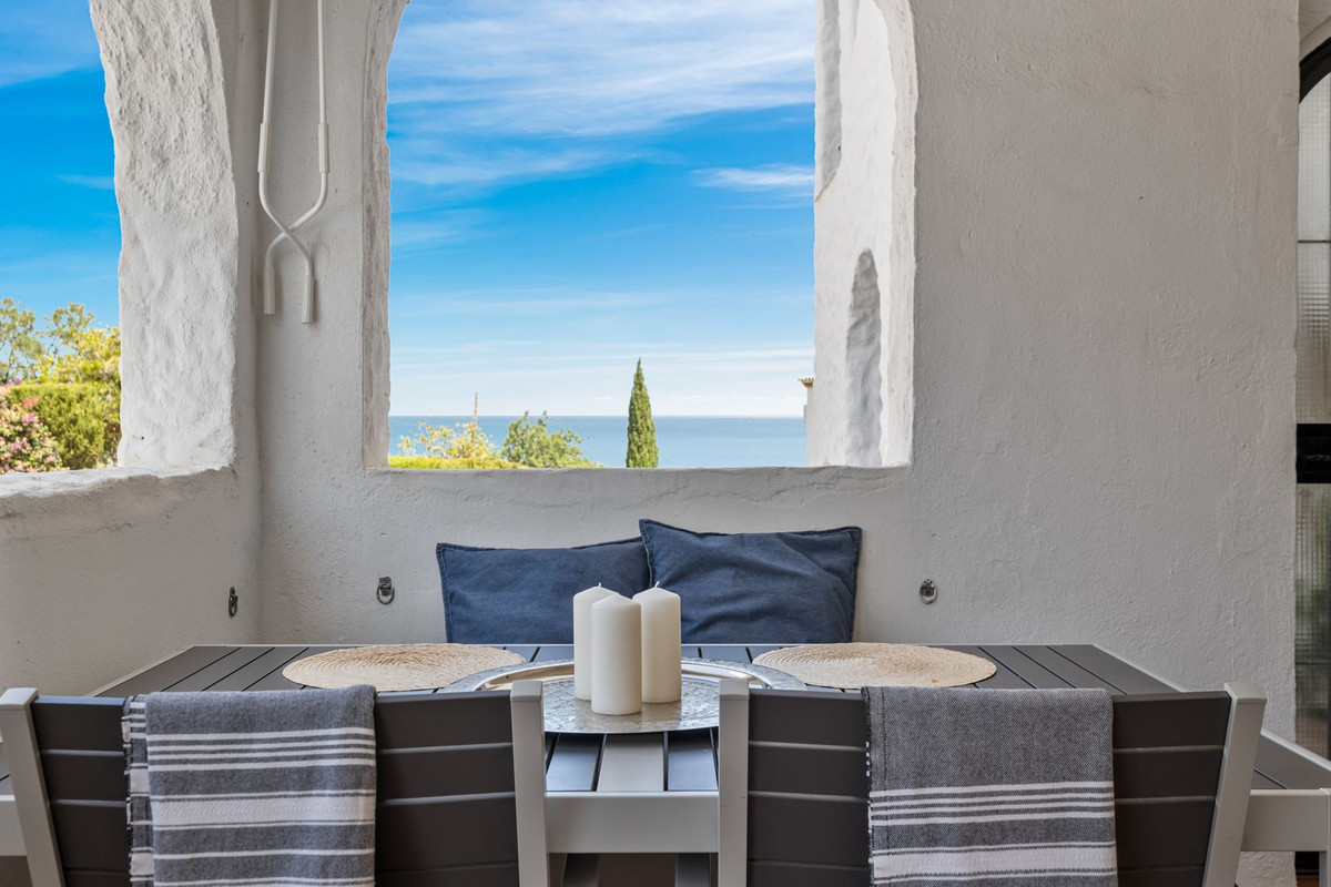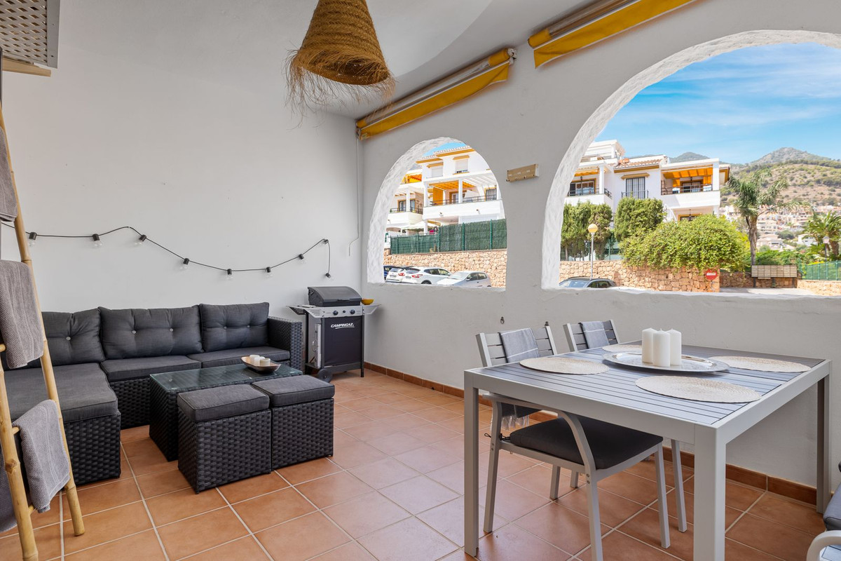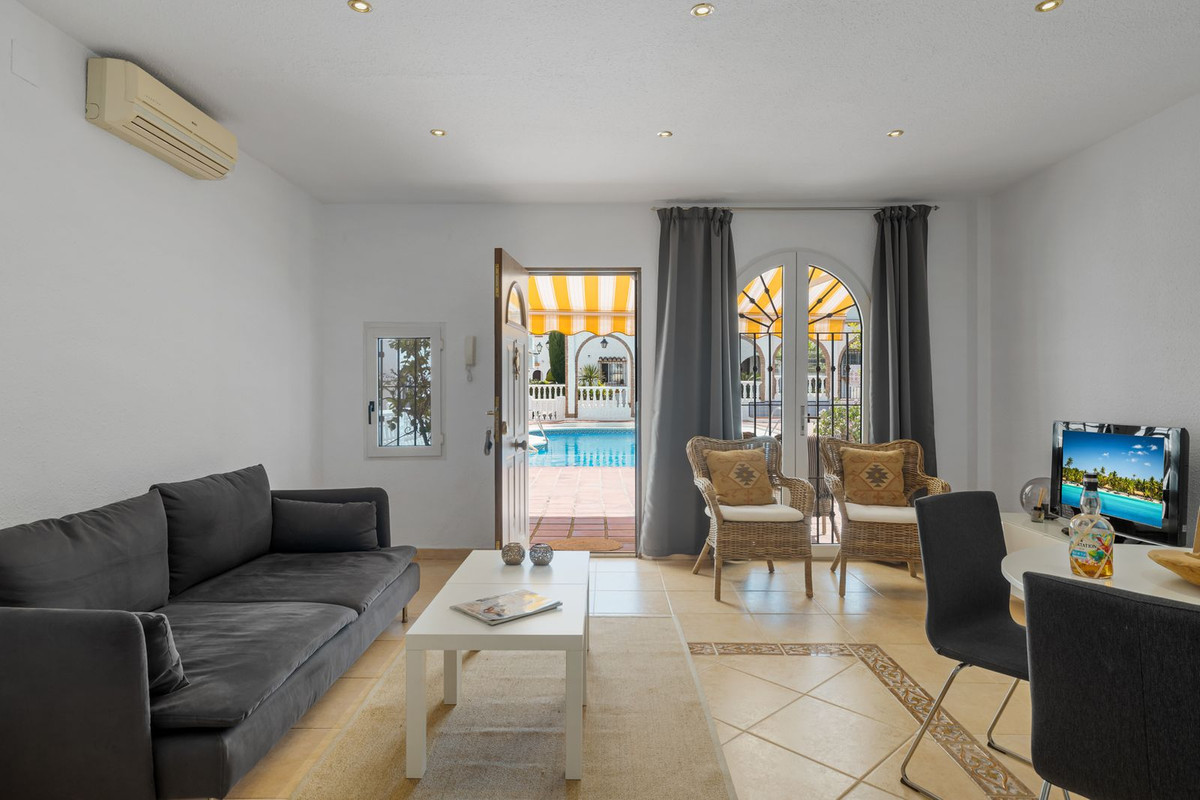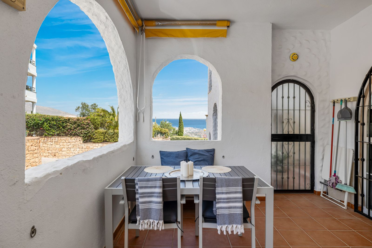 Lots of light from windows and doors at both ends of the home, which respectively give access to the private terrace with views of the mountains and the sea - and the front door which leads out to one of the complex's two swimming pools.