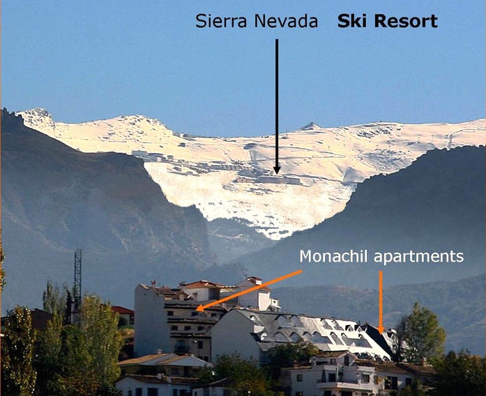 This two bedroom apartment in Monachil is moments from magic locations including the Sierra Nevada, the city of Granada, Motril and Salobrena on the coast. Enjoy breathtaking vistas of majestic snow-covered mountains or in summer be at the beach in just half an hour. The apartment has a large living area with marble floors, electric heating, and a communal terrace with a Jacuzzi offering spectacular vistas. Mirador Del Viso is only around 20 mins to the Sierra Nevada ski resort and 30 mins to Salobrena beach on the coast; Malaga and Malaga airport are just one hour away.