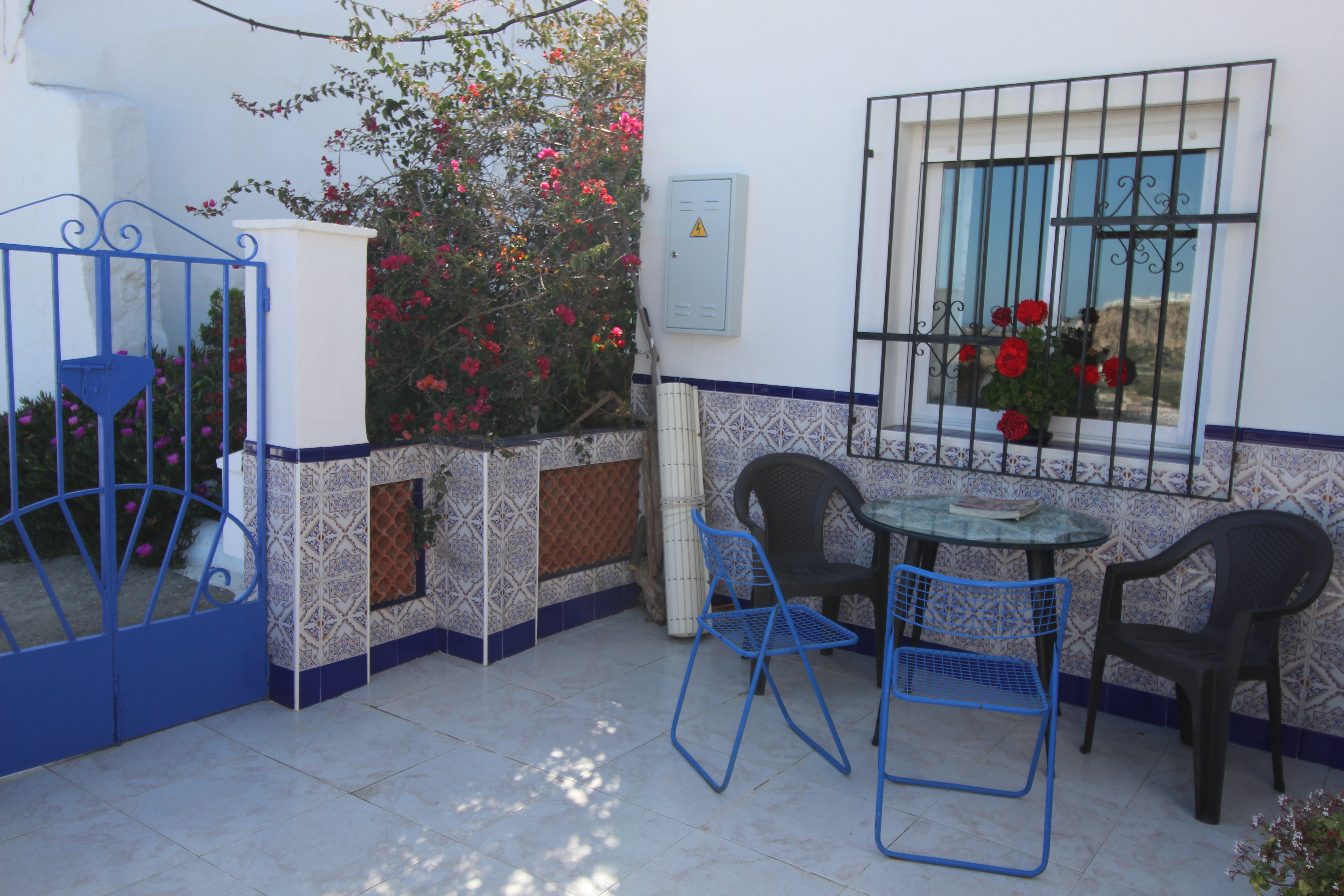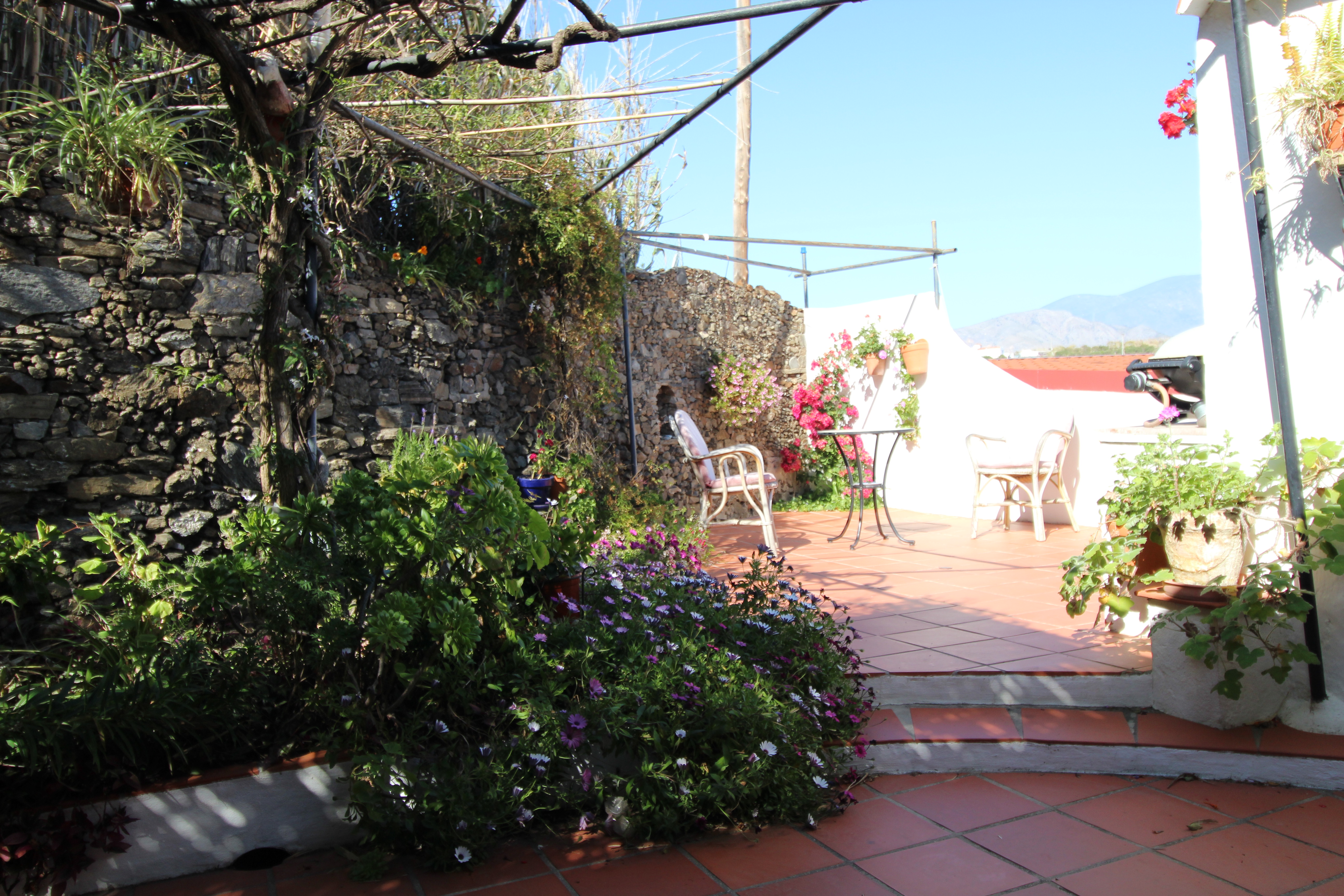 The terraces is surrounded by many lovely plants and natural stones, from here you can also enjoy the view, which is absolutely fantastic, even here is a view all the way to the Sierra Nevada. At the terrace there is an extra storage room with a washing machine. There is the possibility of making an extra roof terrace or another first-floor and there is also an extra plot in the price, where there is permission to build a smaller house or build a pool. It is very special to be able to find a townhouse in one plan in Spain. This House has so many lovely options to offer such as a great location and an incredible view, which is difficult to find in a townhouse in Spain.