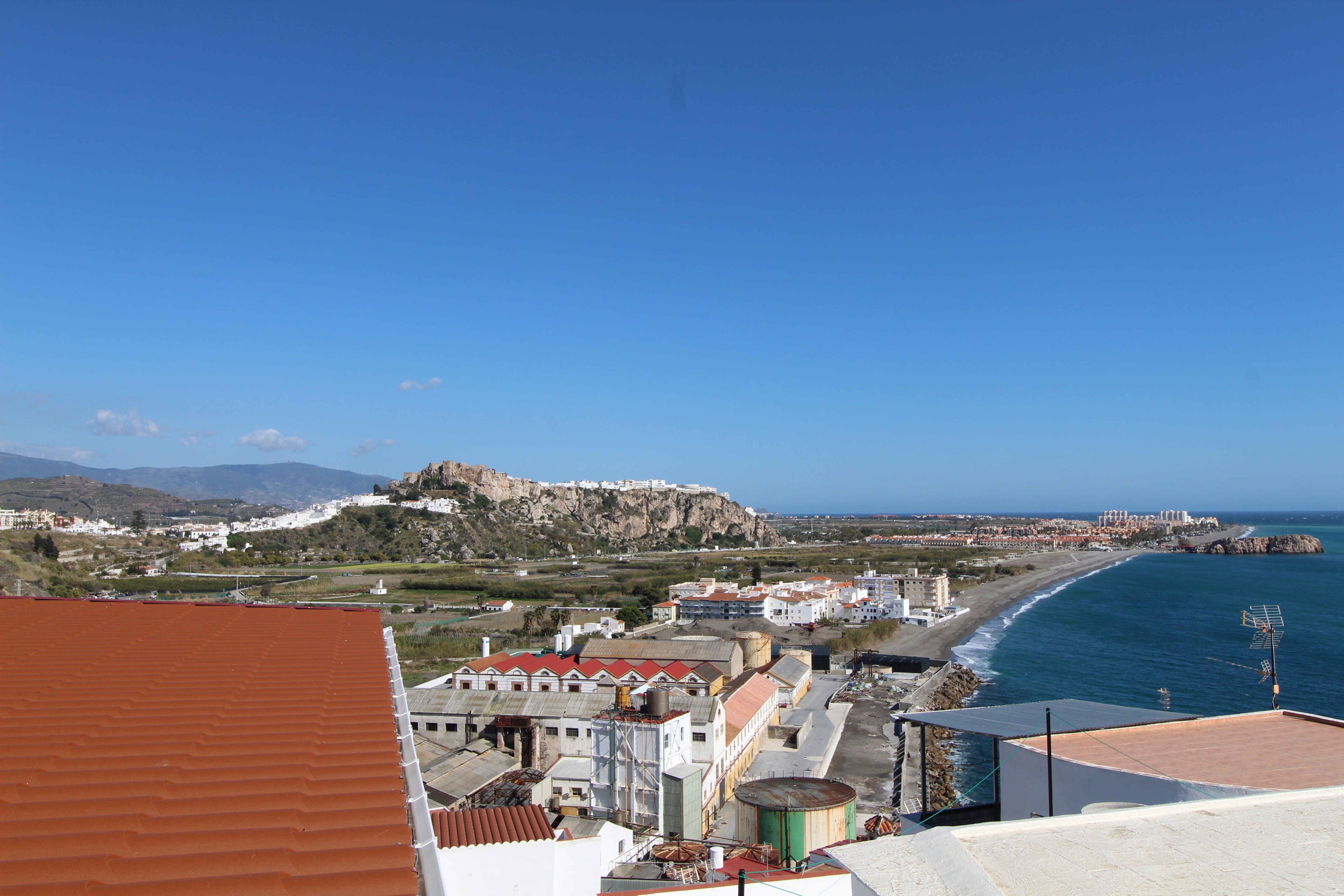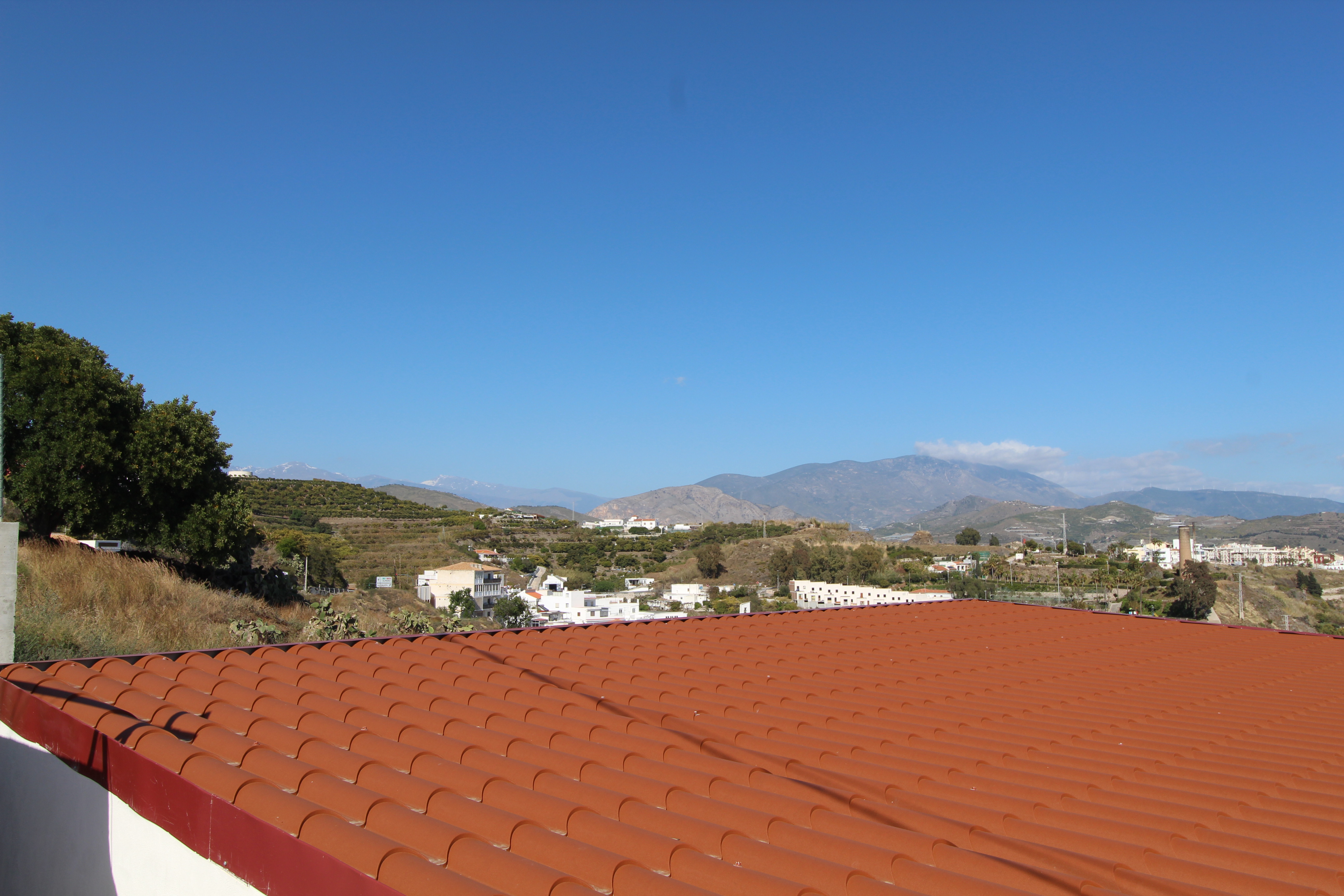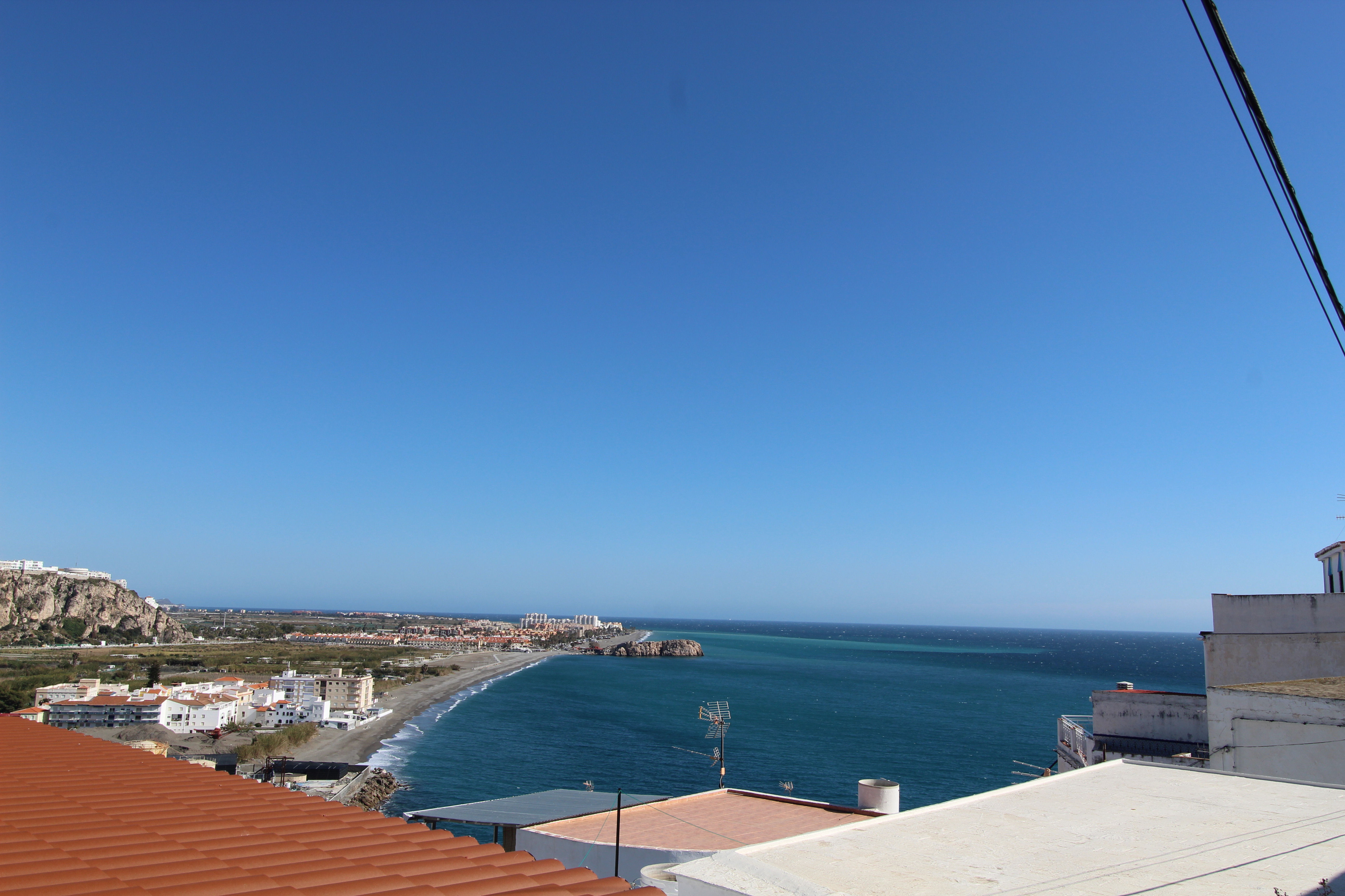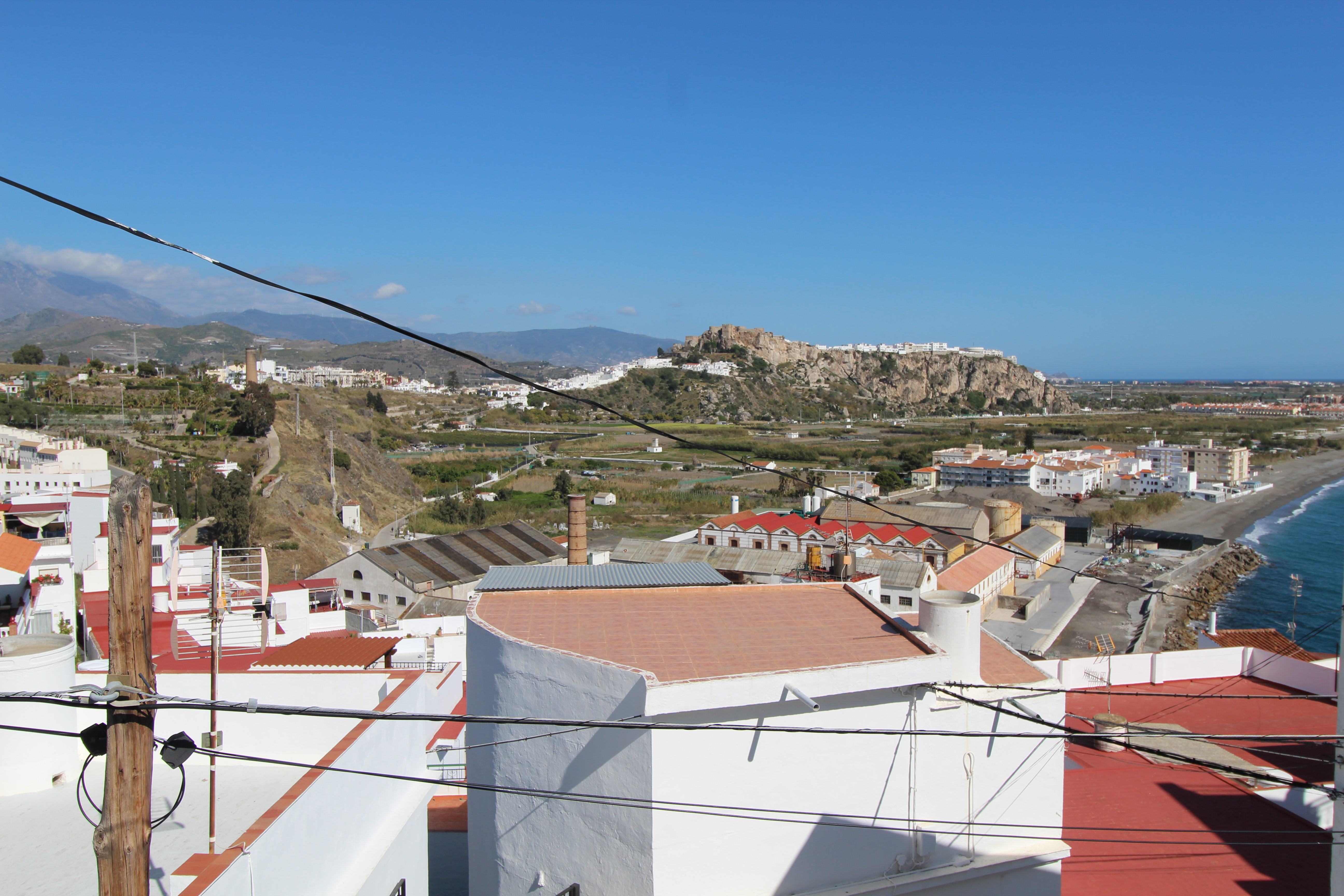 The front door leads to a nice hallway and the first two bedrooms are located in the extension of each other. Next to one of the bedrooms there is a nice new bathroom and next to this is the master bedroom. To the right from the hallway there is a nice bright combined living room-dining room with aluminum double glazing and with aircon, as a heat source. This room has an incredible view of Salobrena town with the sea and the castle. In the evening Salobrena is lit up with nice lights, which can be enjoyed from the living room. At the end of the hallway there is a cosy kitchen with all the facilities and with access to the private courtyard with two terraces, one covered and one with full sun all day.