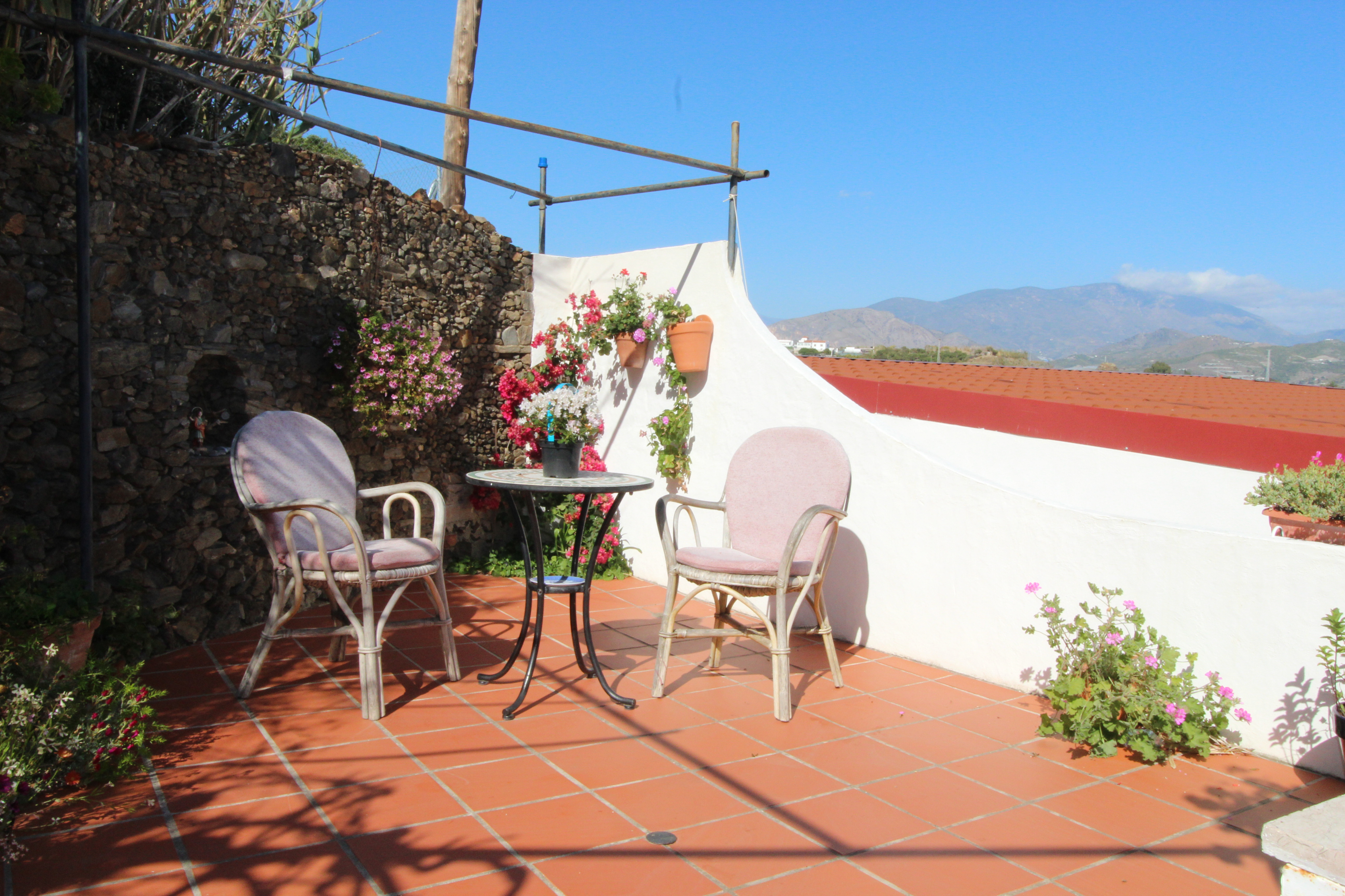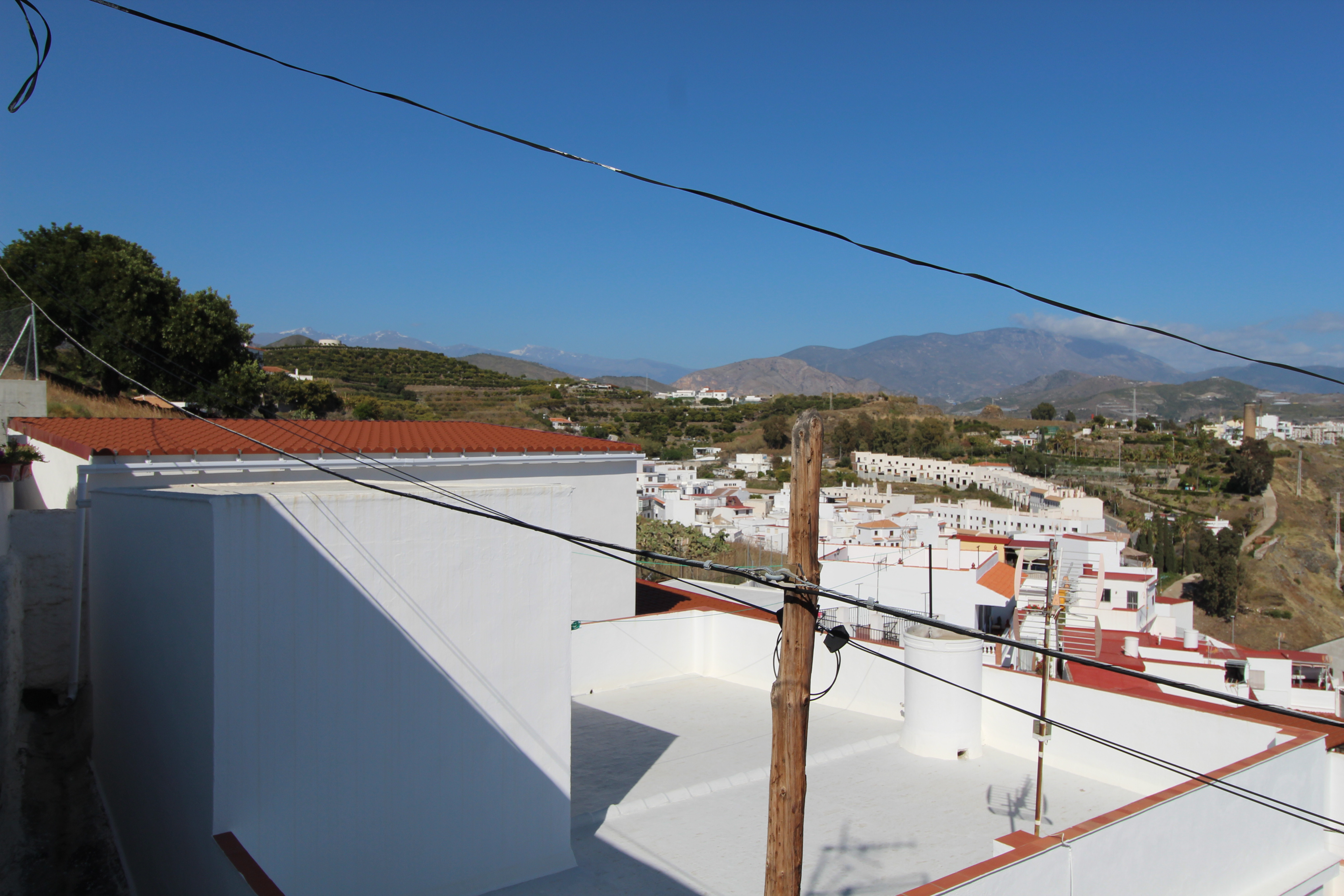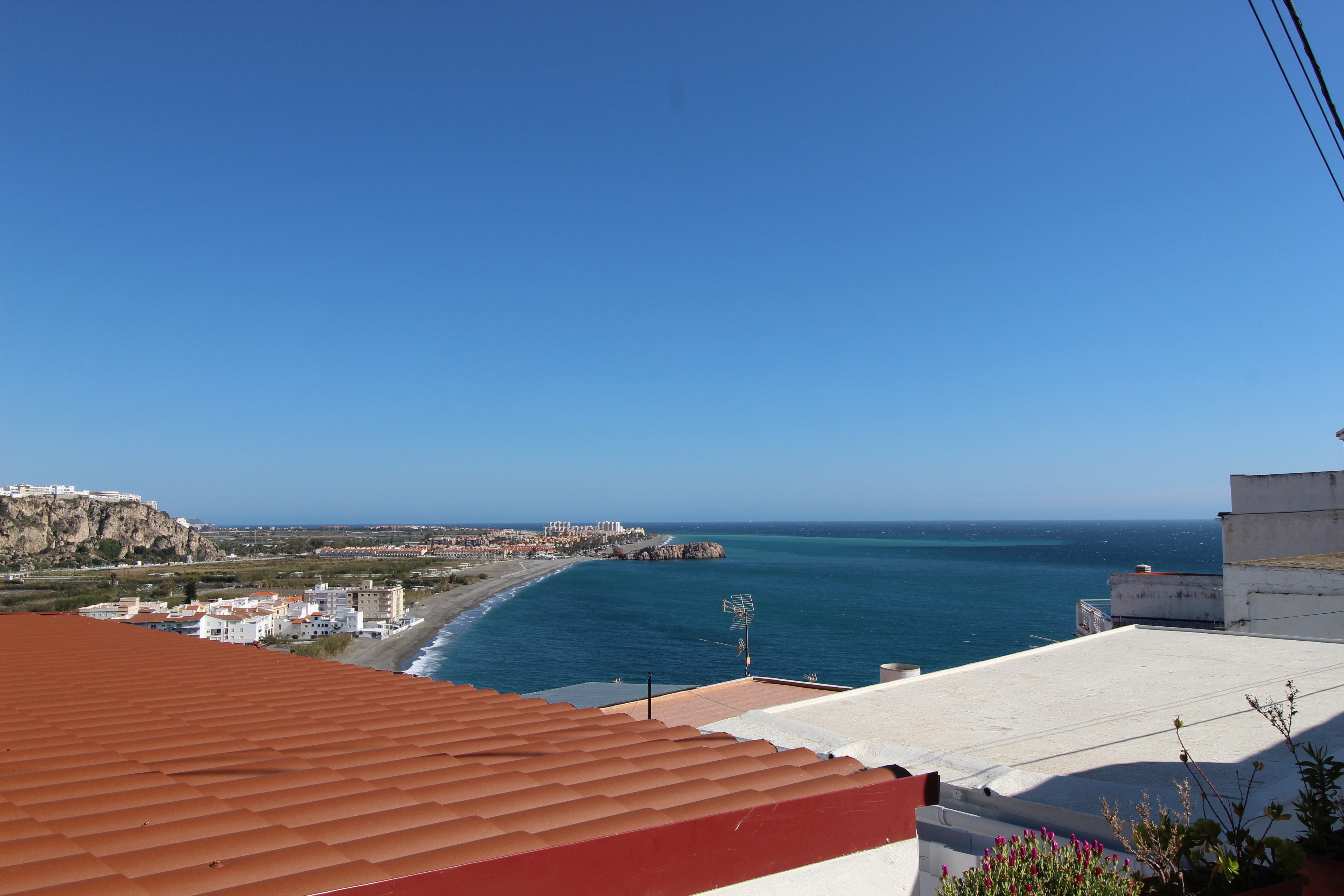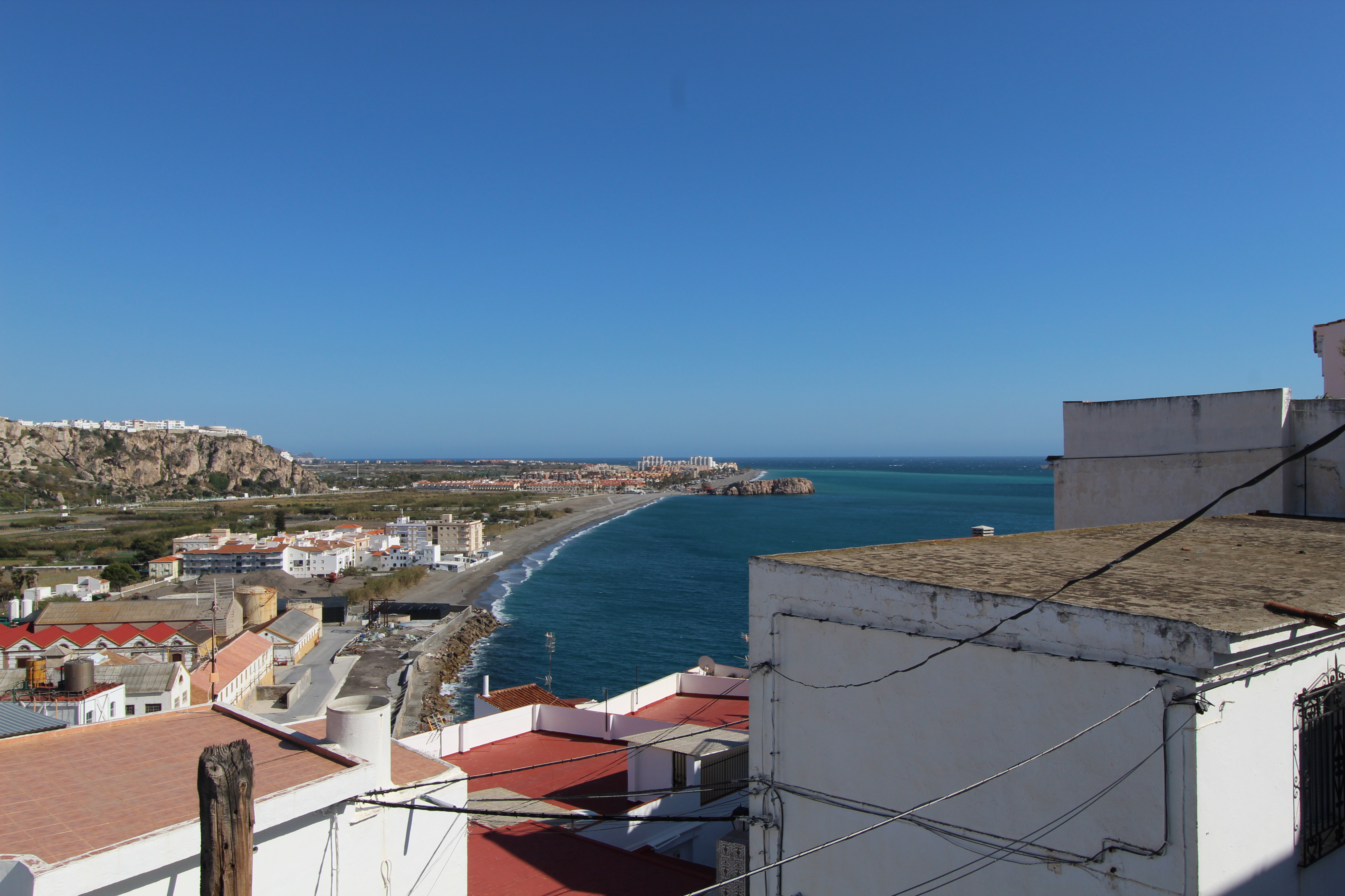 The front door leads to a nice hallway and the first two bedrooms are located in the extension of each other. Next to one of the bedrooms there is a nice new bathroom and next to this is the master bedroom. To the right from the hallway there is a nice bright combined living room-dining room with aluminum double glazing and with aircon, as a heat source. This room has an incredible view of Salobrena town with the sea and the castle. In the evening Salobrena is lit up with nice lights, which can be enjoyed from the living room. At the end of the hallway there is a cosy kitchen with all the facilities and with access to the private courtyard with two terraces, one covered and one with full sun all day.