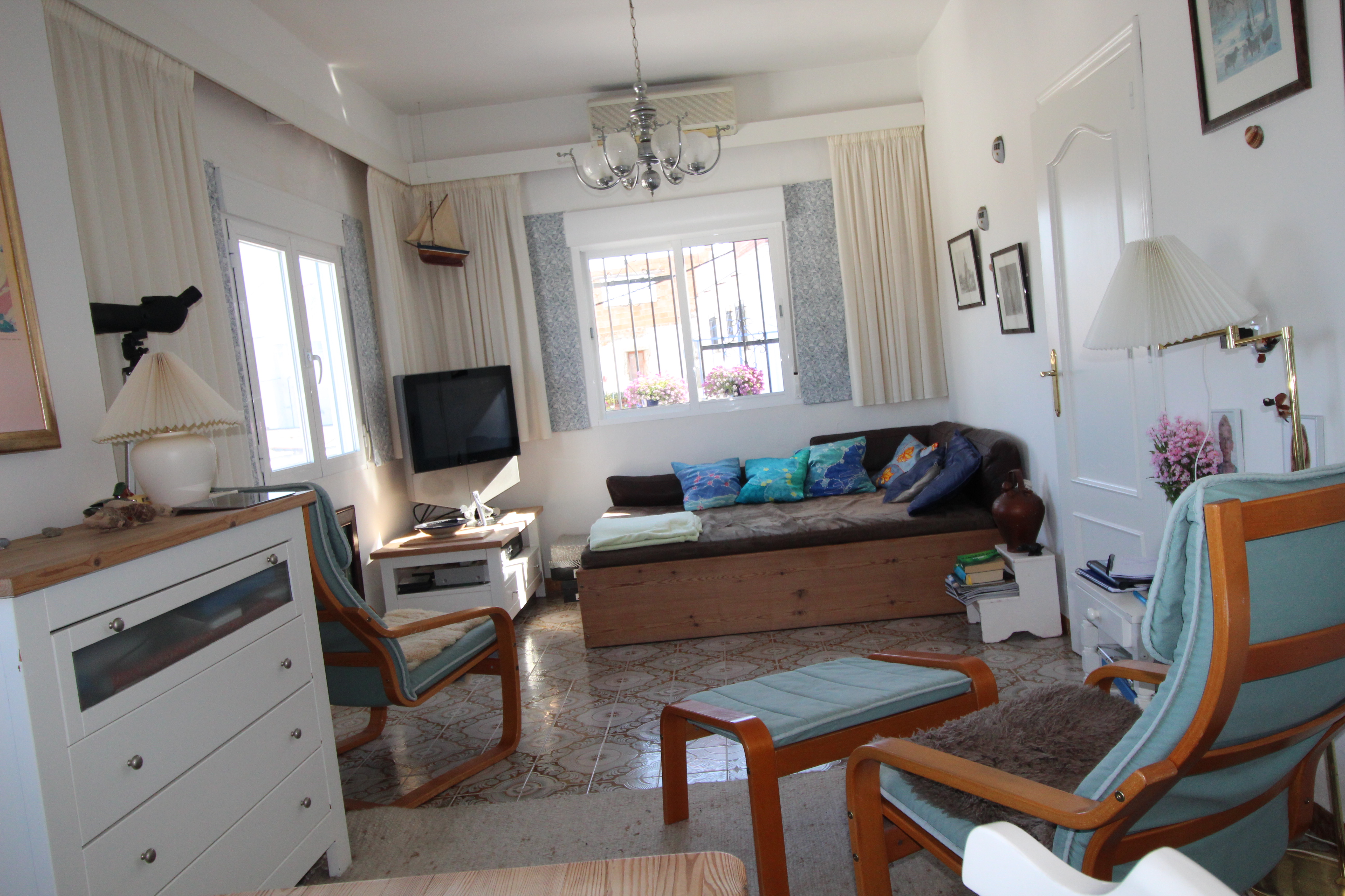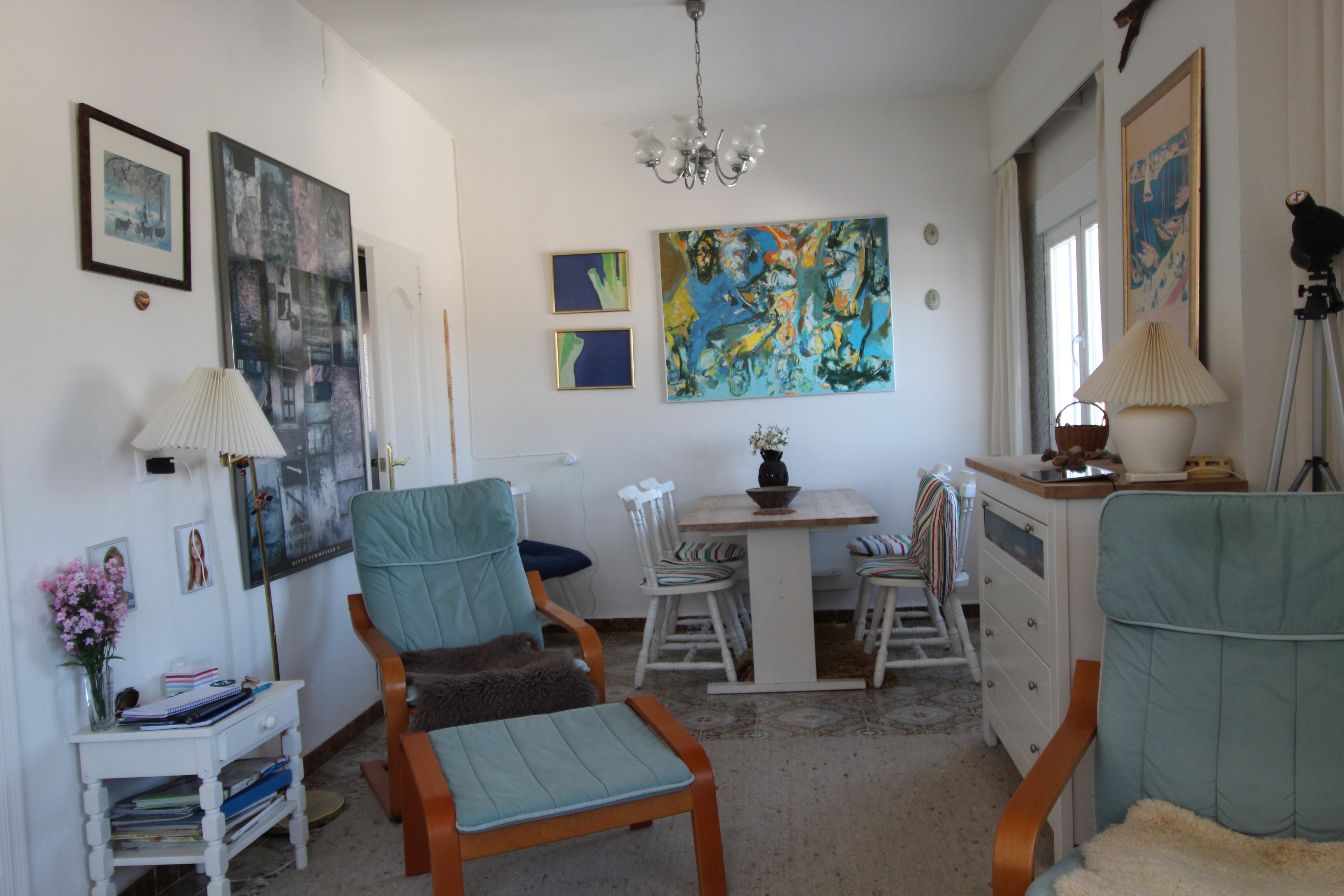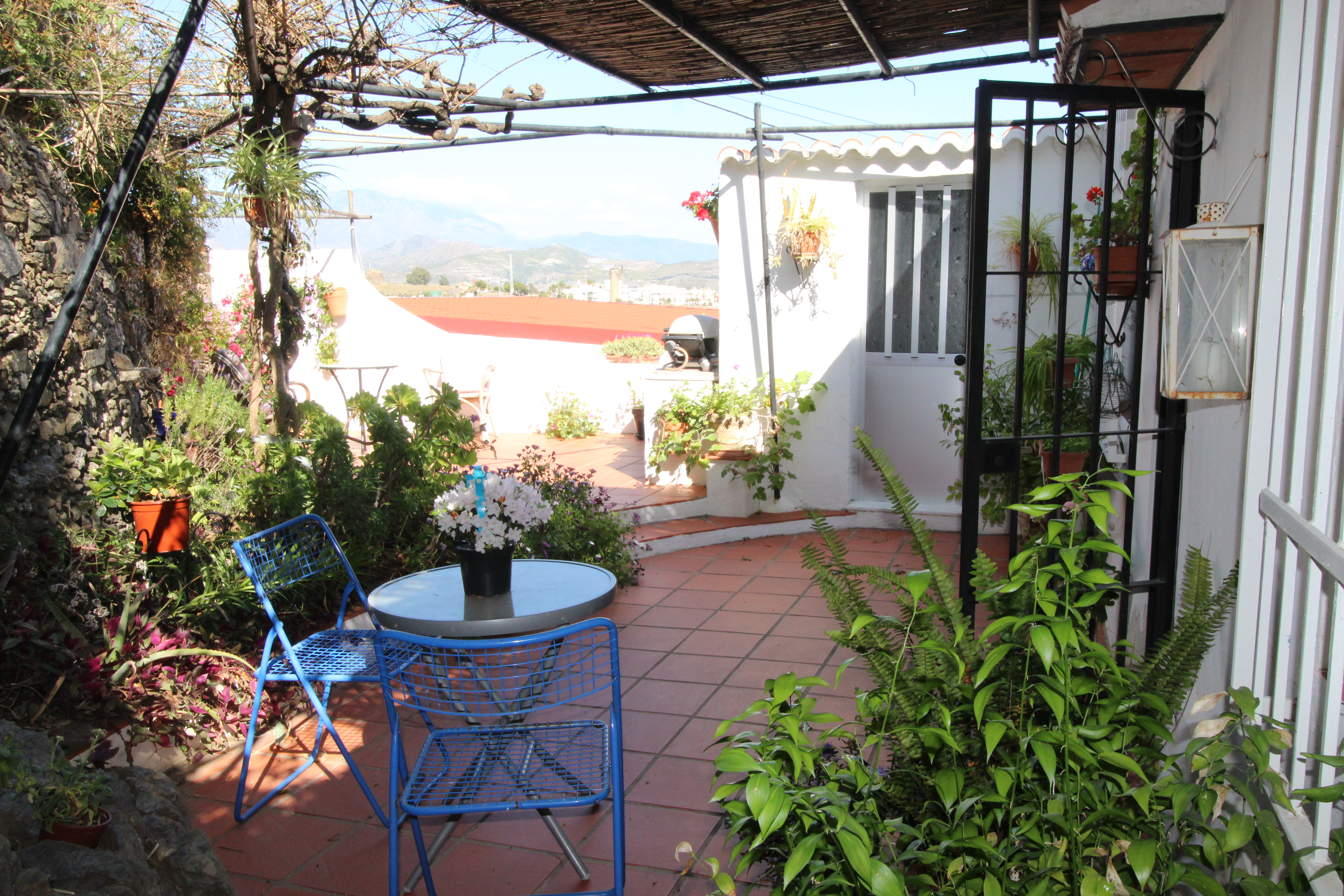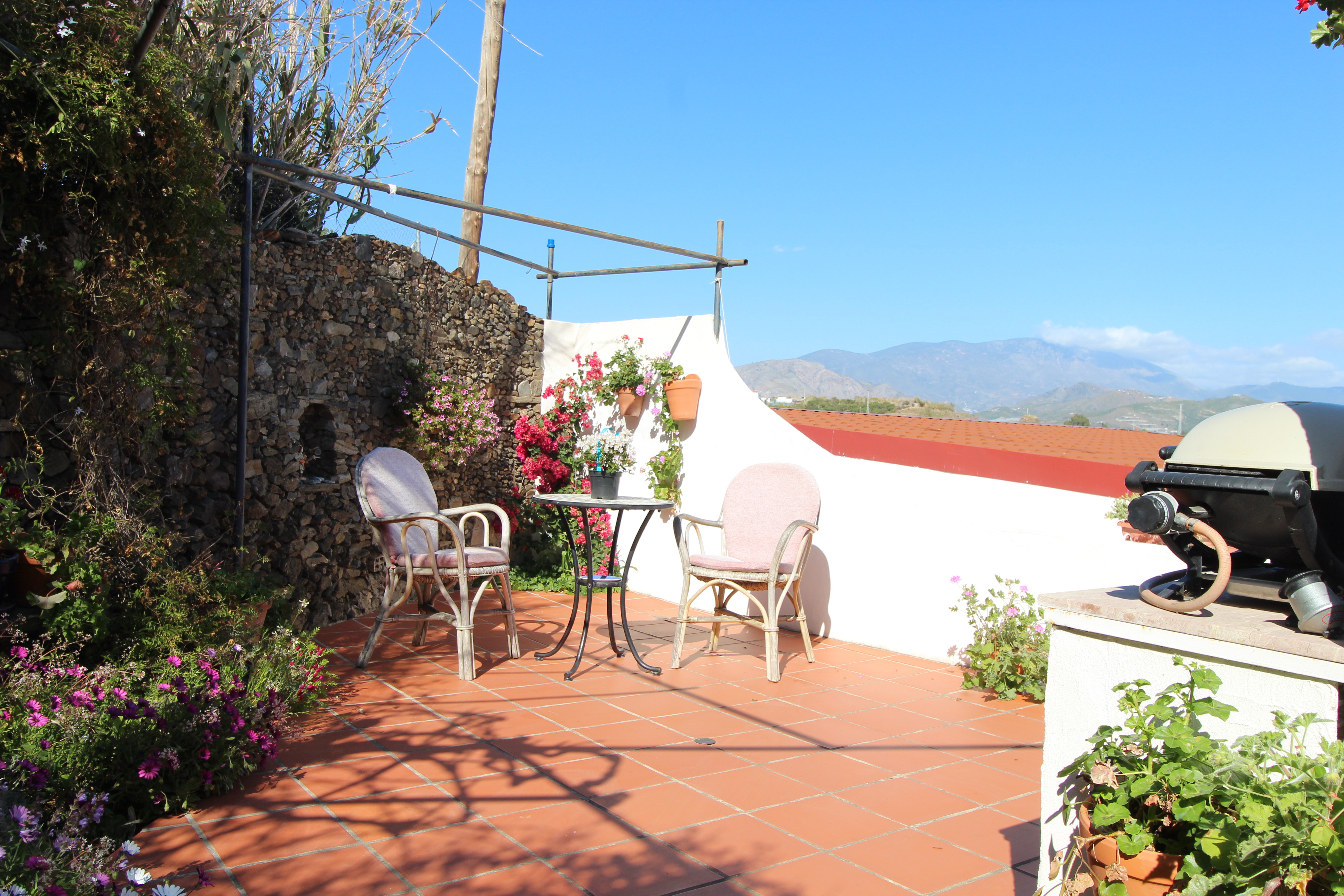 The front door leads to a nice hallway and the first two bedrooms are located in the extension of each other. Next to one of the bedrooms there is a nice new bathroom and next to this is the master bedroom. To the right from the hallway there is a nice bright combined living room-dining room with aluminum double glazing and with aircon, as a heat source. This room has an incredible view of Salobrena town with the sea and the castle. In the evening Salobrena is lit up with nice lights, which can be enjoyed from the living room. At the end of the hallway there is a cosy kitchen with all the facilities and with access to the private courtyard with two terraces, one covered and one with full sun all day.