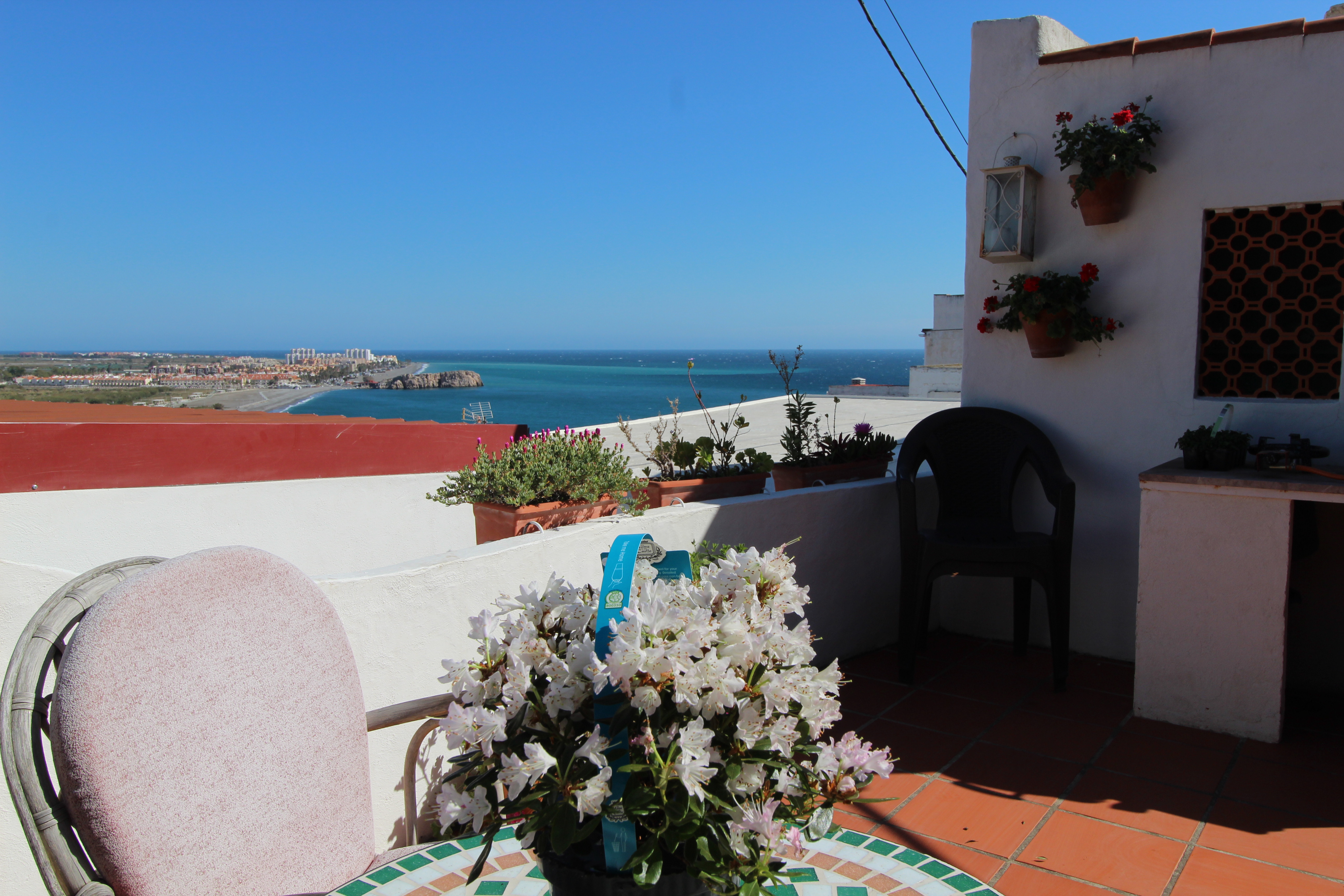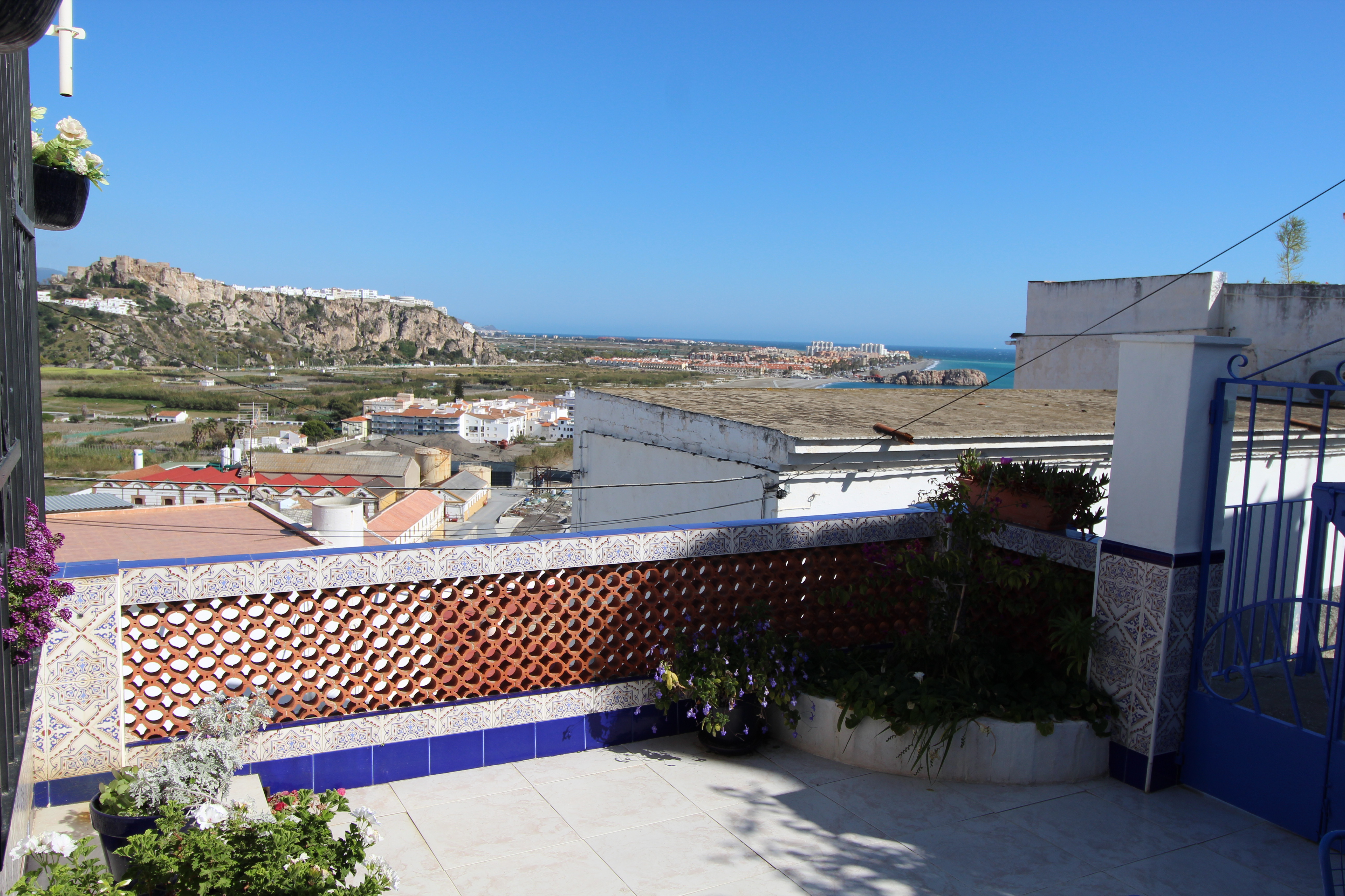 This cosy townhouse in one level is located in the beautiful Salobrena with stunning sea and mountain views both from inside the house but also from outside the different terraces. The town house is located 30 meters from private parking, and you are welcomed by the very charming entrance and terrace with lovely Spanish blue colors, where you can enjoy the beautiful view of the castle in Salobrena and the sea view.