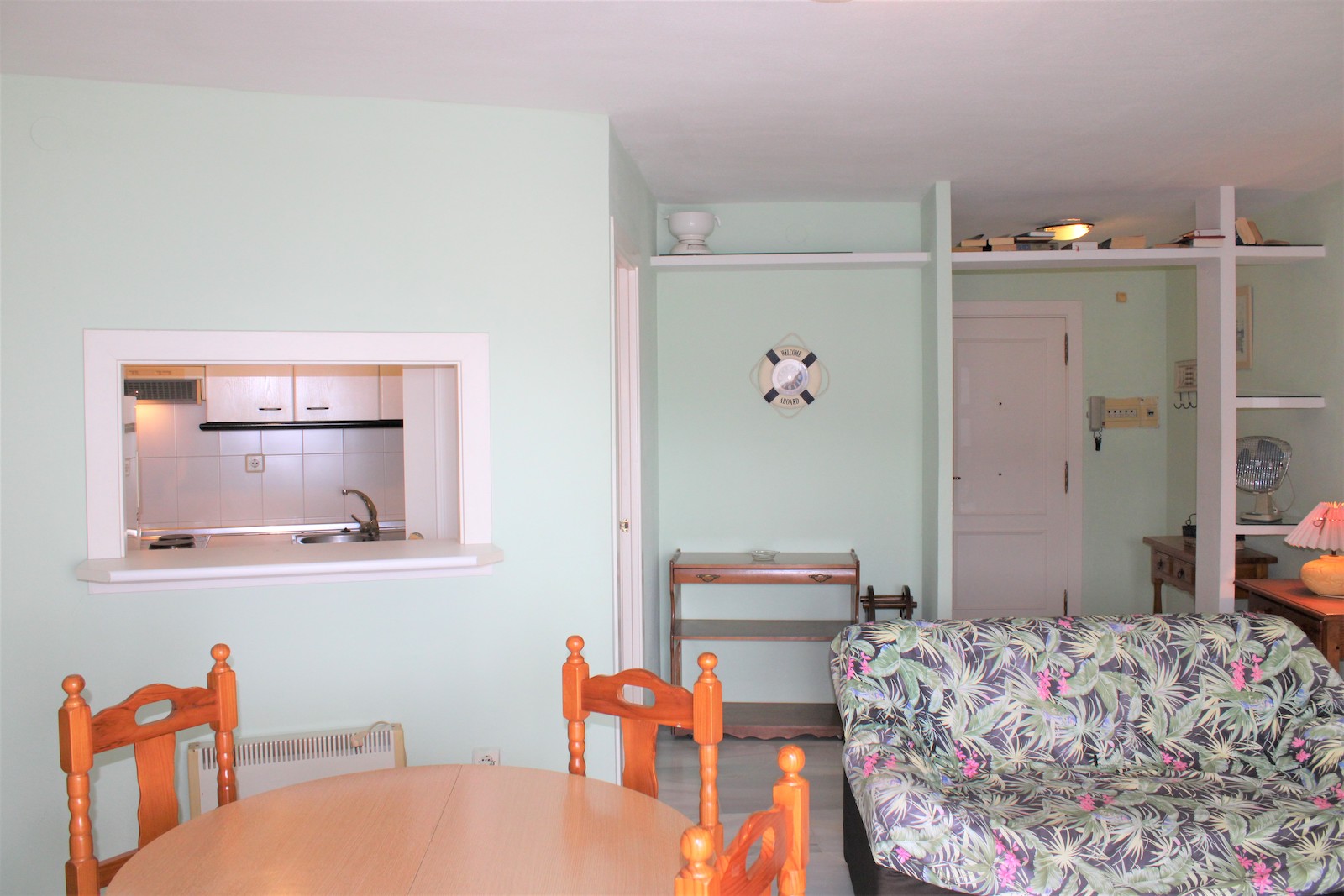 Bright spacious apartment on the first line with lovely views of the Mediterranean Sea, located on the top of the eleventh floor of a well maintained building with only 50 meters to the beach in Velilla-Taramay. There are three lifts in the building and a communal swimming pool on the premises, the apartment is sold furnished.