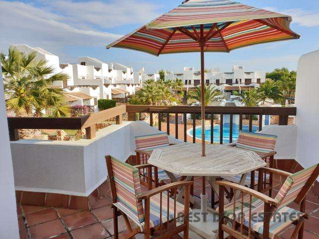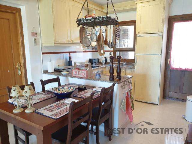 Modern townhouse in pretty community near the marina + beaches. 118m2 living area splitted in 2 apartments + separate entrances, Total: 3 Bedrooms, 2 Bathrooms, 2 Lounge/Diners + Equipped Kitchens, Utility, Terraces, Private Garden, New A/C, Parking Spot, Communal Swimming Pool.