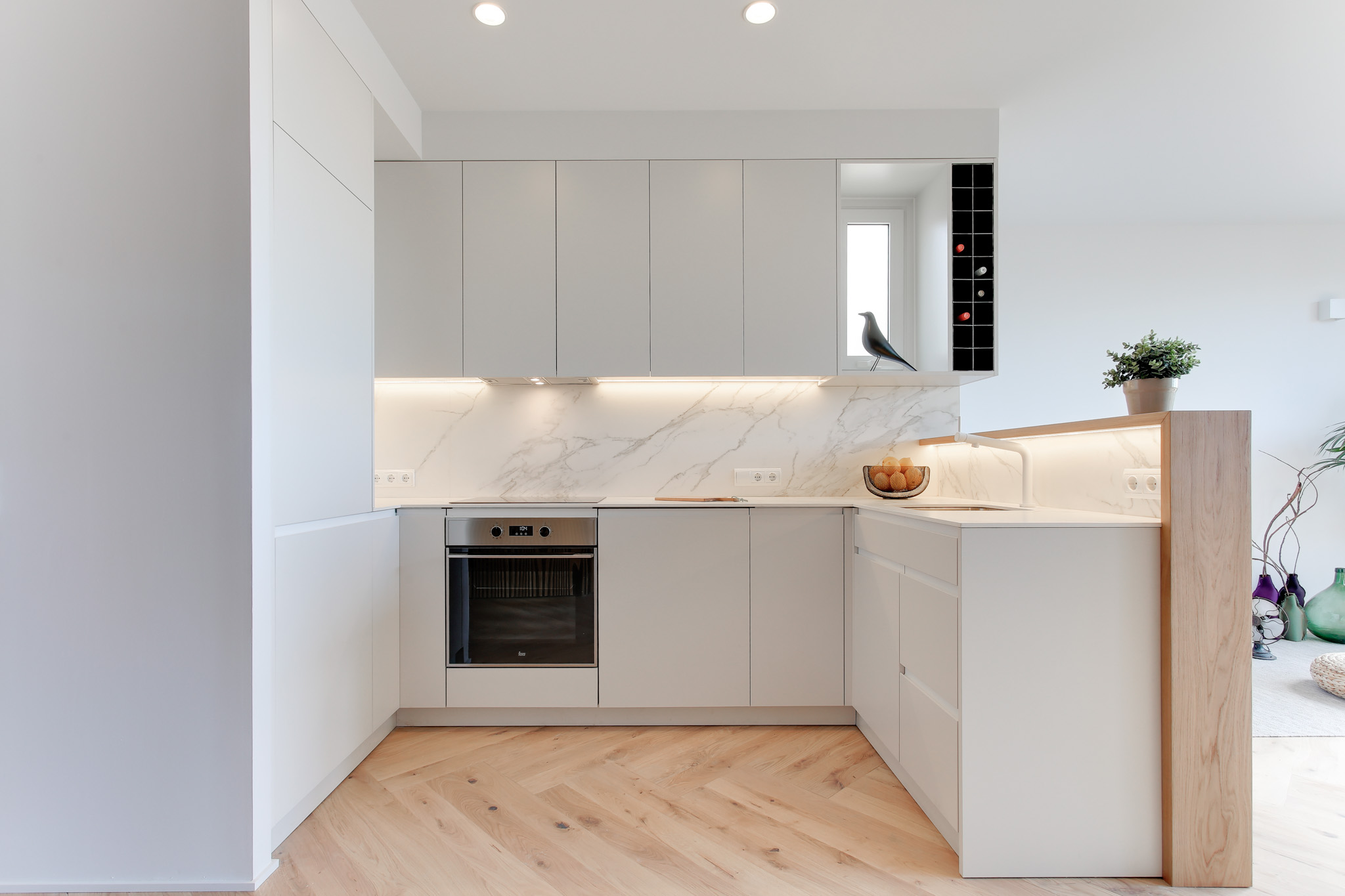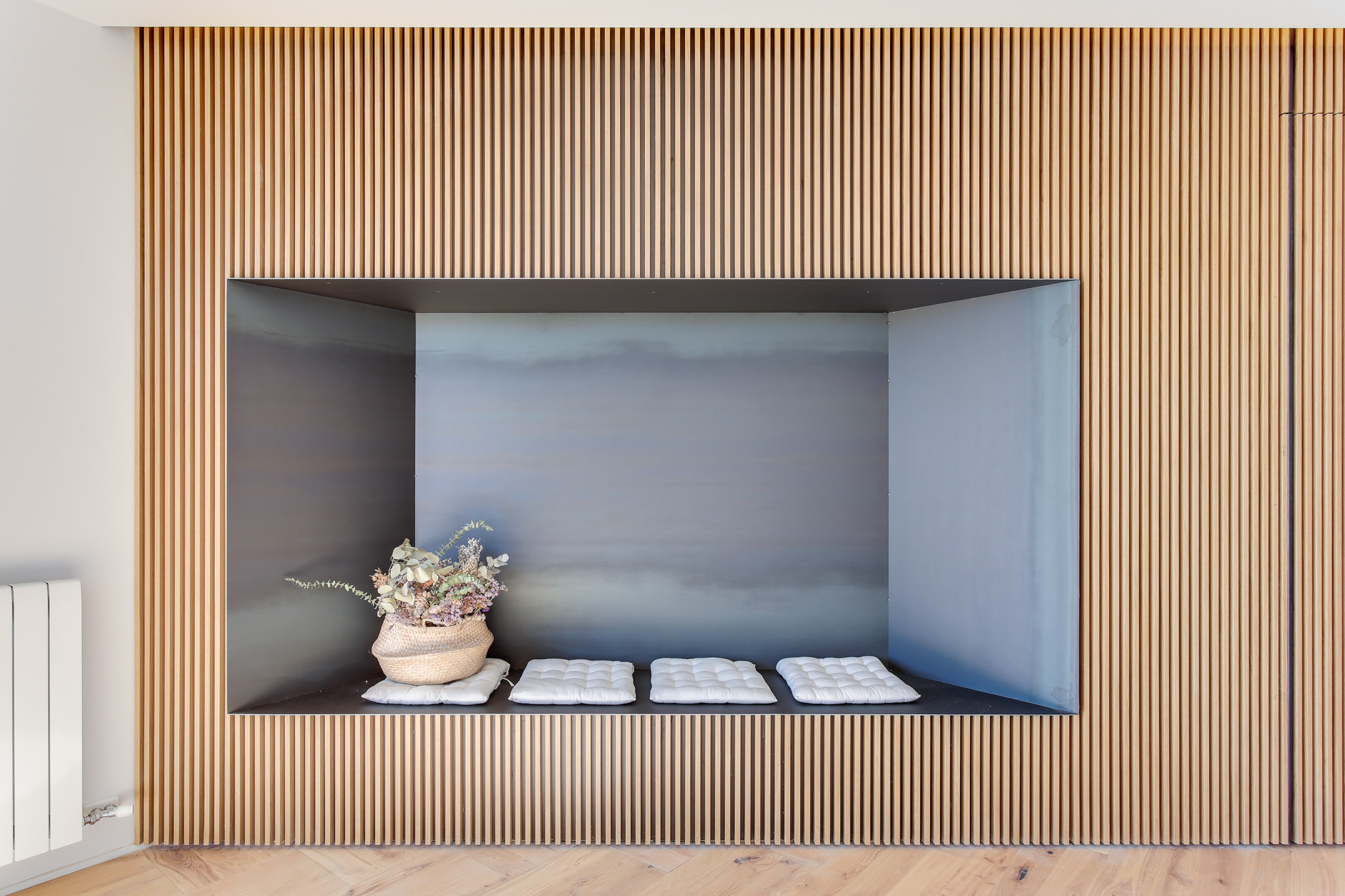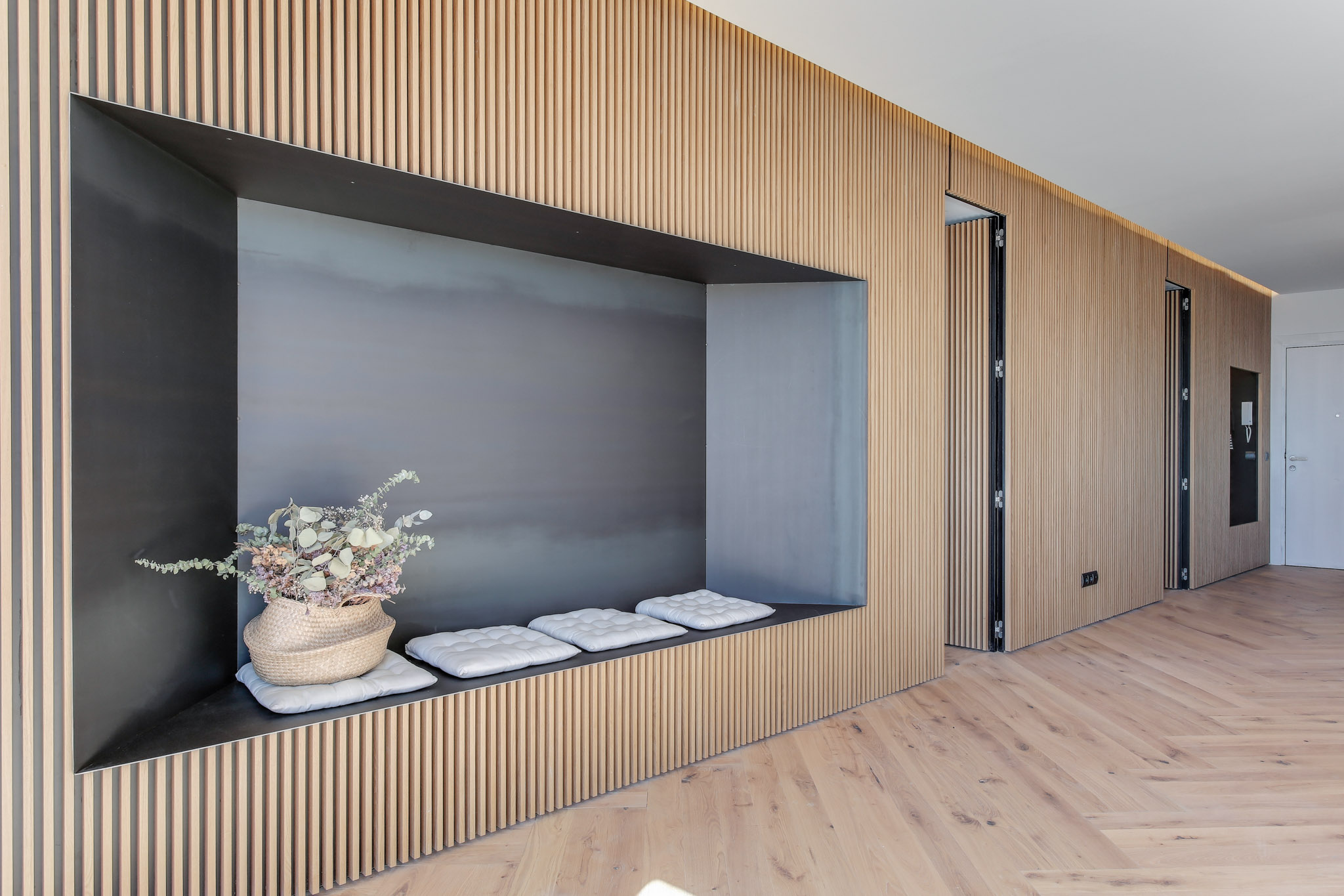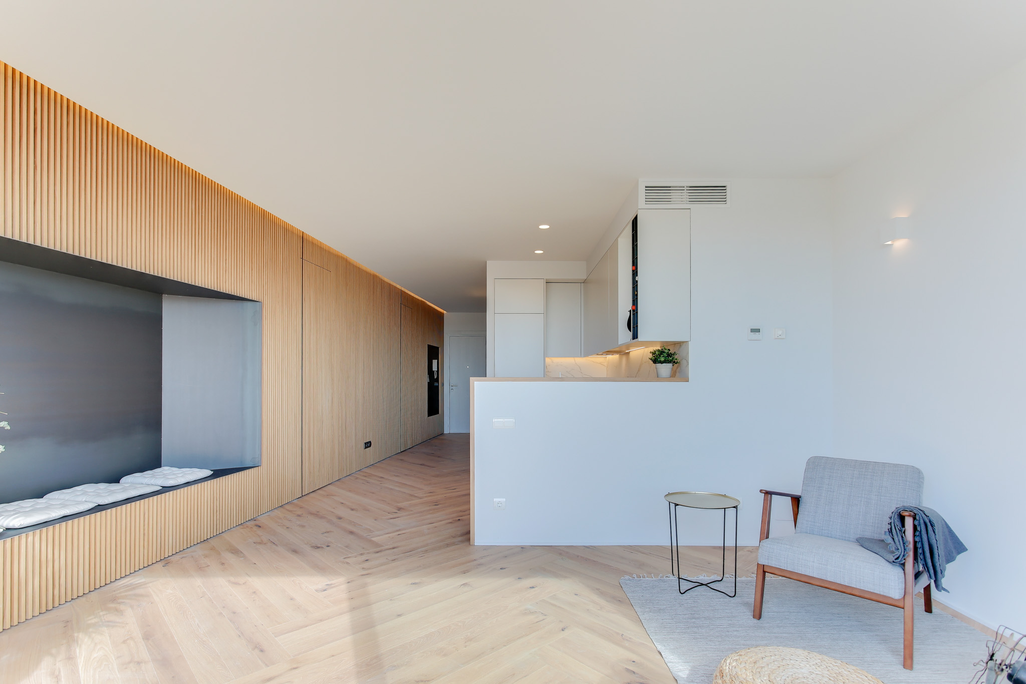 - We created this apartment in a Nordic style and decorated it with elegant details such as walls covered in wood.
